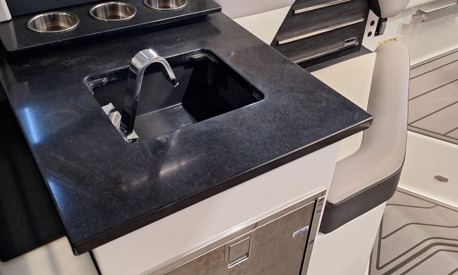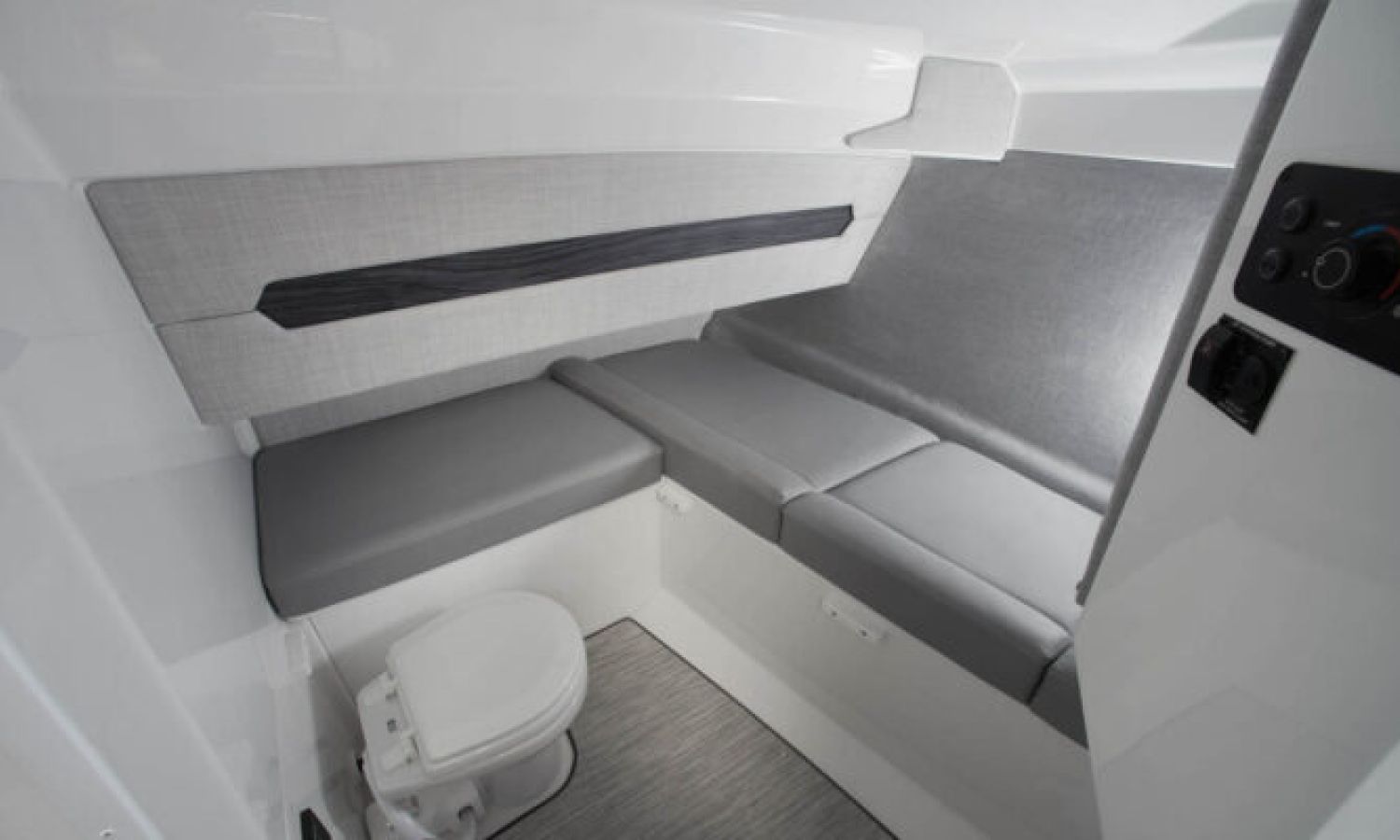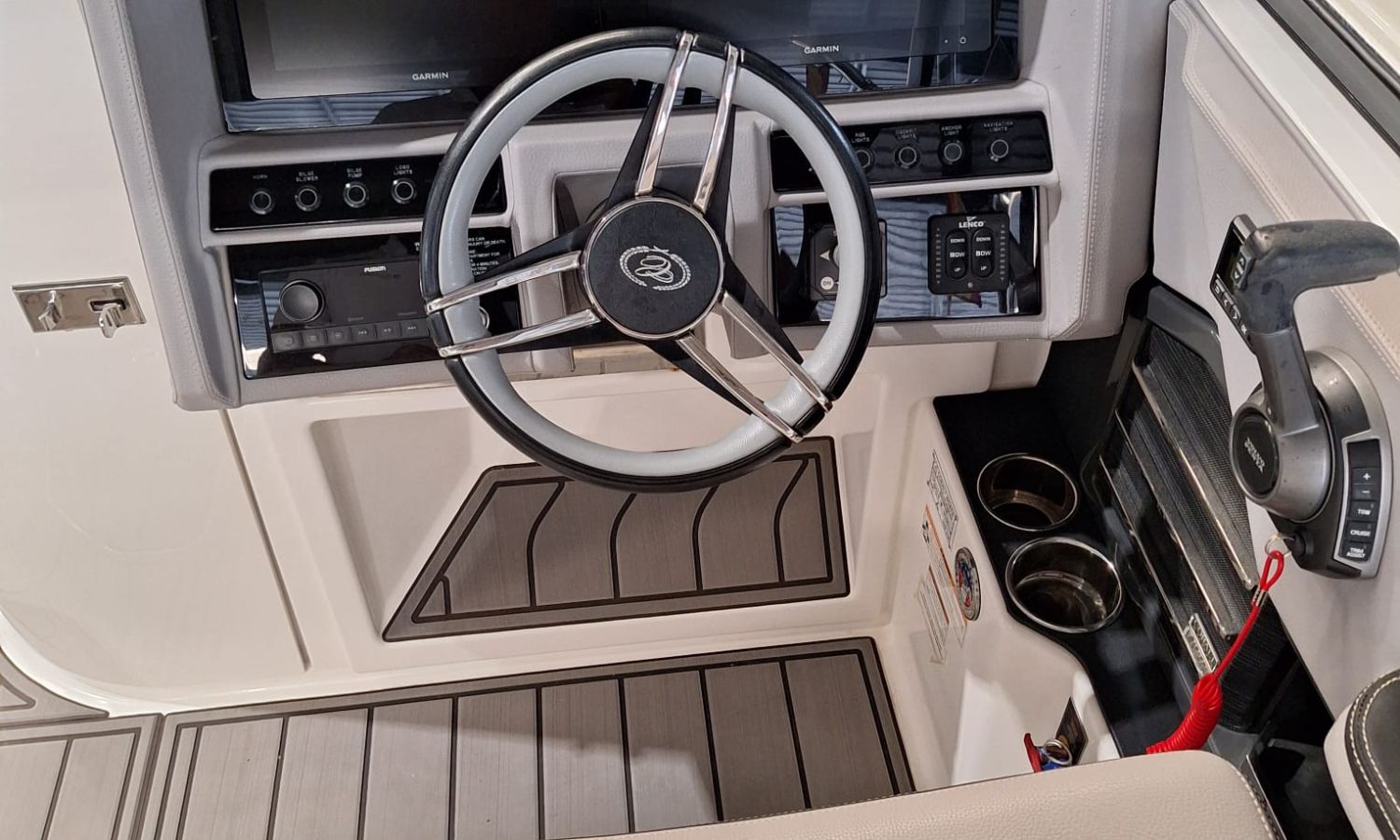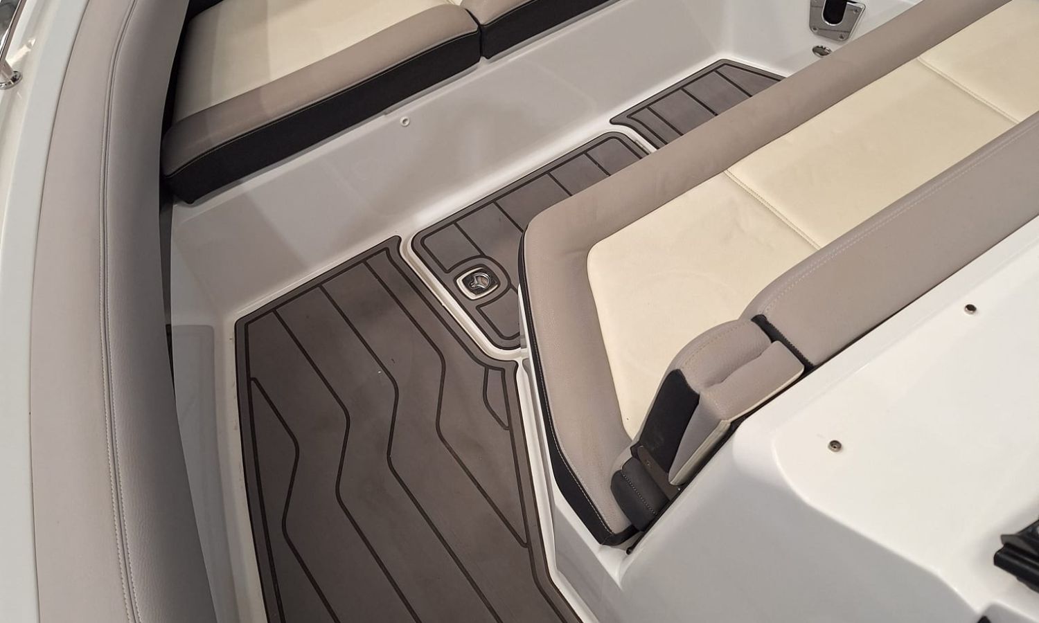 Gps/Plotter/Deep finder - Bow thruster - Navigation lights - Courtesy lights - Lenco flaps - Blower - Horn - Anchor windlass - Garmin dual display - Battery charger - Audio equipment - Stern shower - Sink - Refrigerator - Marine toilet - Folding stern platform - Additional third battery - AntifoulingBoat description