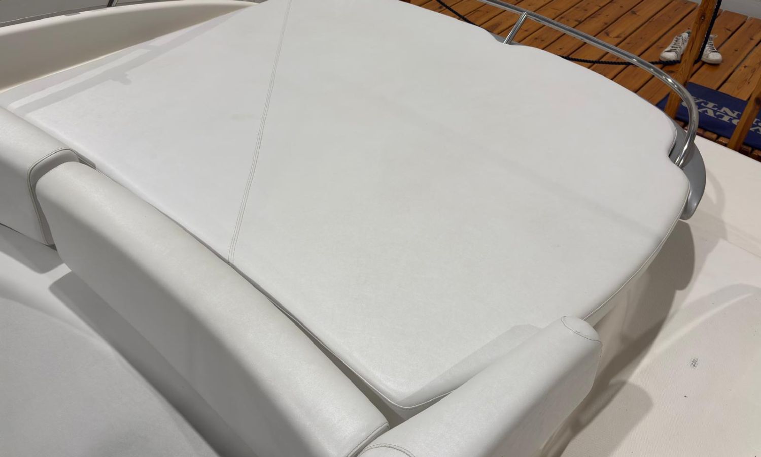 Anchor tarpaulin - Parasol awning - Electric anchor windlass - Table in the bathtub - Sink - Refrigerator - Marine toilet - Bathing platform with ladder - Audio equipment - Bow solarium - Aft sundeck - Bow thruster - Antifouling