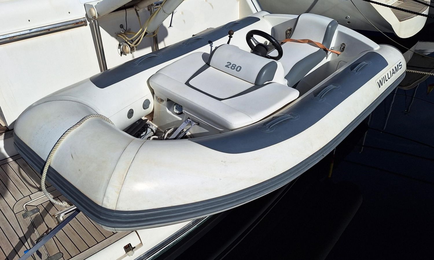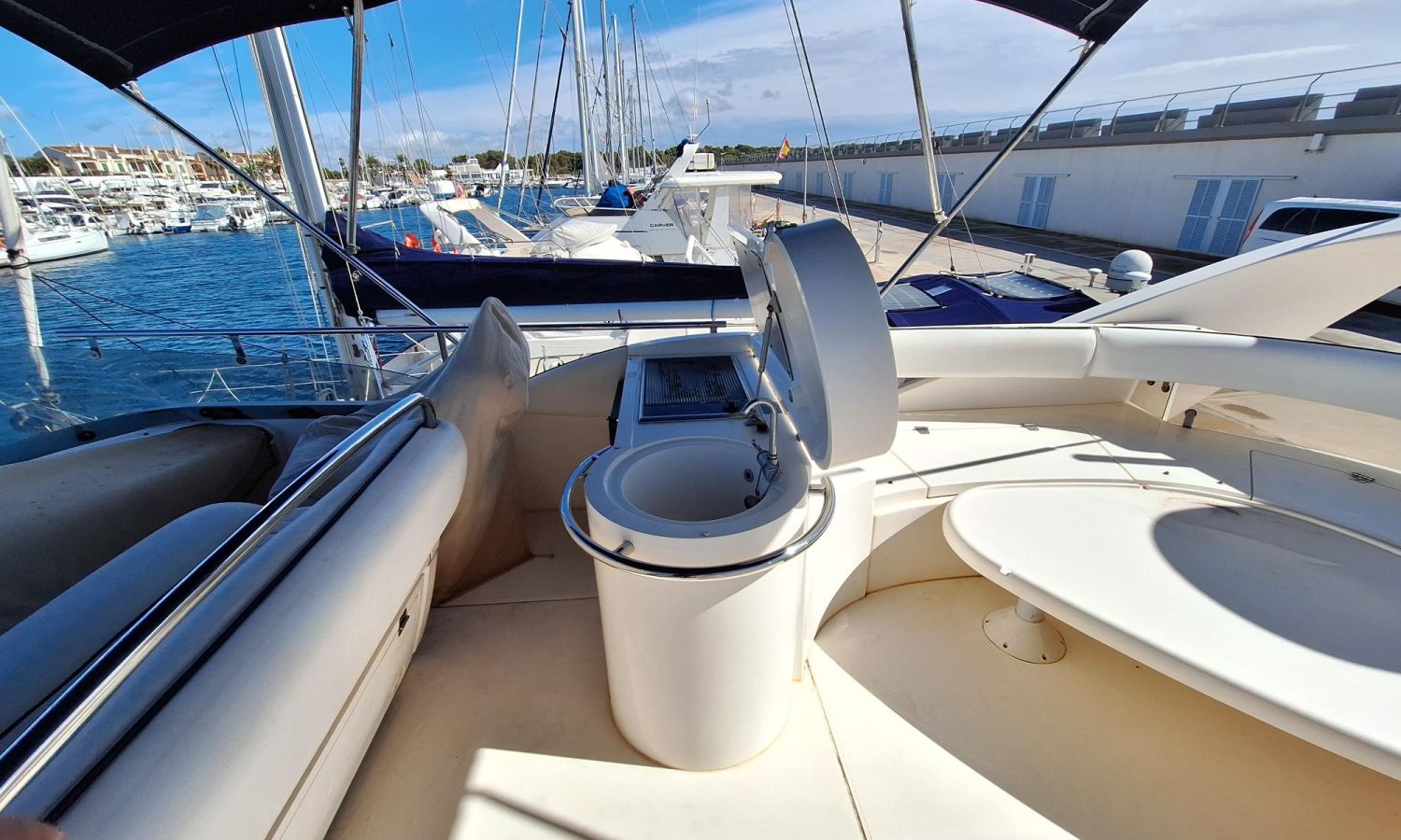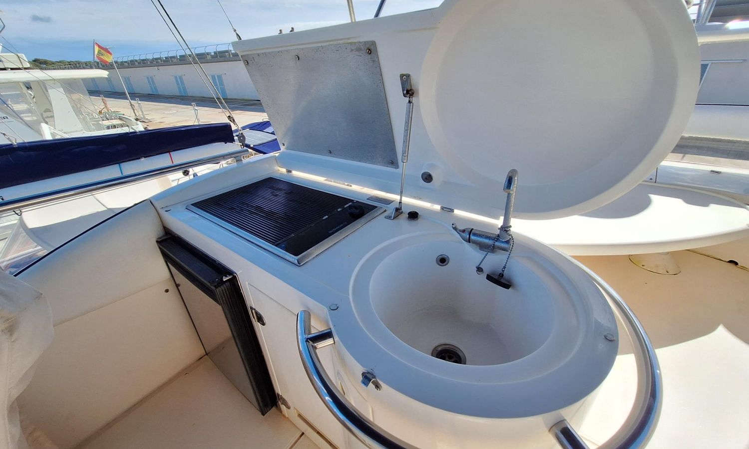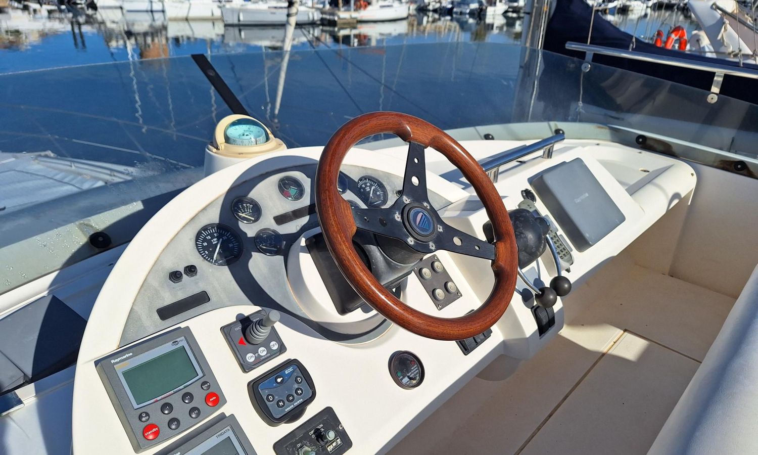 Generator - Bow Thruster - Flybridge - Trim tabs - Hydraulic gangway - 220V. port socket - Battery charger - Water heater - Cockpit and bathing platform Flexiteek - Electric cockpit grill and cooler - Washing machine - Electric anchor windlass - Bow sunbathing cushions - Stern shower - Cockpit table Electronic Controls - Gps/Plotter/Sounder/Radar - Autopilot - Rudder Angle Indicator - Compass - Vhf Radio - Audio Equipment - Pirate Light - Satellite TV - 3 Cabins - 2 Electric Marine WC With Sewage Tank And Shower - Electric Kitchen - Sink - Microwave - Refrigerator.