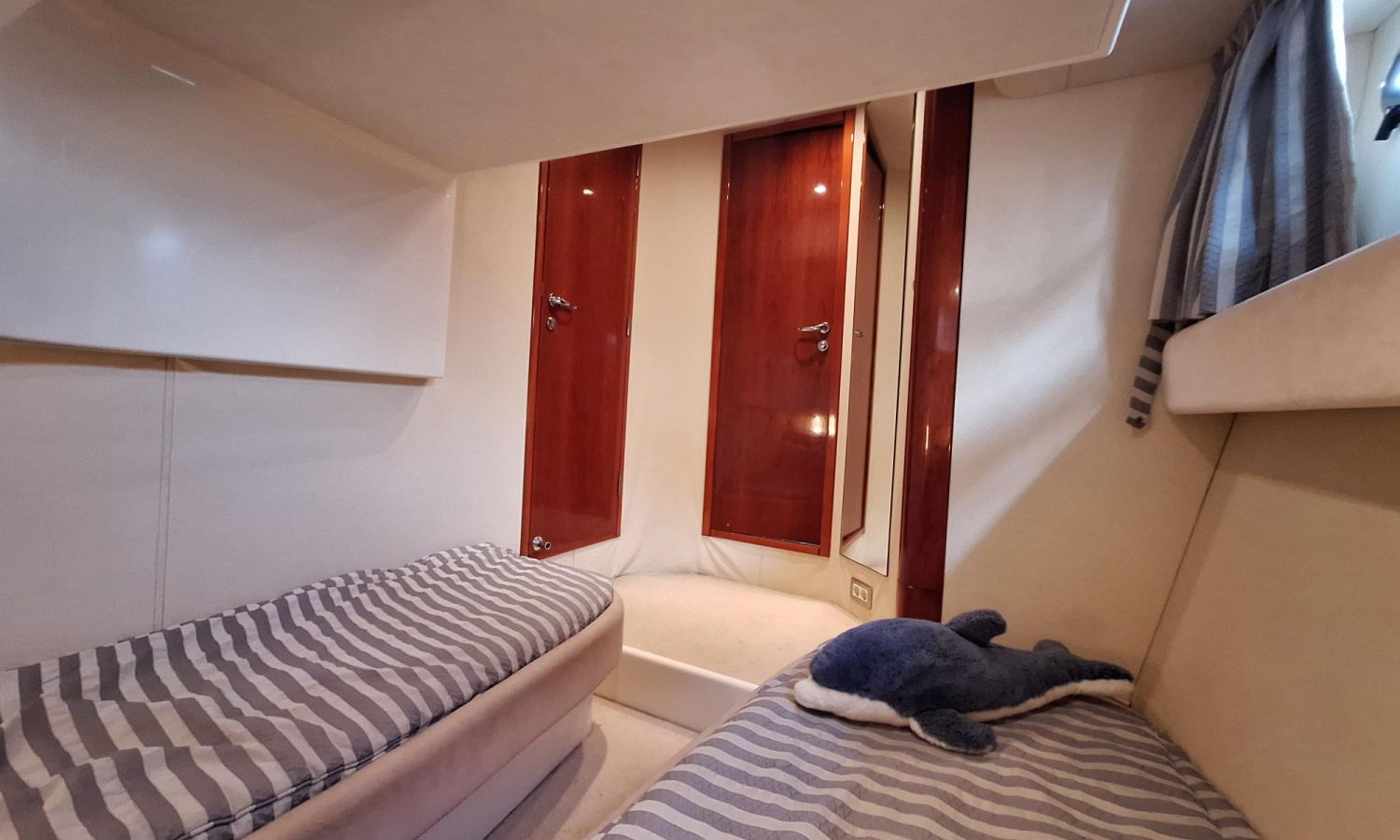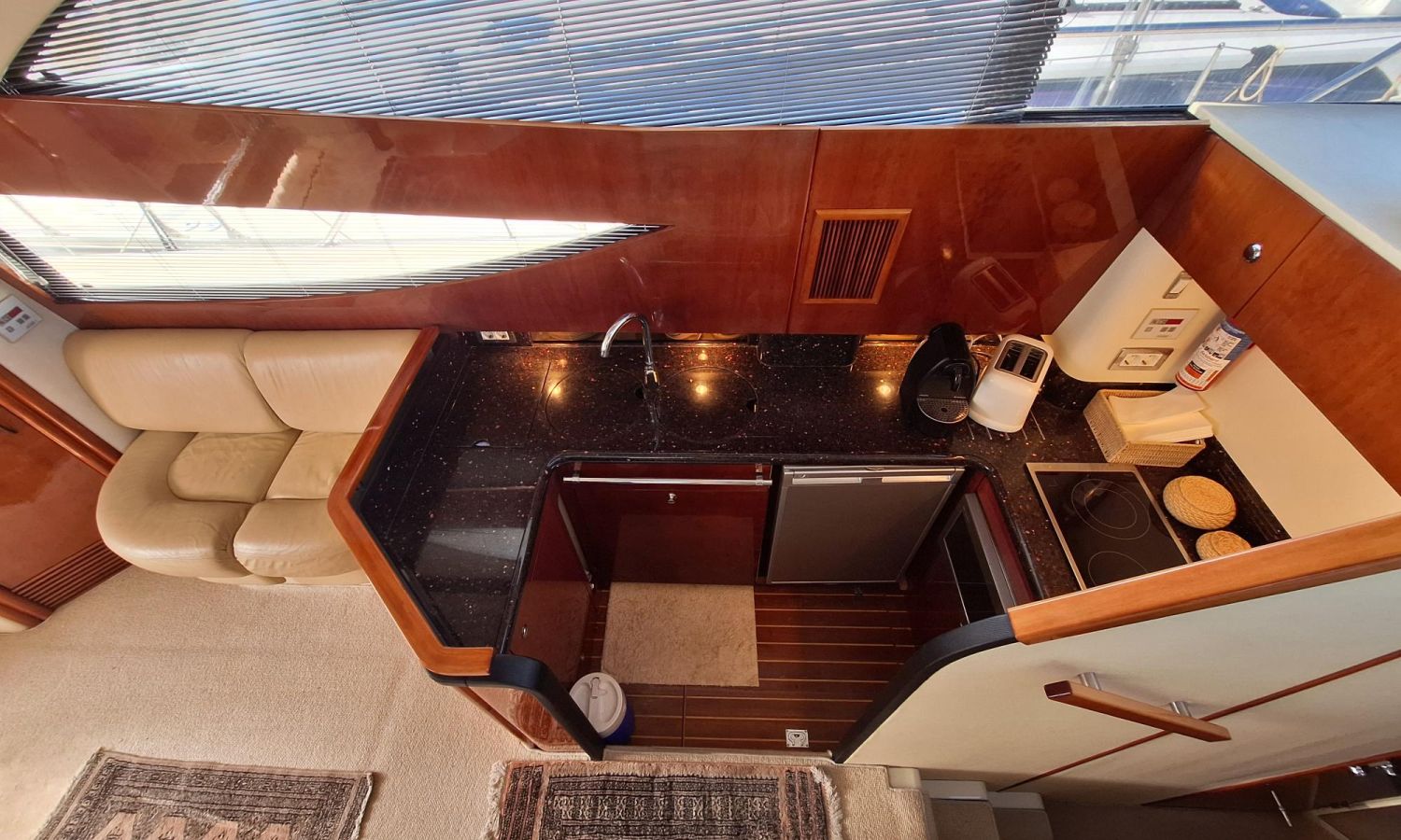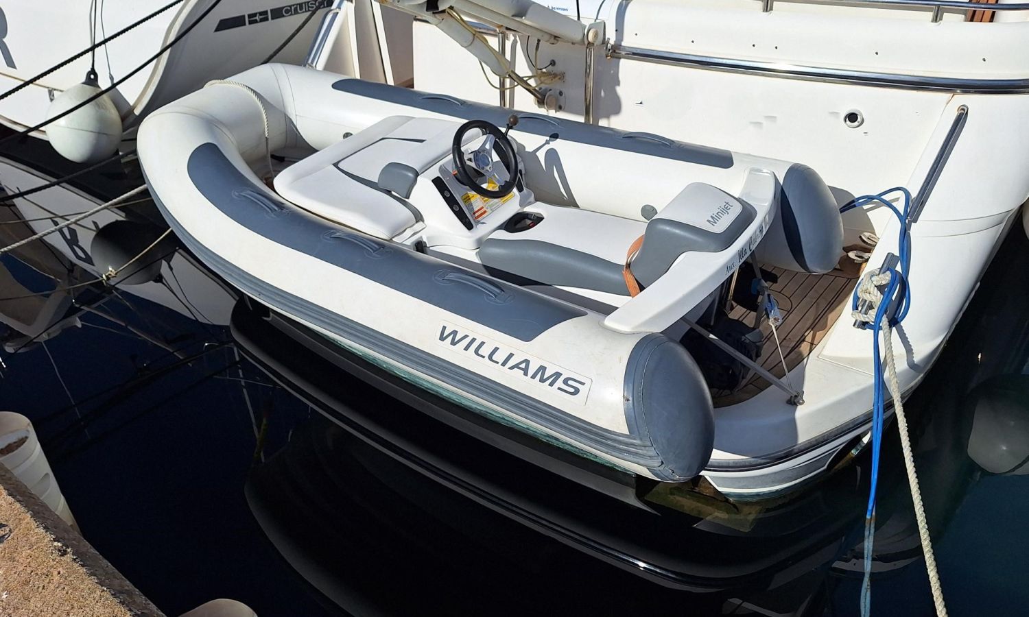 Generator - Bow Thruster - Flybridge - Trim tabs - Hydraulic gangway - 220V. port socket - Battery charger - Water heater - Cockpit and bathing platform Flexiteek - Electric cockpit grill and cooler - Washing machine - Electric anchor windlass - Bow sunbathing cushions - Stern shower - Cockpit table Electronic Controls - Gps/Plotter/Sounder/Radar - Autopilot - Rudder Angle Indicator - Compass - Vhf Radio - Audio Equipment - Pirate Light - Satellite TV - 3 Cabins - 2 Electric Marine WC With Sewage Tank And Shower - Electric Kitchen - Sink - Microwave - Refrigerator.
