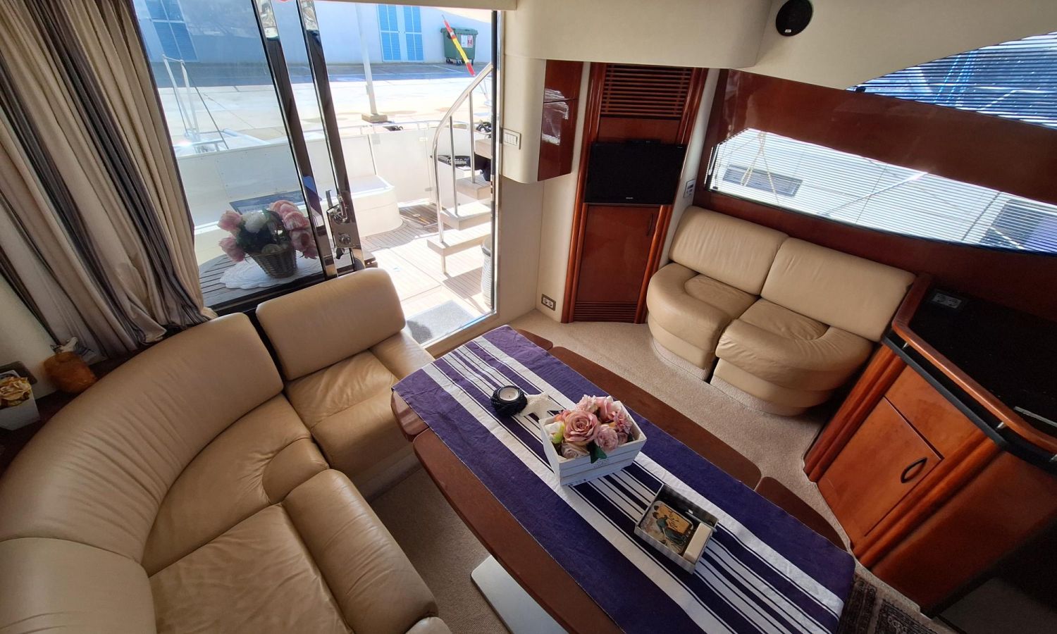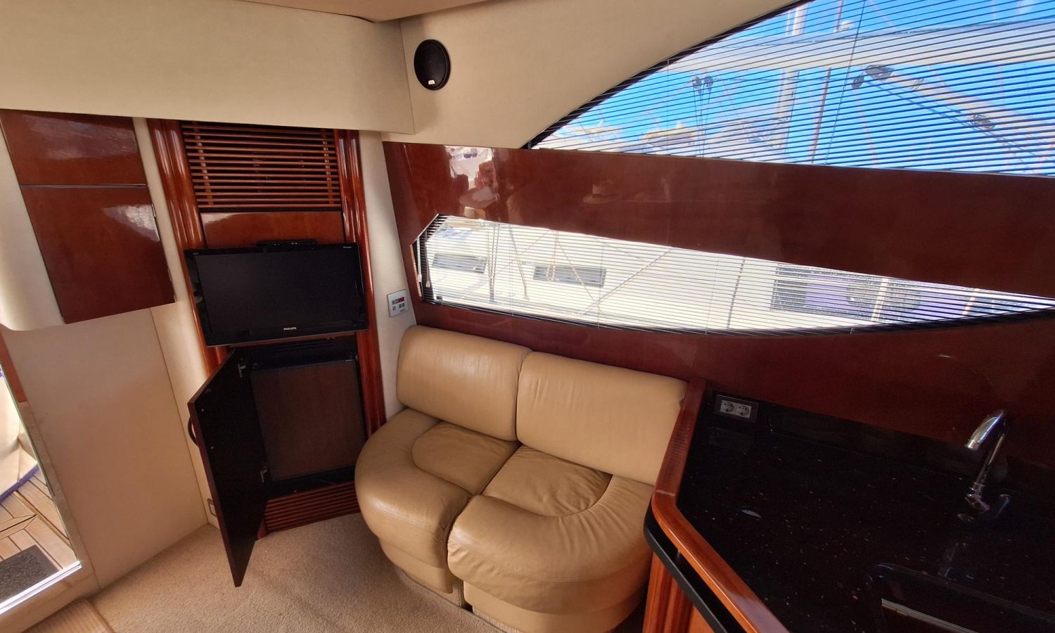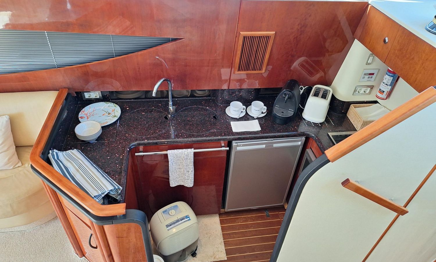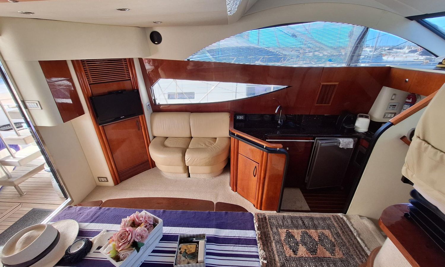 Generator - Bow Thruster - Flybridge - Trim tabs - Hydraulic gangway - 220V. port socket - Battery charger - Water heater - Cockpit and bathing platform Flexiteek - Electric cockpit grill and cooler - Washing machine - Electric anchor windlass - Bow sunbathing cushions - Stern shower - Cockpit table Electronic Controls - Gps/Plotter/Sounder/Radar - Autopilot - Rudder Angle Indicator - Compass - Vhf Radio - Audio Equipment - Pirate Light - Satellite TV - 3 Cabins - 2 Electric Marine WC With Sewage Tank And Shower - Electric Kitchen - Sink - Microwave - Refrigerator.