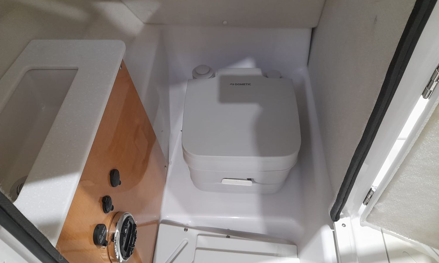 Bimini top - Stern shower - Stern platform with bathing ladder - Stern sundeck - Bow sun cushions - Cockpit table - Sink - Portable cooler - Chain and anchor - Chemical WC - Audio equipment - Electronic control - GPS/Plotter/Deep finder - Cockpit cover - Antifouling.Boat description