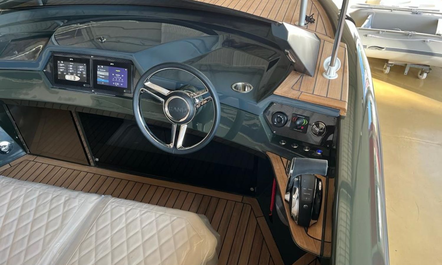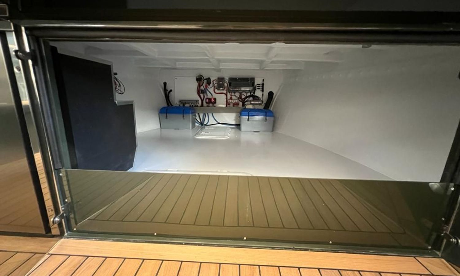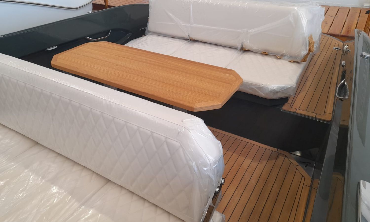 Bimini top - Stern shower - Stern platform with bathing ladder - Bow cushions - Cockpit table - Teak - GPS/Plotter/Deep finder - Electronic controls - Bow thruster - Ski hook - Audio equipment B&O - Electric anchor - Refrigerator 12 V - Automatic fire extinguisher - Led lights in cockpit - Antifouling.Boat description