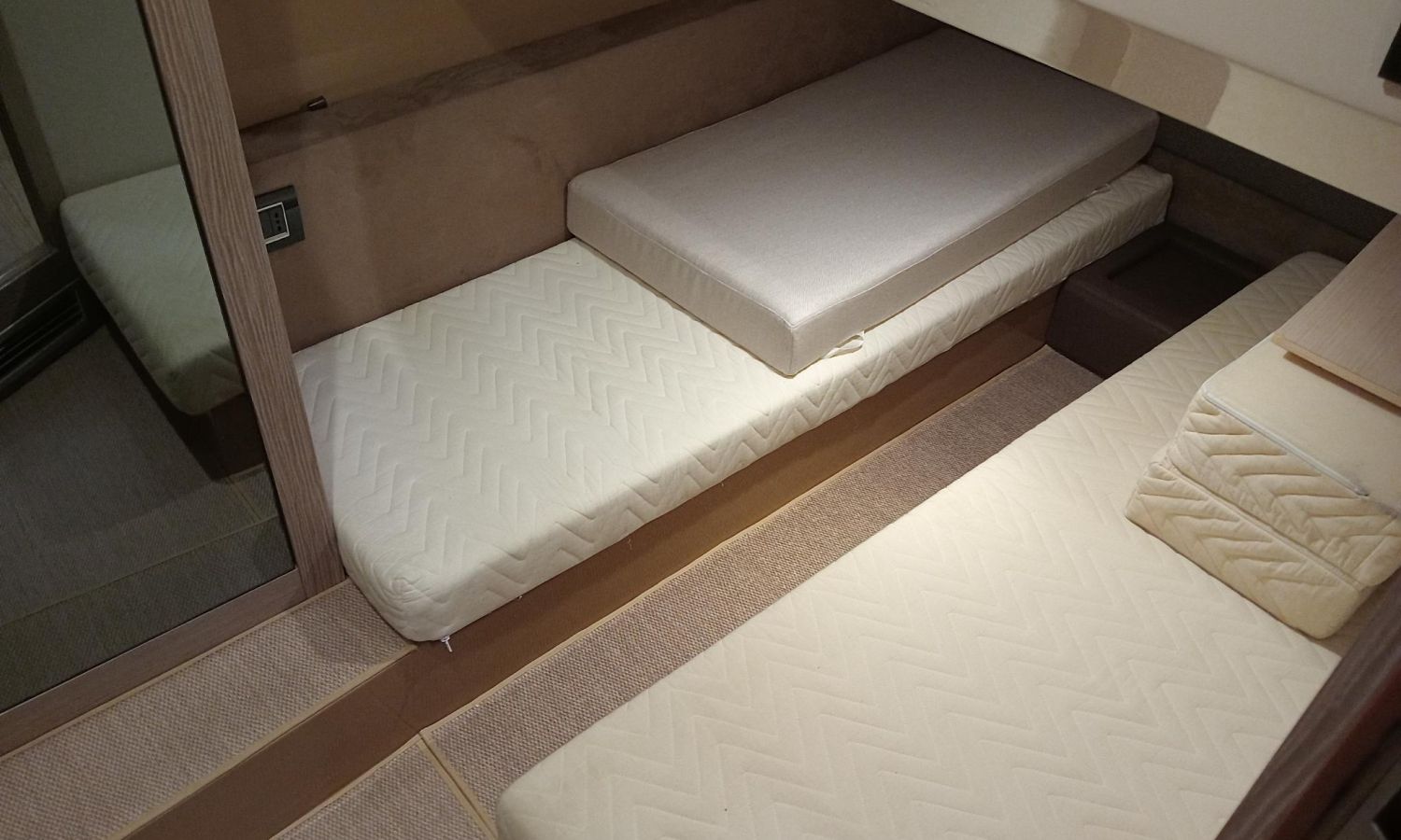 Generator - Air conditioning - Auto pilot - GPS/Plotter/Depth finder Raymarine 12 " - Electric windlass - Chain meter counter - Sound system inside/outside - Joystick IPS - Bow thruster - Trim tabs Benetti - Hydraulic swim platform - Electric bimini - Bow sun cushions and aft sundeck - Grill on swim platform - Electric Hard-top - Fresh water intake - Complete kitchen inside with vitro - Microwave - Refrigerator - Freezer - Extractor hood in kitchen - Electric WCs with waste water tank - Refrigerator in living room - DPS positioning system.Boat description