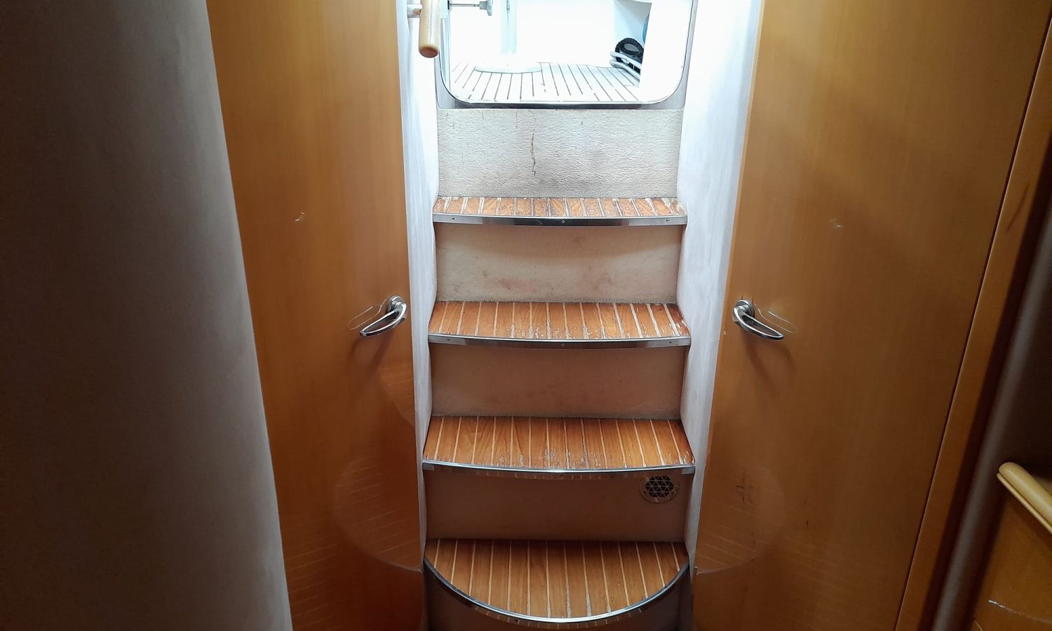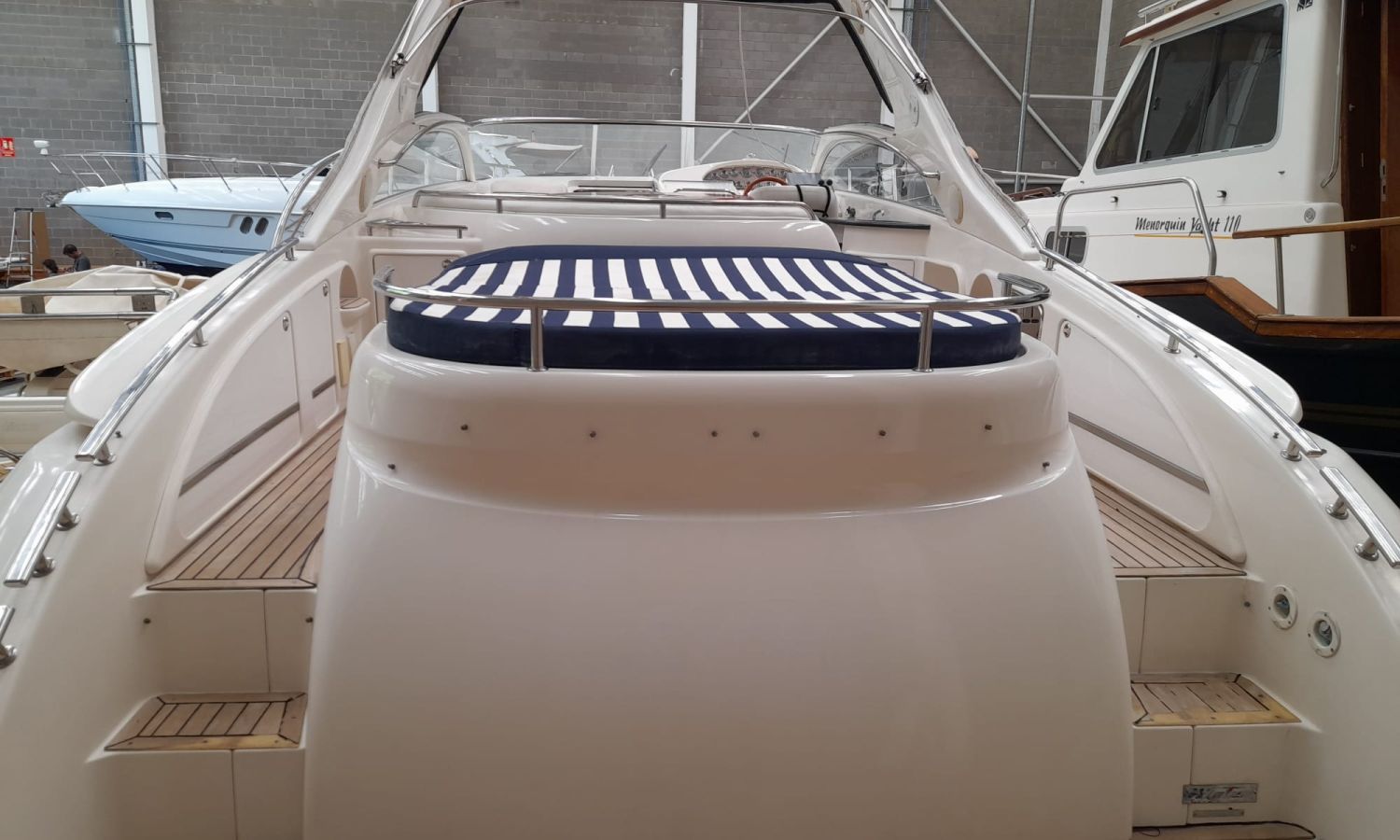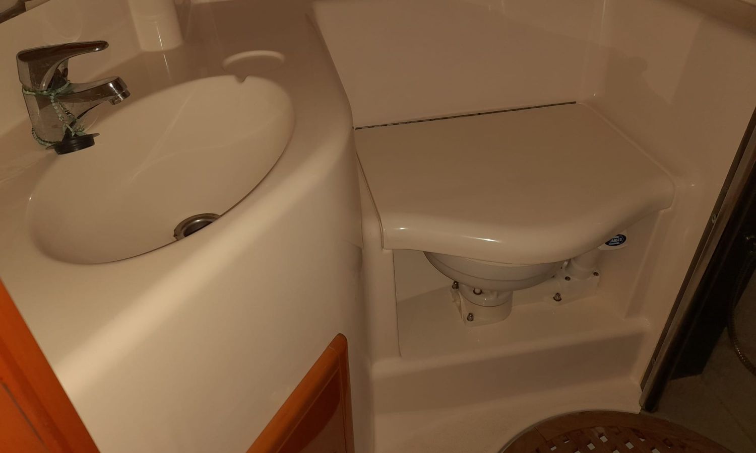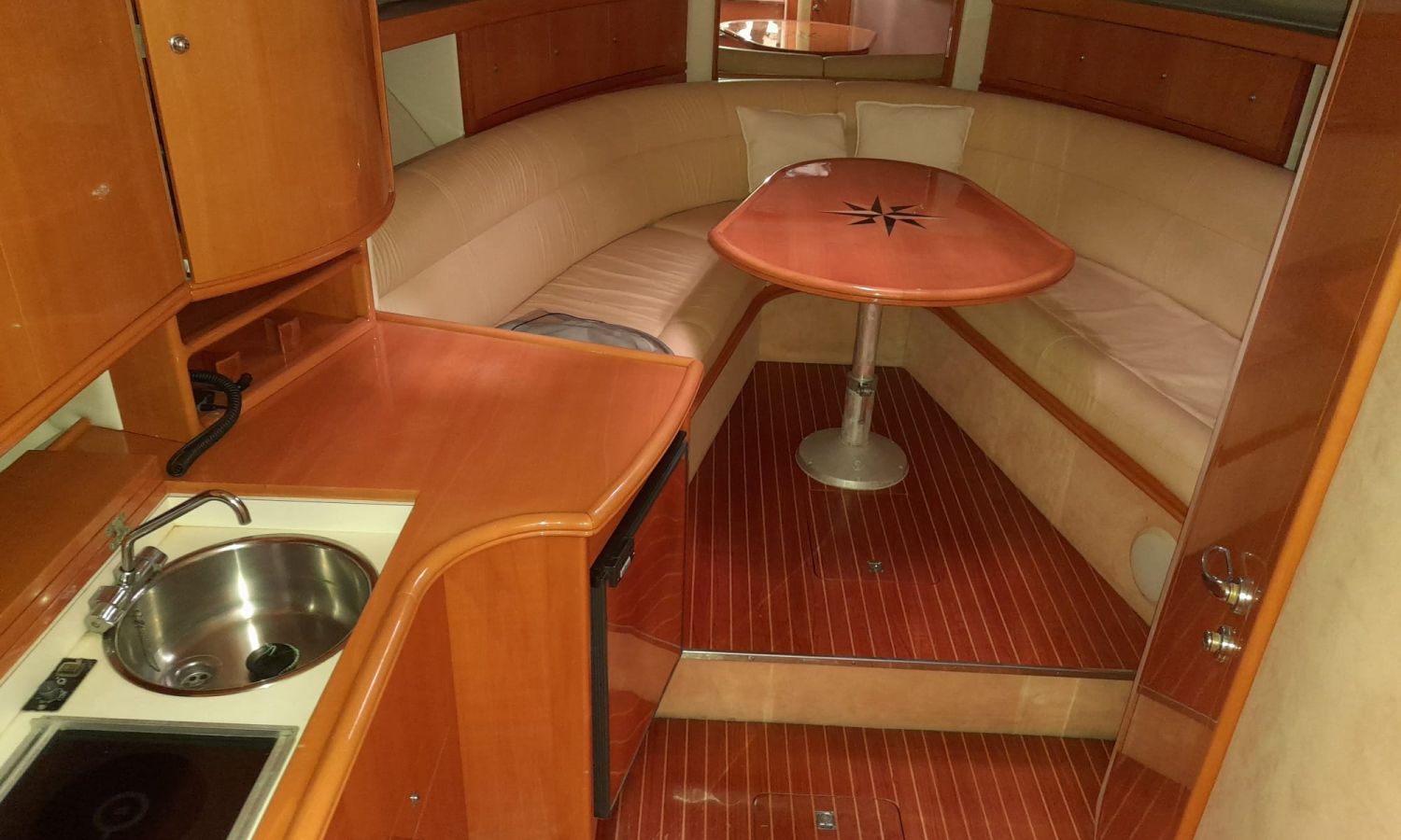 Bow Thruster - Trim tabs - Port socket 220 V. - Battery charger - Water heater - Cockpit and bathing platform Flexiteek - Fridge 12 V. - Electric anchor windlass - Bow sunbathing cushions - Stern shower - Cockpit table - Gps/Plotter/Sounder - Autopilot - Electronic controls - Flaps - Rudder Angle Indicator - Compass - VHF Radio - Audio Equipment - Pirate Light - 2 Cabins - WC Marine Wc With Sewage Tank And Shower - Electric Kitchen - Sink - Refrigerator.