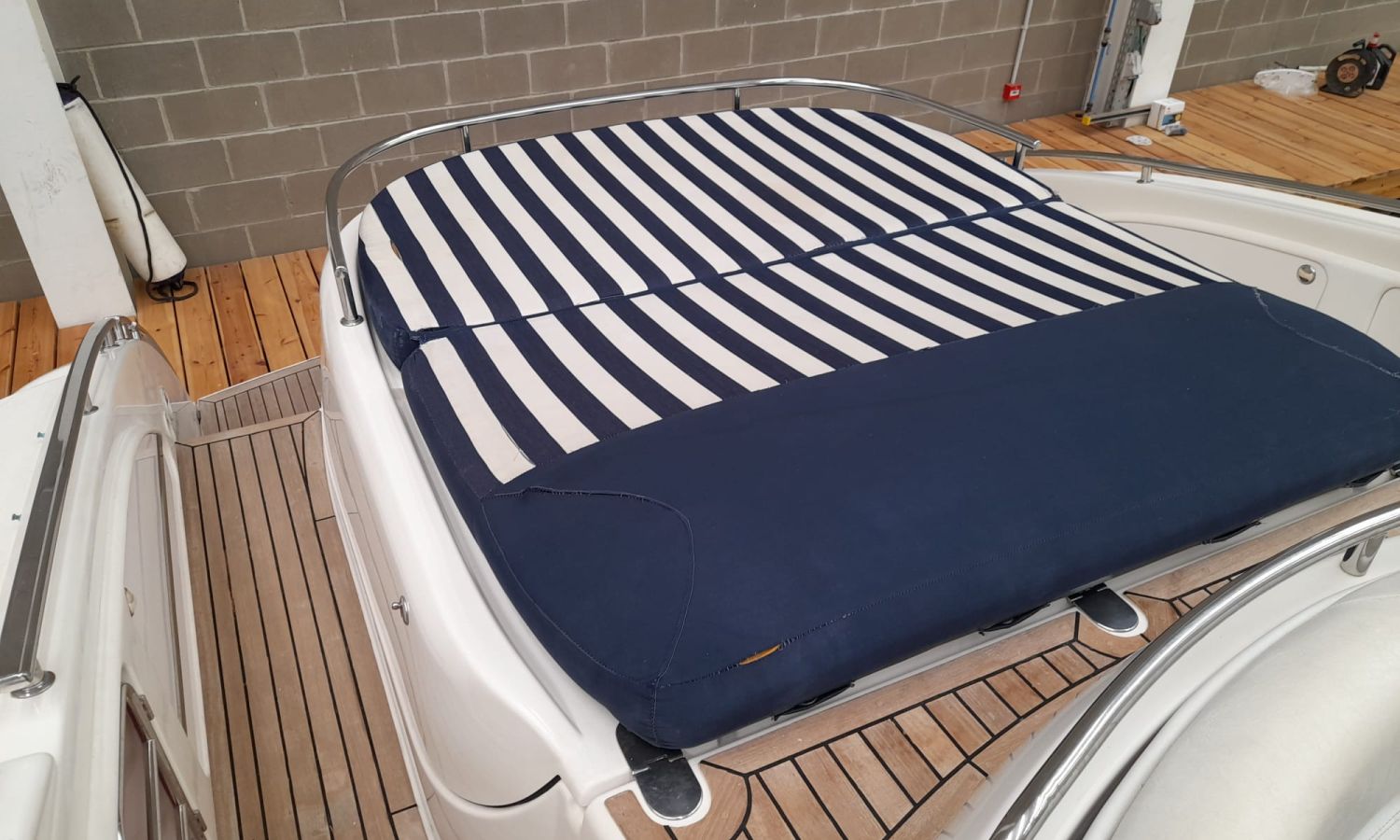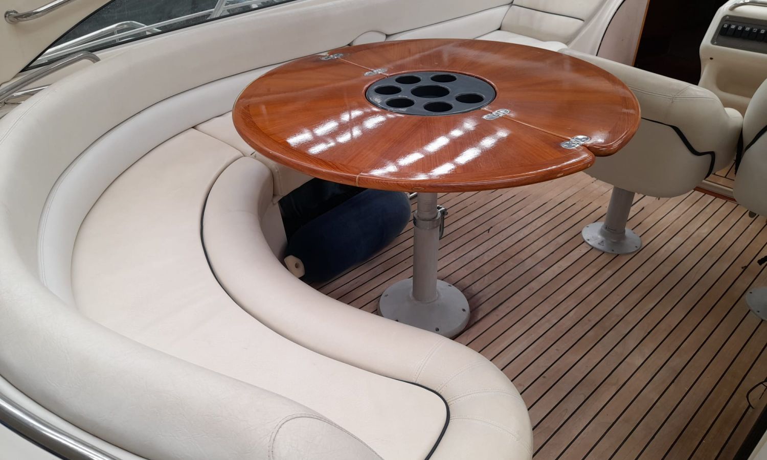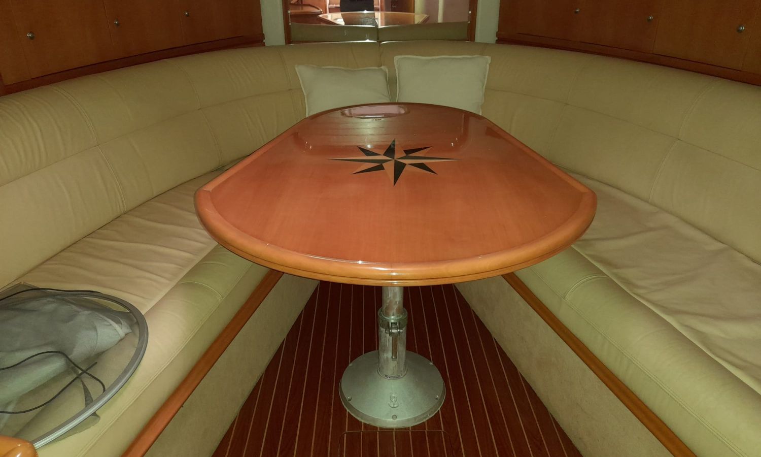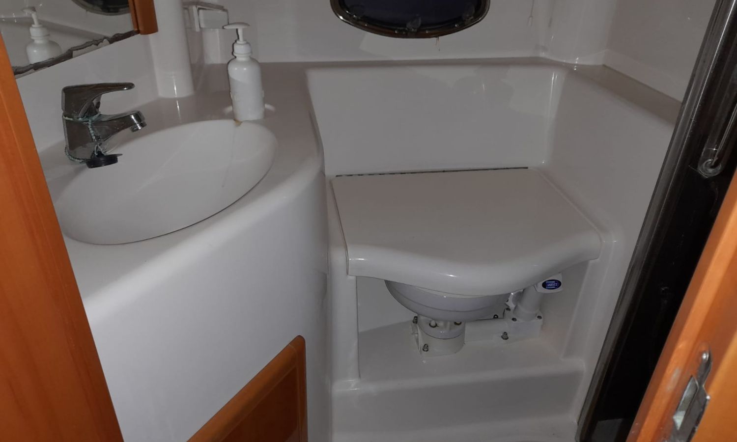 Bow Thruster - Trim tabs - Port socket 220 V. - Battery charger - Water heater - Cockpit and bathing platform Flexiteek - Fridge 12 V. - Electric anchor windlass - Bow sunbathing cushions - Stern shower - Cockpit table - Gps/Plotter/Sounder - Autopilot - Electronic controls - Flaps - Rudder Angle Indicator - Compass - VHF Radio - Audio Equipment - Pirate Light - 2 Cabins - WC Marine Wc With Sewage Tank And Shower - Electric Kitchen - Sink - Refrigerator.