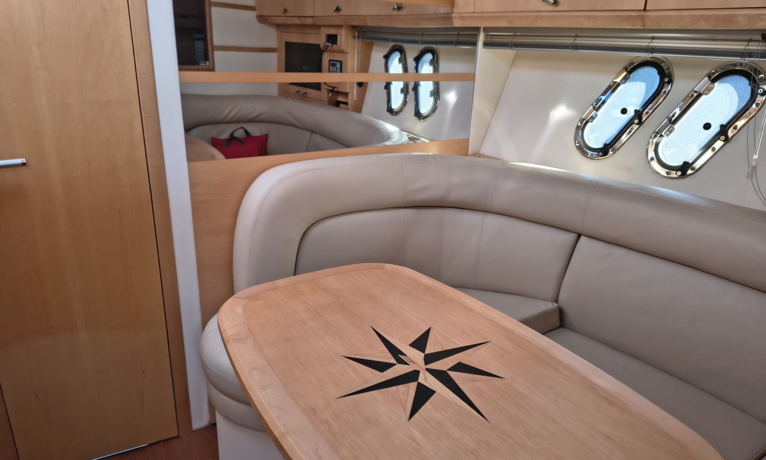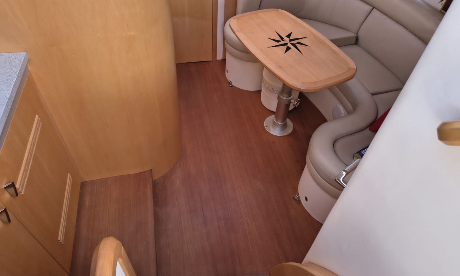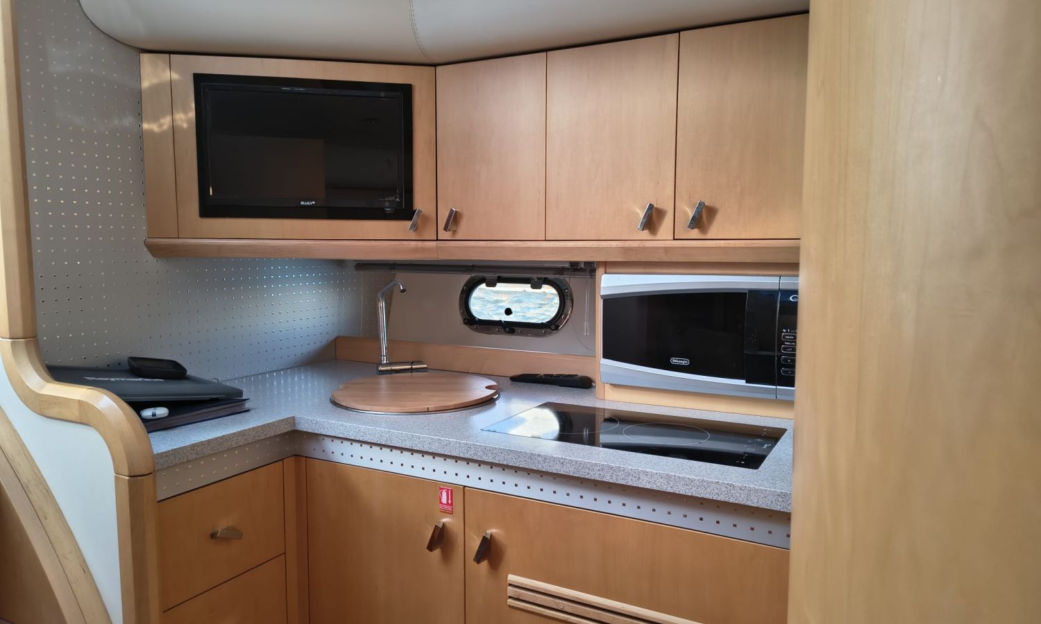 Hard Top - Toldo bimini - Hélice de proa y popa - Flaps - Toma de puerto 220 V - Cargador de baterías - Generador - Solárium de proa - WC con depósito de aguas negras - 2 Cabinas - Molinete eléctrico - Pasarela hidráulica - Mesa en la bañera - Mueble bar con fregadero - Suelo en teca - VHF - GPS/Plotter/Sonda - Piloto automático - Mandos electrónicos - Yacht controller - Equipo de audio - Flaps - Ducha en popa - Vitro - Nevera 12 V/220 V - Microondas - Toma de agua exterior.