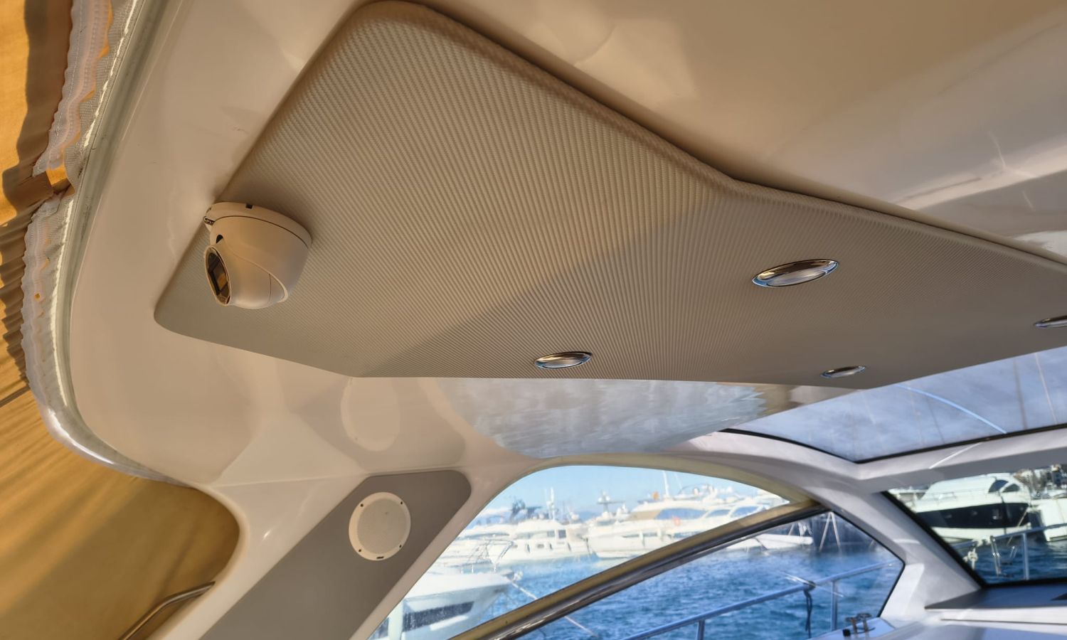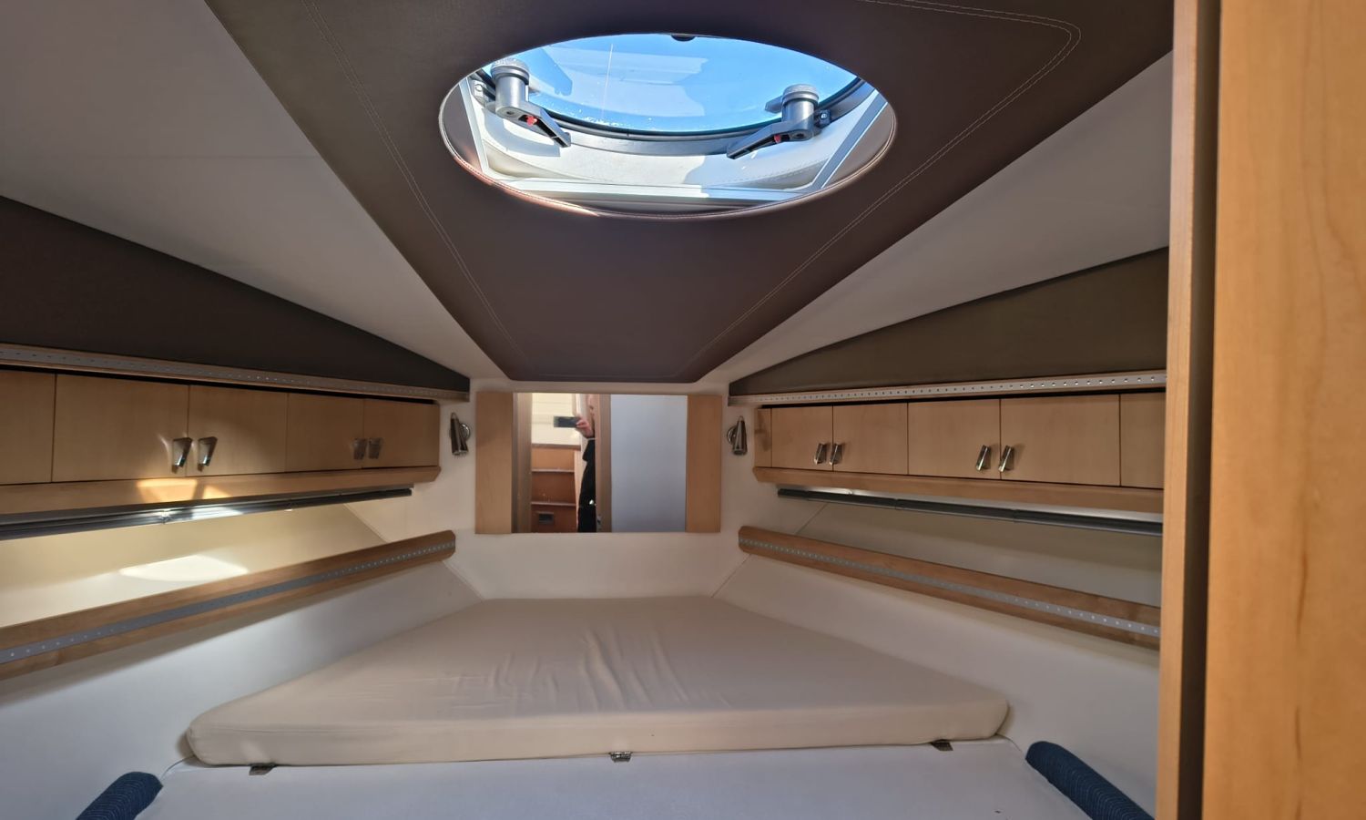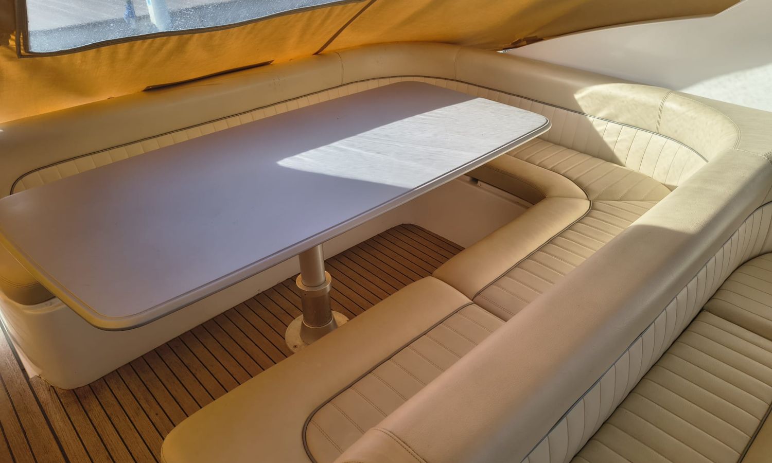 Hard Top - Toldo bimini - Hélice de proa y popa - Flaps - Toma de puerto 220 V - Cargador de baterías - Generador - Solárium de proa - WC con depósito de aguas negras - 2 Cabinas - Molinete eléctrico - Pasarela hidráulica - Mesa en la bañera - Mueble bar con fregadero - Suelo en teca - VHF - GPS/Plotter/Sonda - Piloto automático - Mandos electrónicos - Yacht controller - Equipo de audio - Flaps - Ducha en popa - Vitro - Nevera 12 V/220 V - Microondas - Toma de agua exterior.