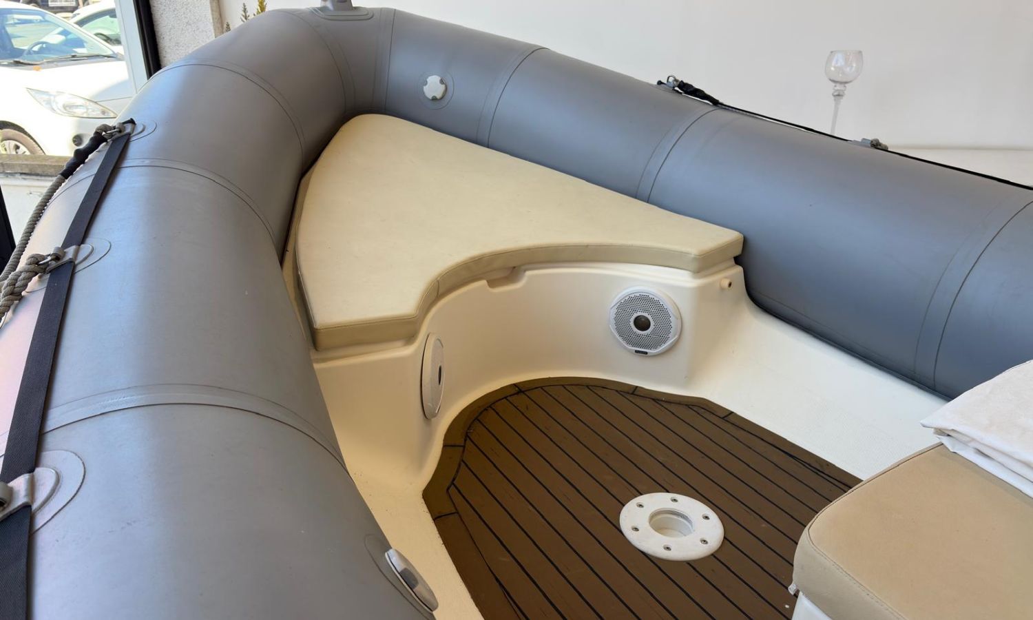 Toldo parasol - Escalera de baño - Cojines solarium - Equipo audio Fusion - Sonda - Lona consola - Antifouling.Descripción embarcación