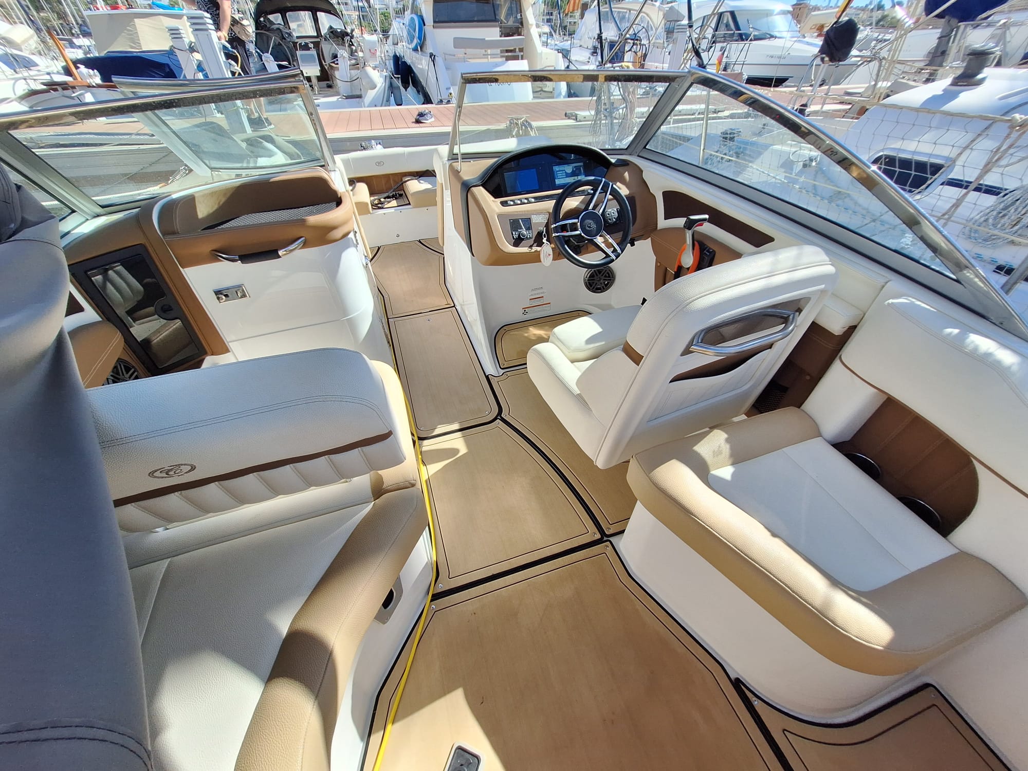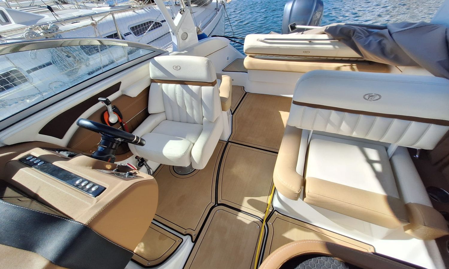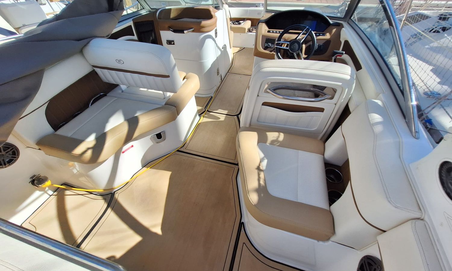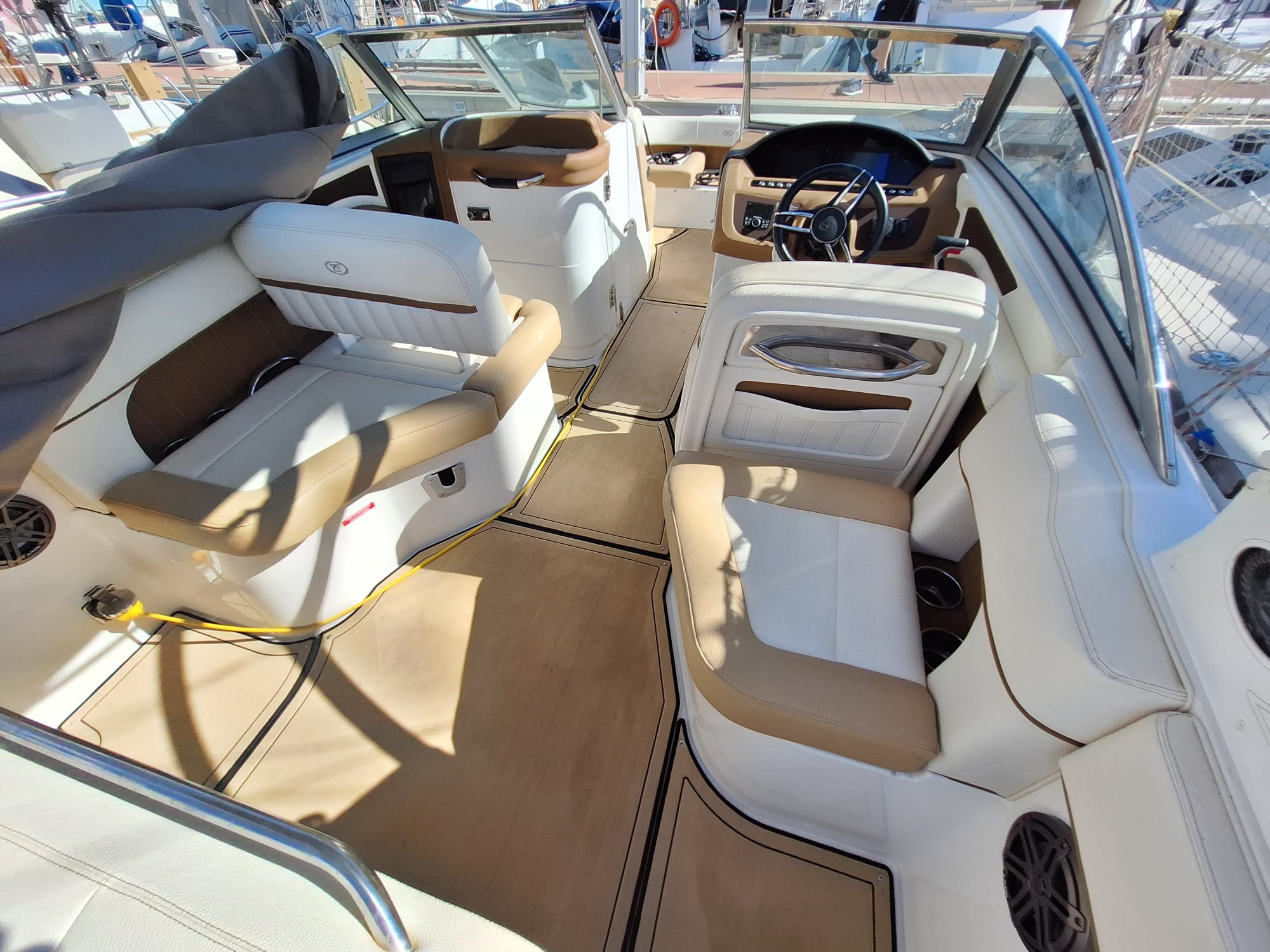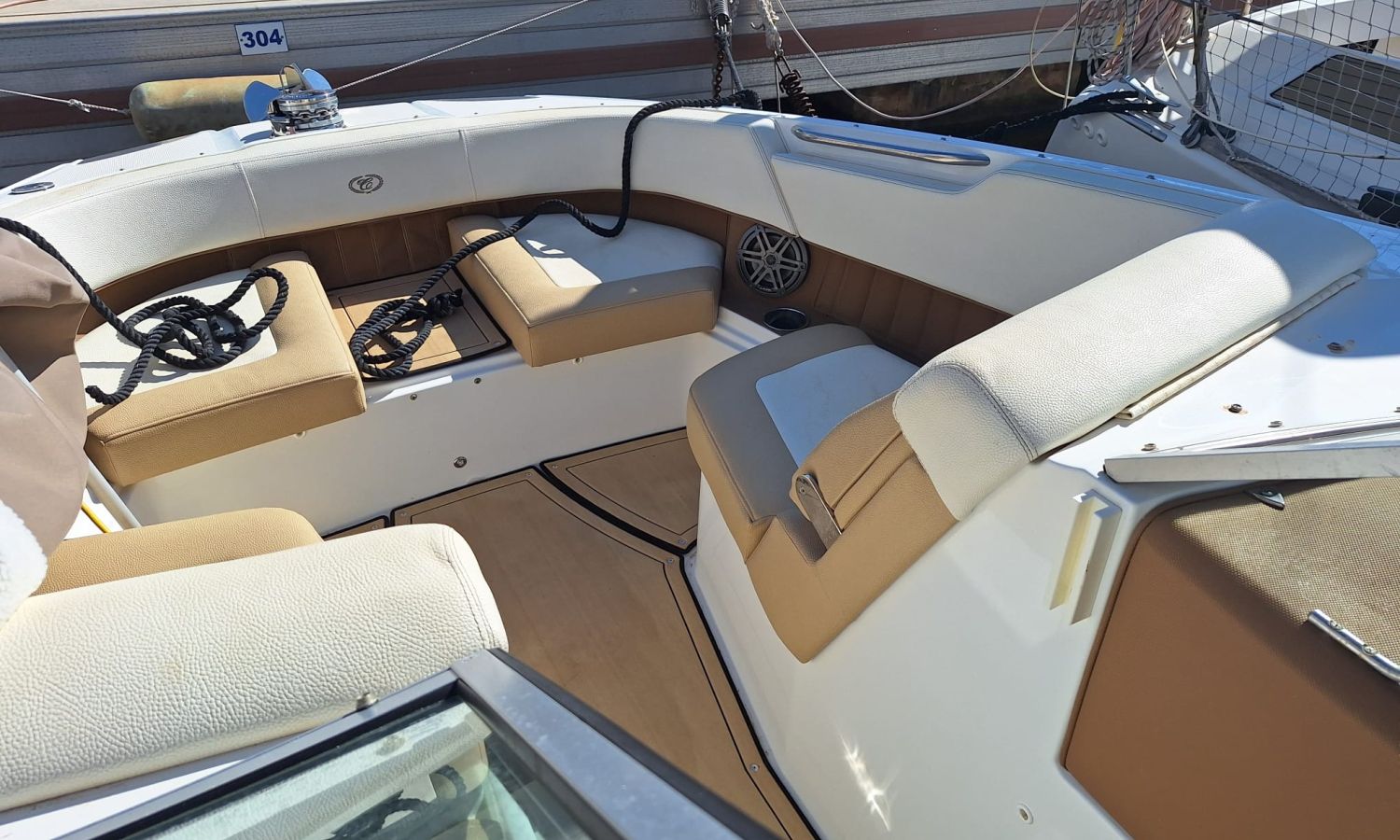 Luces de plataforma cortesia y navegacion - Flaps lenco - Control de molinete de ancla en timoneria - Bocina - Equipo de audio - Wc marino con depósito de aguas negras - Toma de puerto - Ducha en popa - T-Top aluminio - Seadeck - 3 baterias - Mástil de ski - Lona de fondeo - Ancla inox - Solárium de proa y popa - Gps/Plotter/Sonda - Cargador de baterias - Antifouling.Descripción embarcación
