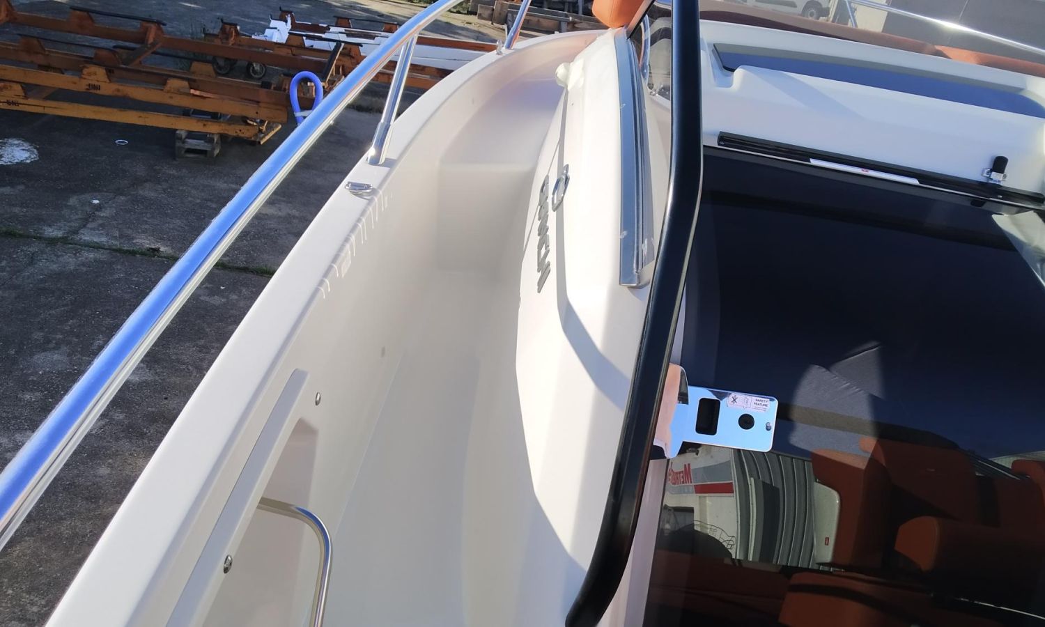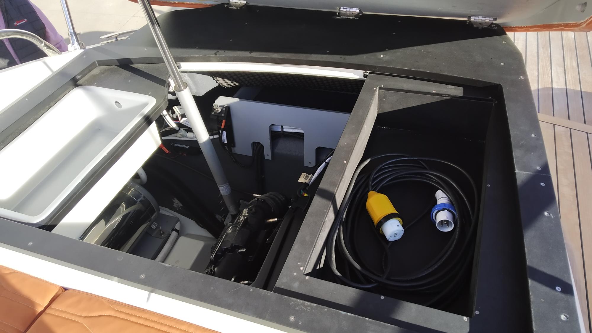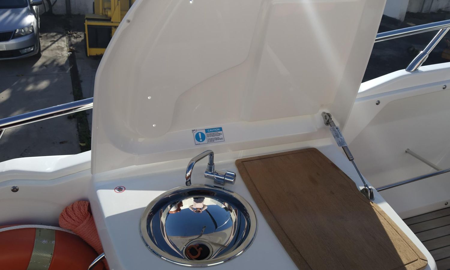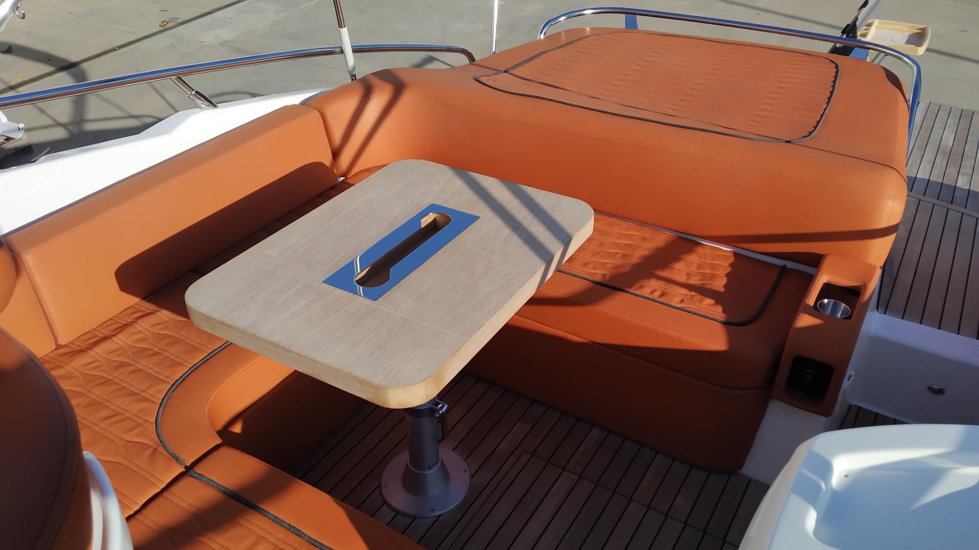 Hélice de proa - Molinete eléctrico con ancla, cadena, mando a distancia y cuentametros cadena - GPS Garmin - Instalación eléctrica 230 V con cargador de baterías - Toma puerto con cable de conexión - Toldo parasol con arquillada en inox - Bañera en teka - Plataforma de baño en teka con escalera - Colchoneta de proa y funda - Lona de fondeo - Nevera en bañera - Horno microondas - Radio Fusion con Bluetooth/USB, altavoces en cabina y bañera, amplificador, subwoofer y mando a distancia en la bañera - Mesa interior convertible en cama - WC con depósito de aguas negras - Antifouling.Descripción embarcación