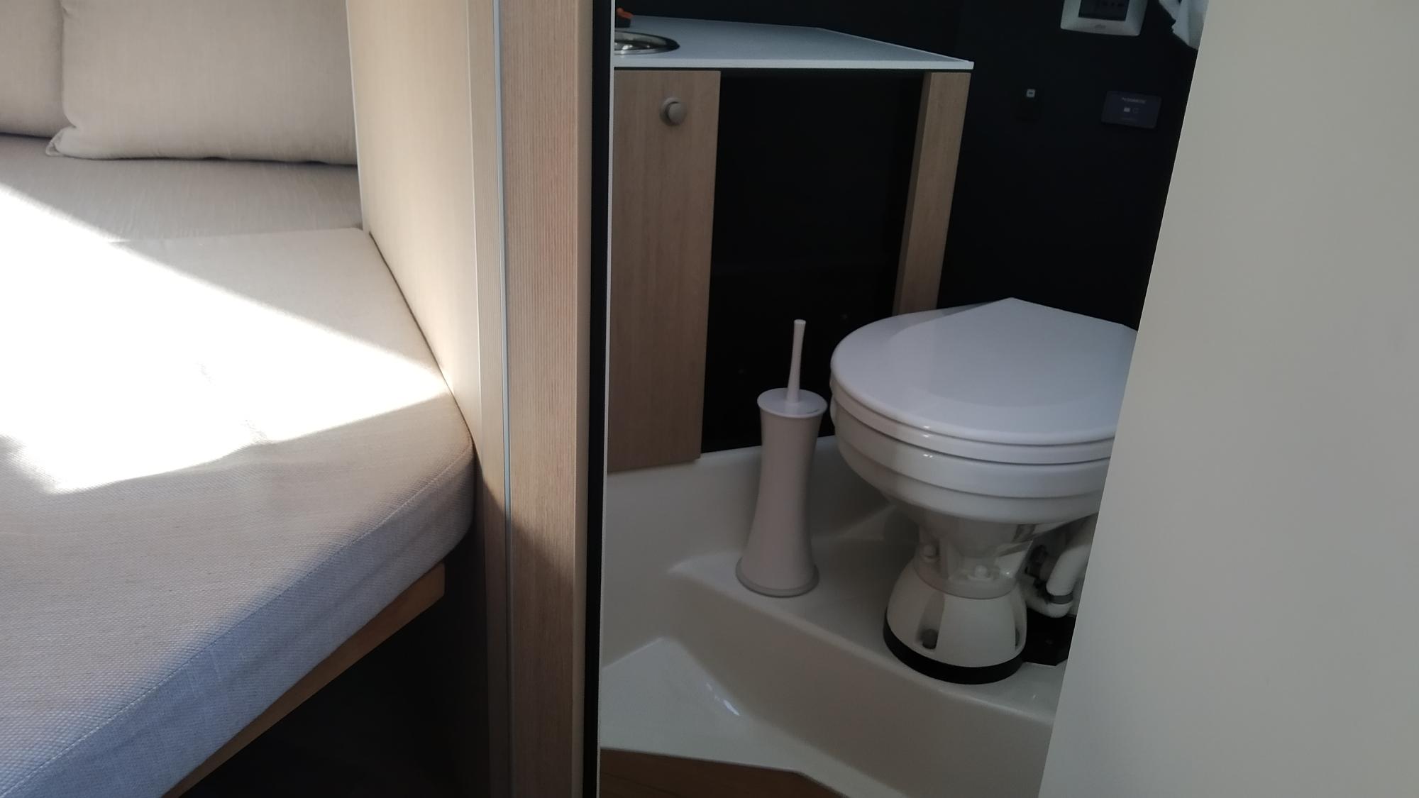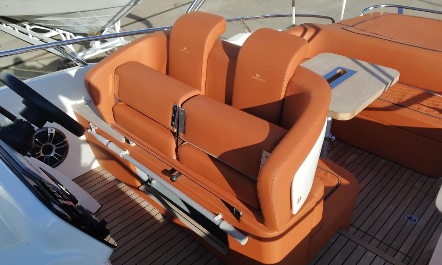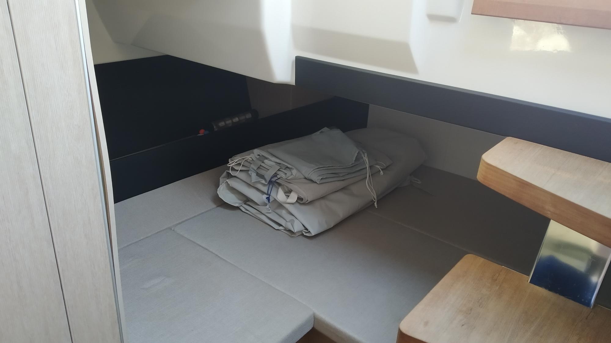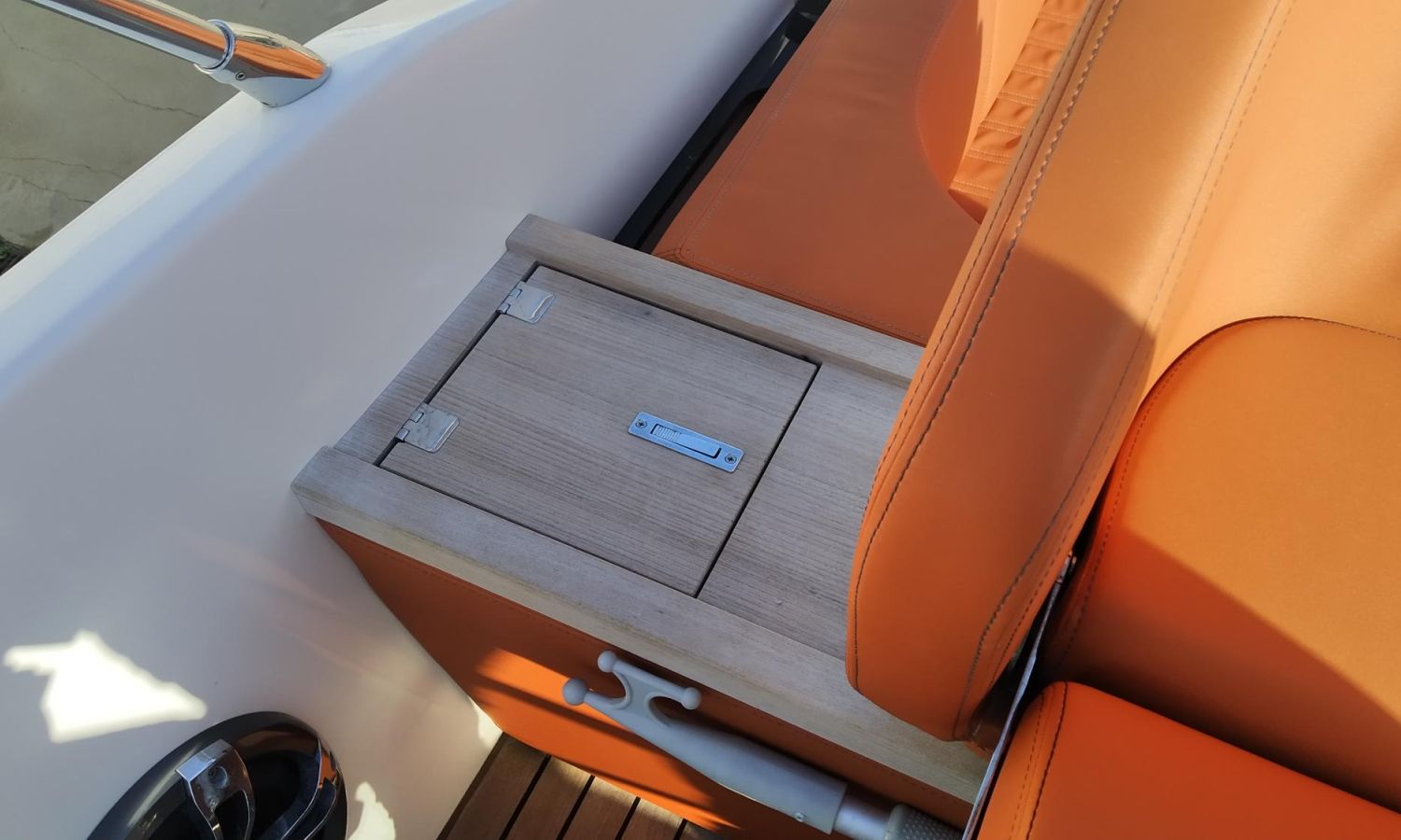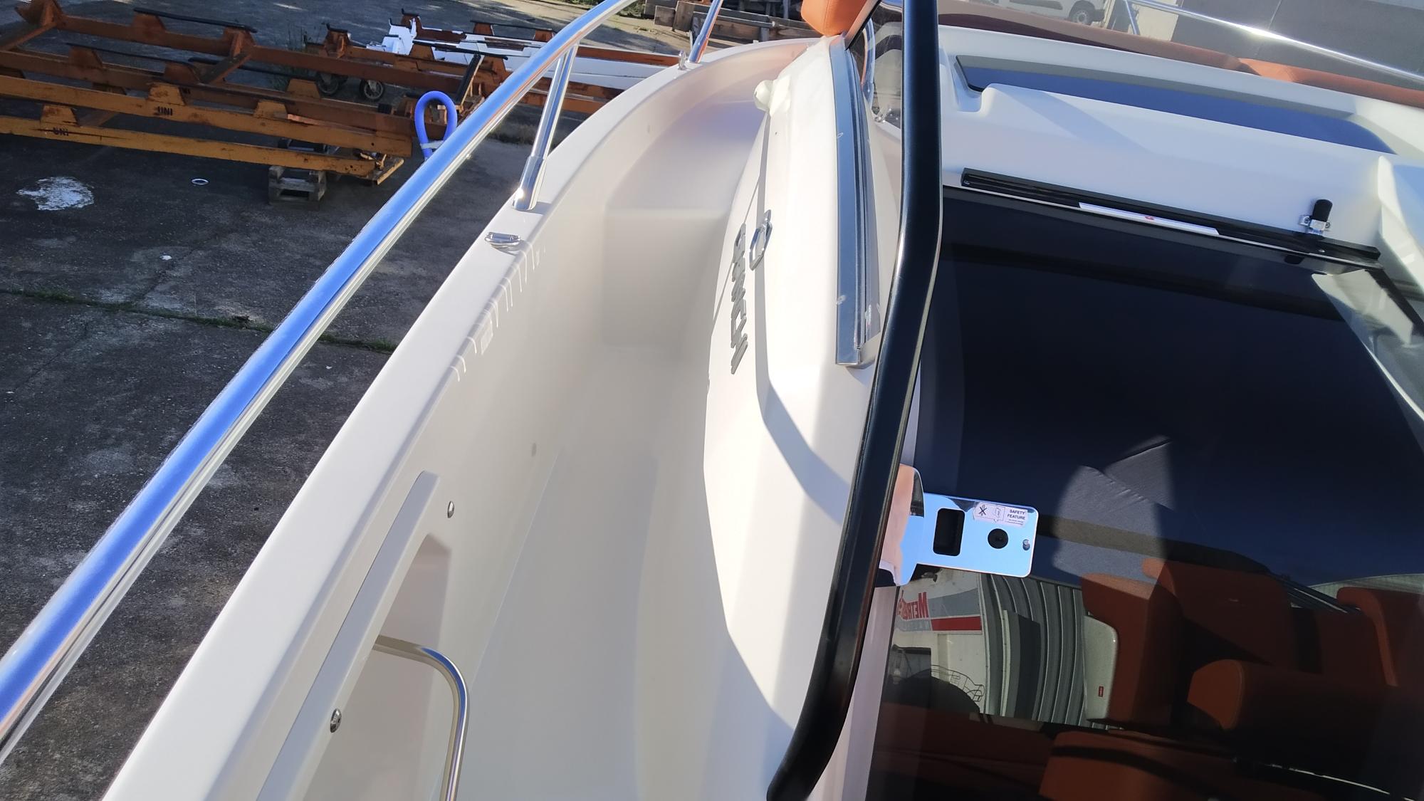 Hélice de proa - Molinete eléctrico con ancla, cadena, mando a distancia y cuentametros cadena - GPS Garmin - Instalación eléctrica 230 V con cargador de baterías - Toma puerto con cable de conexión - Toldo parasol con arquillada en inox - Bañera en teka - Plataforma de baño en teka con escalera - Colchoneta de proa y funda - Lona de fondeo - Nevera en bañera - Horno microondas - Radio Fusion con Bluetooth/USB, altavoces en cabina y bañera, amplificador, subwoofer y mando a distancia en la bañera - Mesa interior convertible en cama - WC con depósito de aguas negras - Antifouling.Descripción embarcación