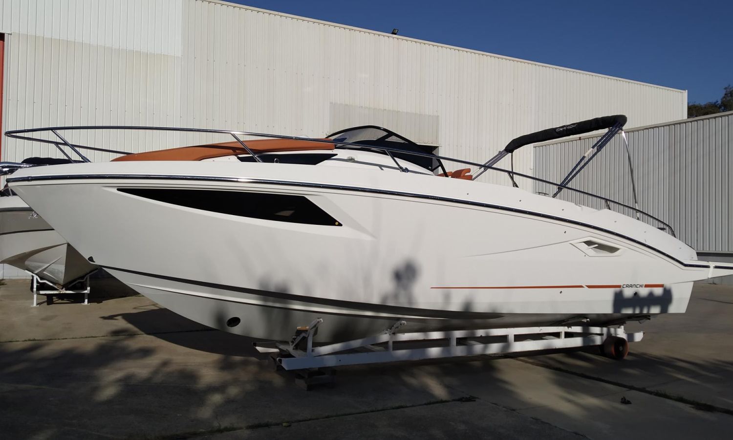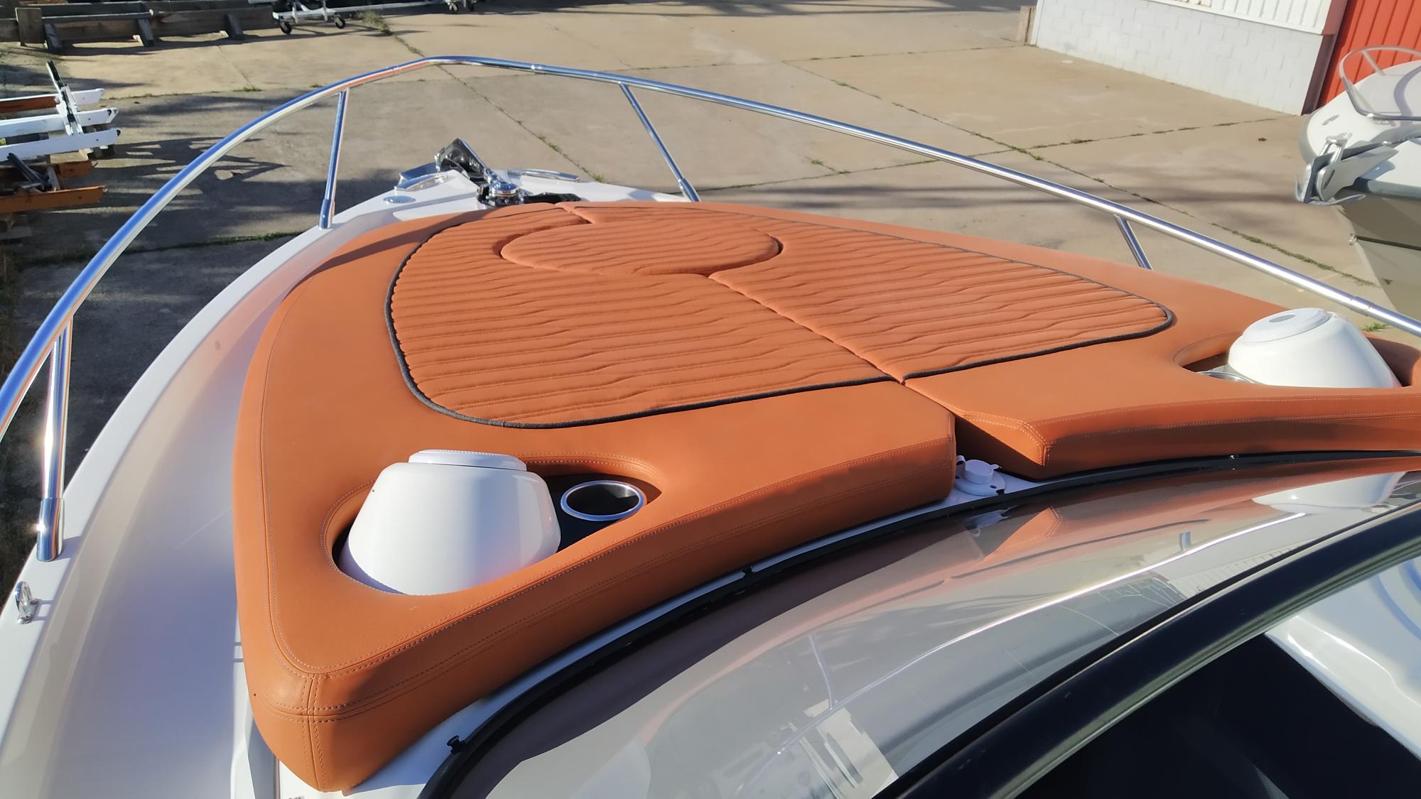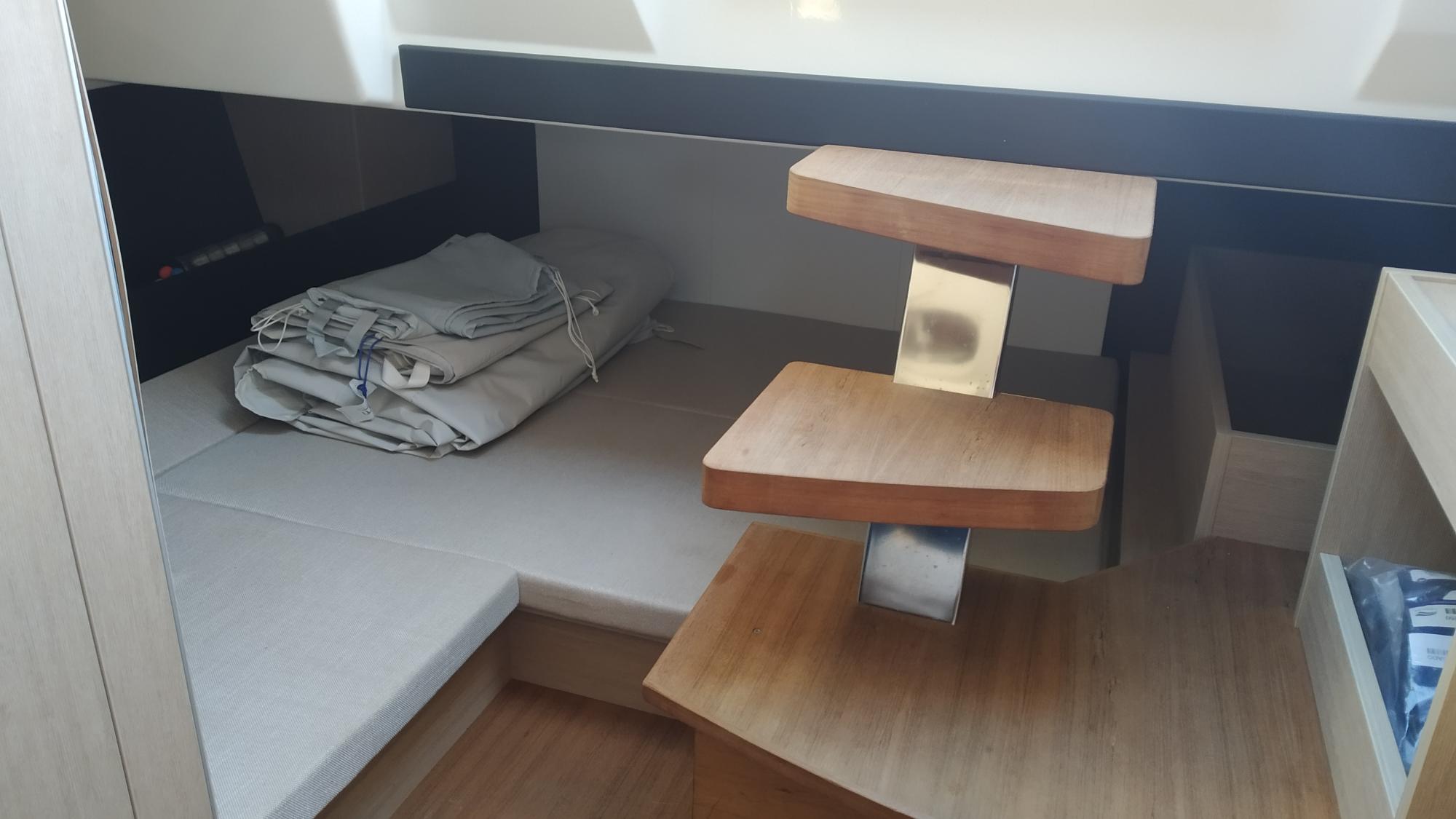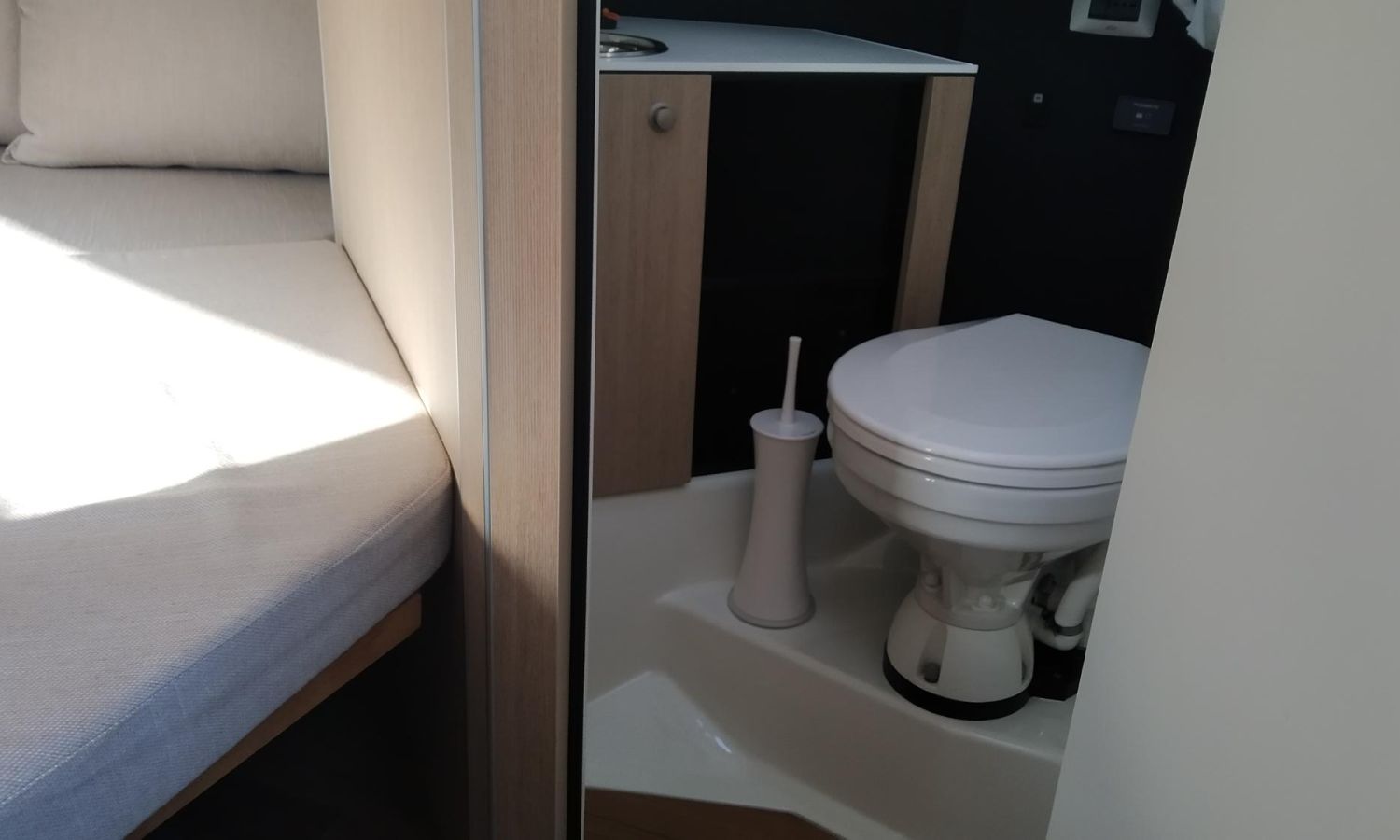 Hélice de proa - Molinete eléctrico con ancla, cadena, mando a distancia y cuentametros cadena - GPS Garmin - Instalación eléctrica 230 V con cargador de baterías - Toma puerto con cable de conexión - Toldo parasol con arquillada en inox - Bañera en teka - Plataforma de baño en teka con escalera - Colchoneta de proa y funda - Lona de fondeo - Nevera en bañera - Horno microondas - Radio Fusion con Bluetooth/USB, altavoces en cabina y bañera, amplificador, subwoofer y mando a distancia en la bañera - Mesa interior convertible en cama - WC con depósito de aguas negras - Antifouling.Descripción embarcación