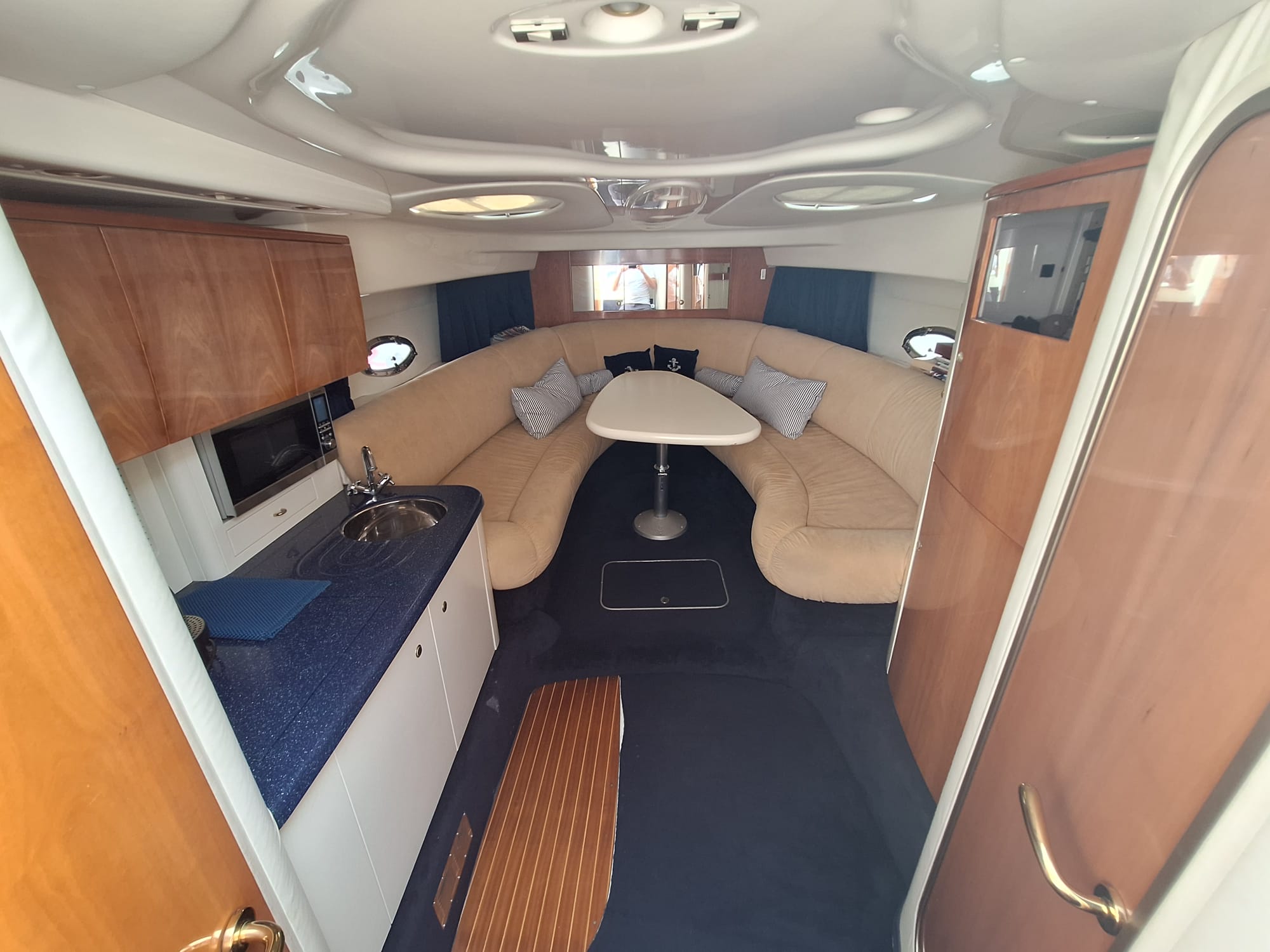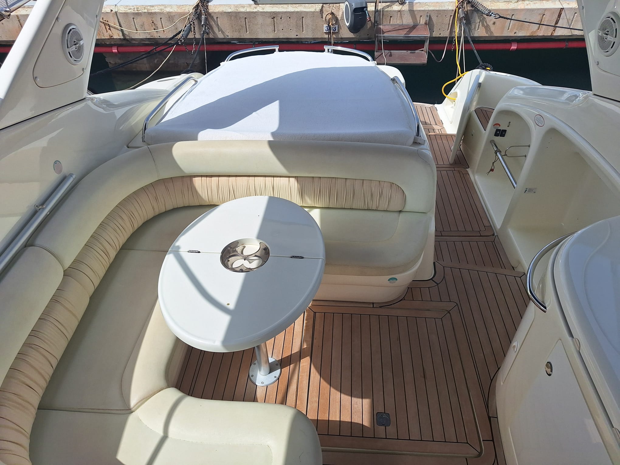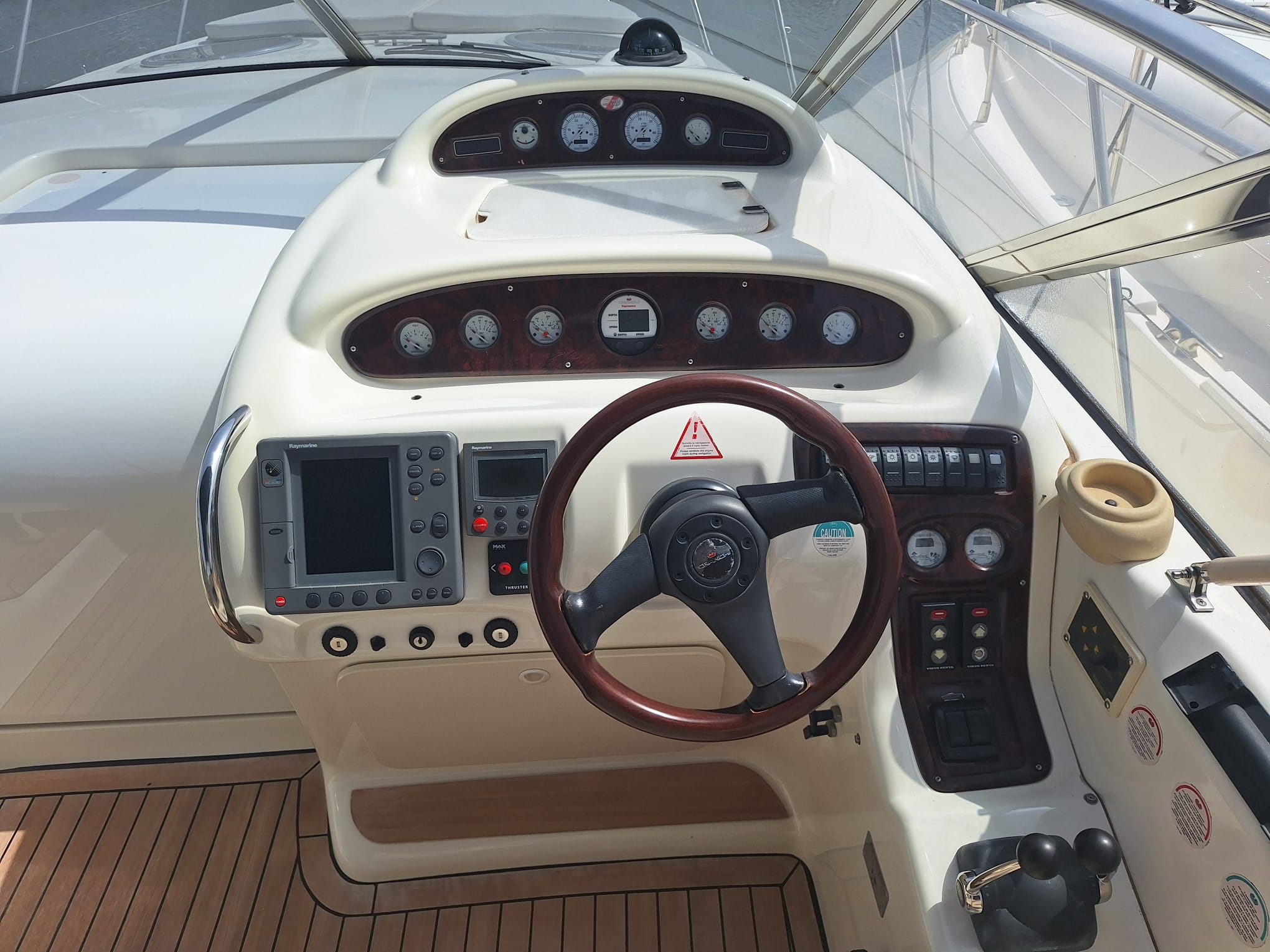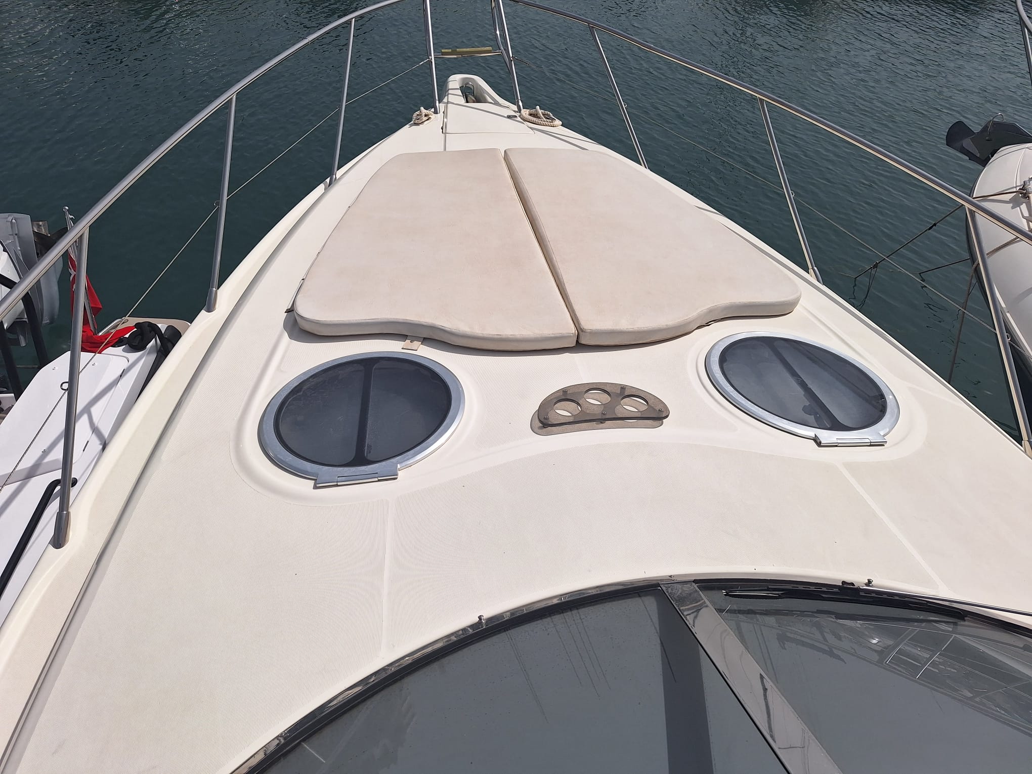 Generador - Aire acondicionado - Equipo audio - Fundas para consola y asientos - Funda camper - Bimini - 2 neveras - Microondas - Calentador de agua - Cargador de baterías - Teca en el suelo - Control de cabrestante de ancla - Escotilla de apertura y cierre electrohidráulico - Ducha - Vhf - Gps/Plotter/Sonda - Piloto automático - Hélice de proa - Bateria sevicios nueva 2025 - Flaps - Antifouling.Descripción embarcación