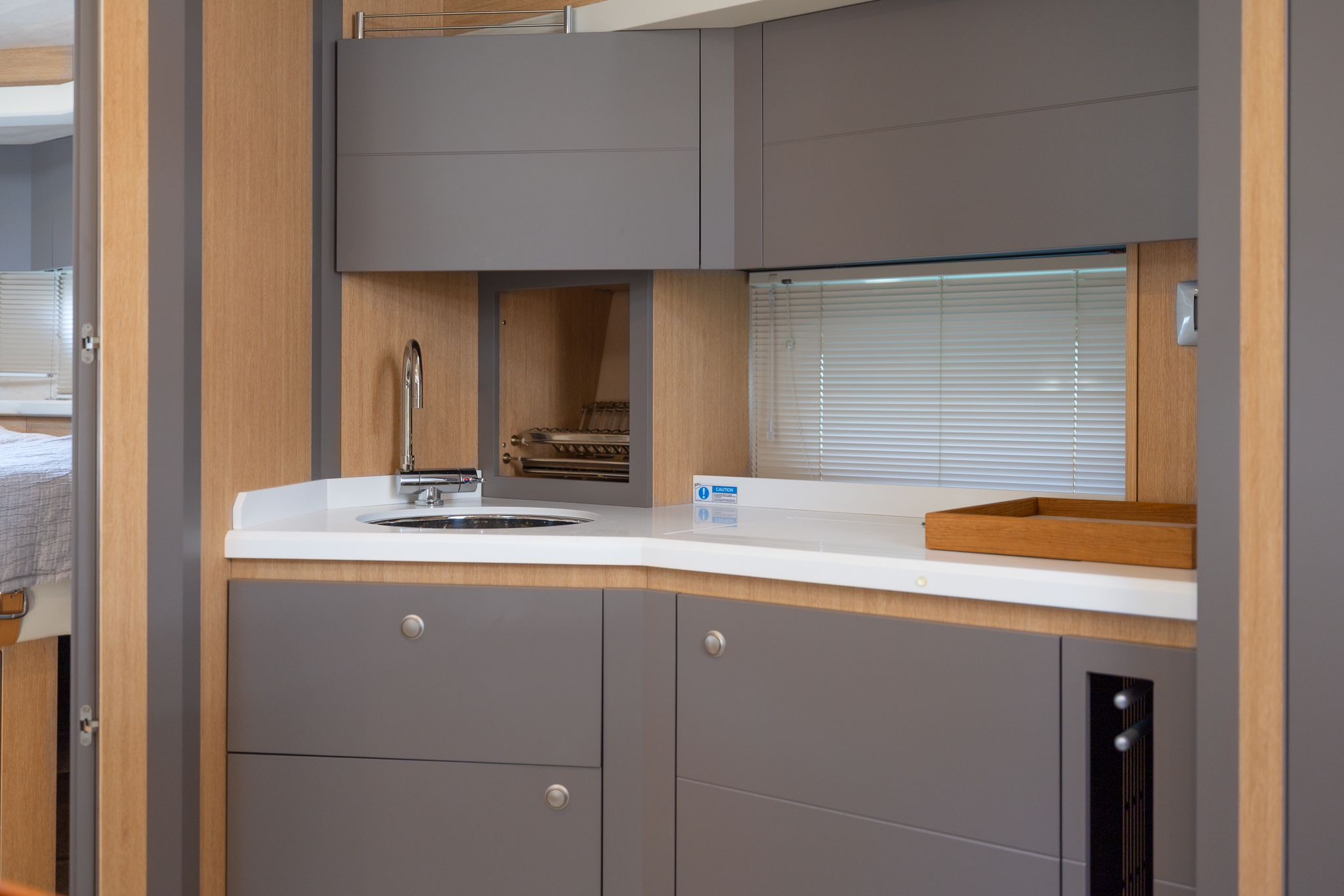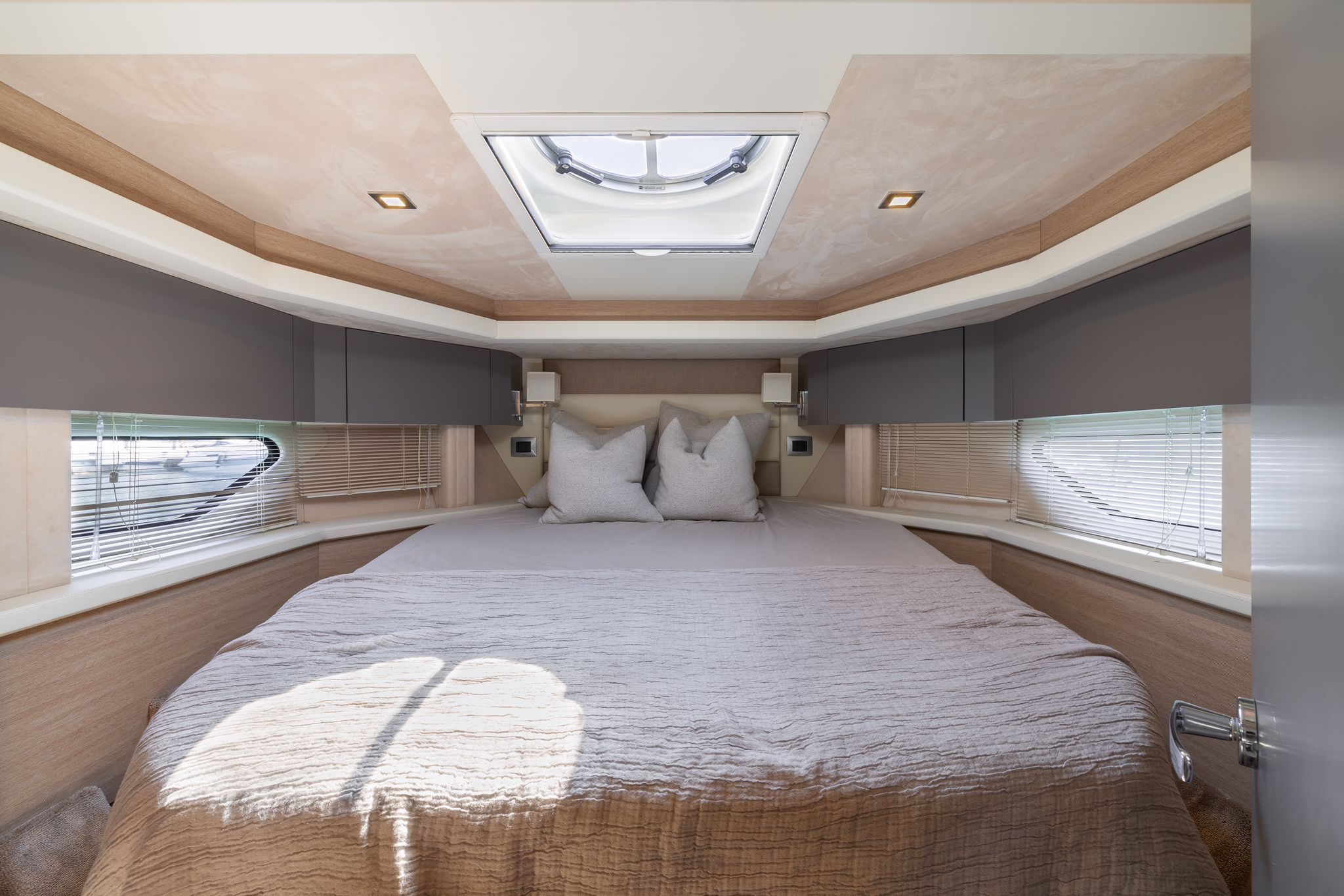 Toldo bimini - Passarela - Ducha de agua caliente - Dos neveras - Picnic de teca - Mesa - Cargador de baterias 220 v. - Tv - Inodoro marino - Ducha con manpara - Suelo de cubierta de teca - Equipo de audio - 2 camarotes - Cubierta para tomar el sol en proa y popa - Joystick - Gps/Plotter/Sonda - Piloto automático - Molinete de ancla eléctrico - Antifouling.Descripción embarcación