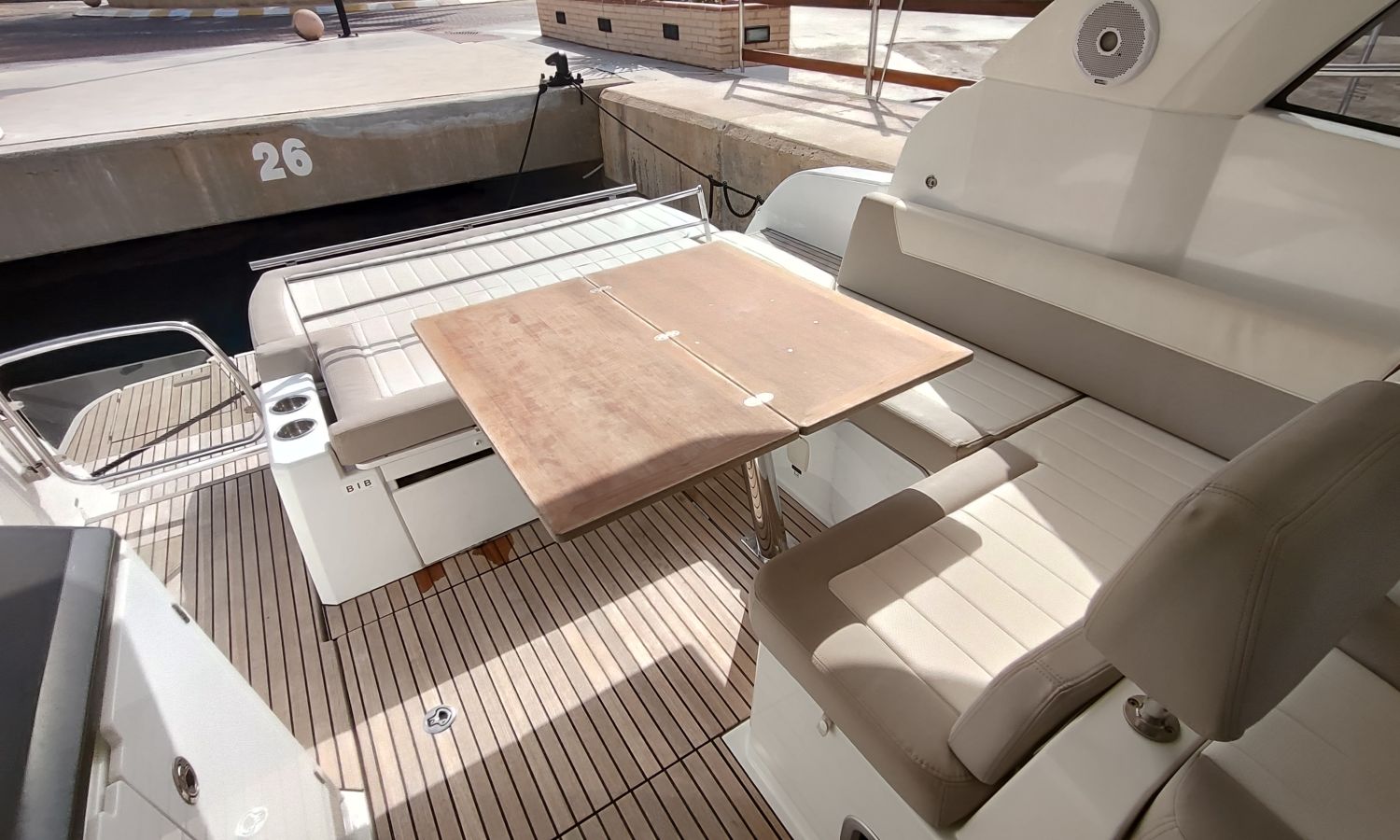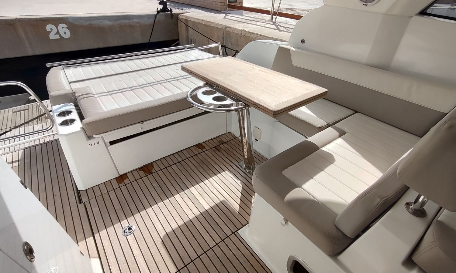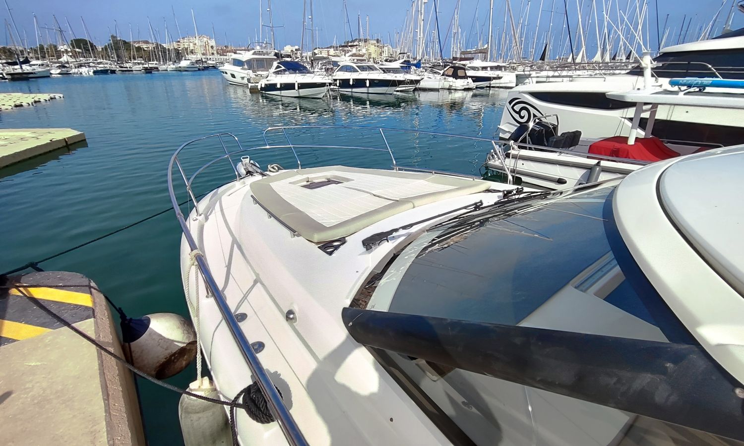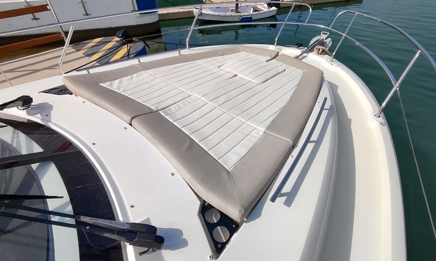 GPS Plotter, Piloto automático, VHF con DSC, colchonetas solárium de proa reclinables, ducha en popa y en proa, molinete eléctrico de ancla, WC eléctrico con deposito de aguas negras, toldo parasol en popa, capota camper cierre trasero, toma de agua a muelle, suplemento para cama doble cabina trasera, pack confort, toldo fondeo bañera, teca en plataforma de baño, mesa de bañera en teca, cojines bañera premium con baño de sol, flaps eléctricos, suelo de bañera en teca, decoración casco, TV con DVD, sistema audio fúsionDescripción embarcación