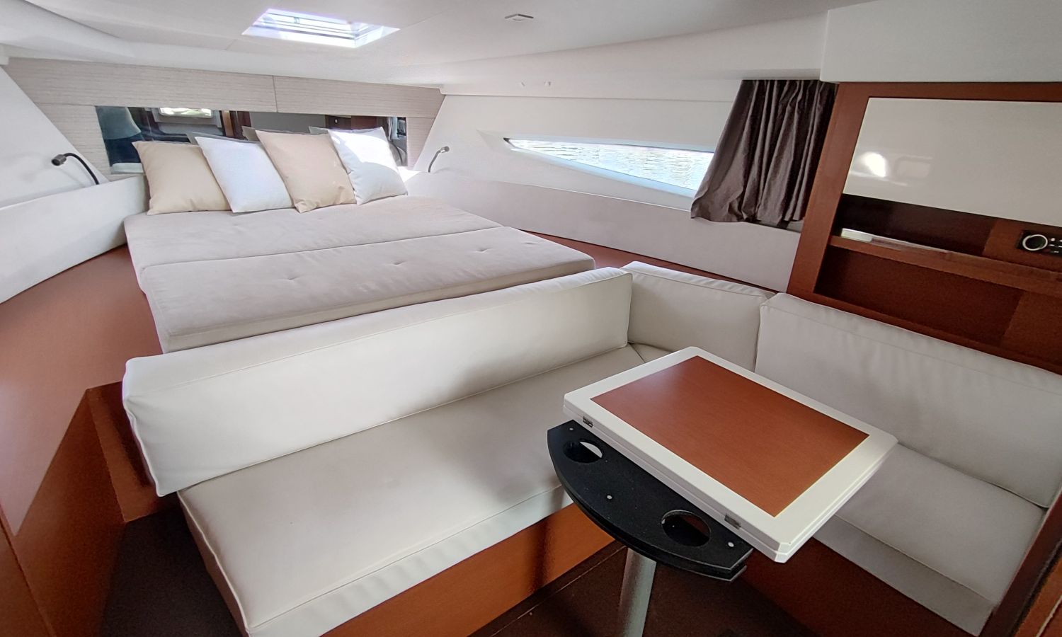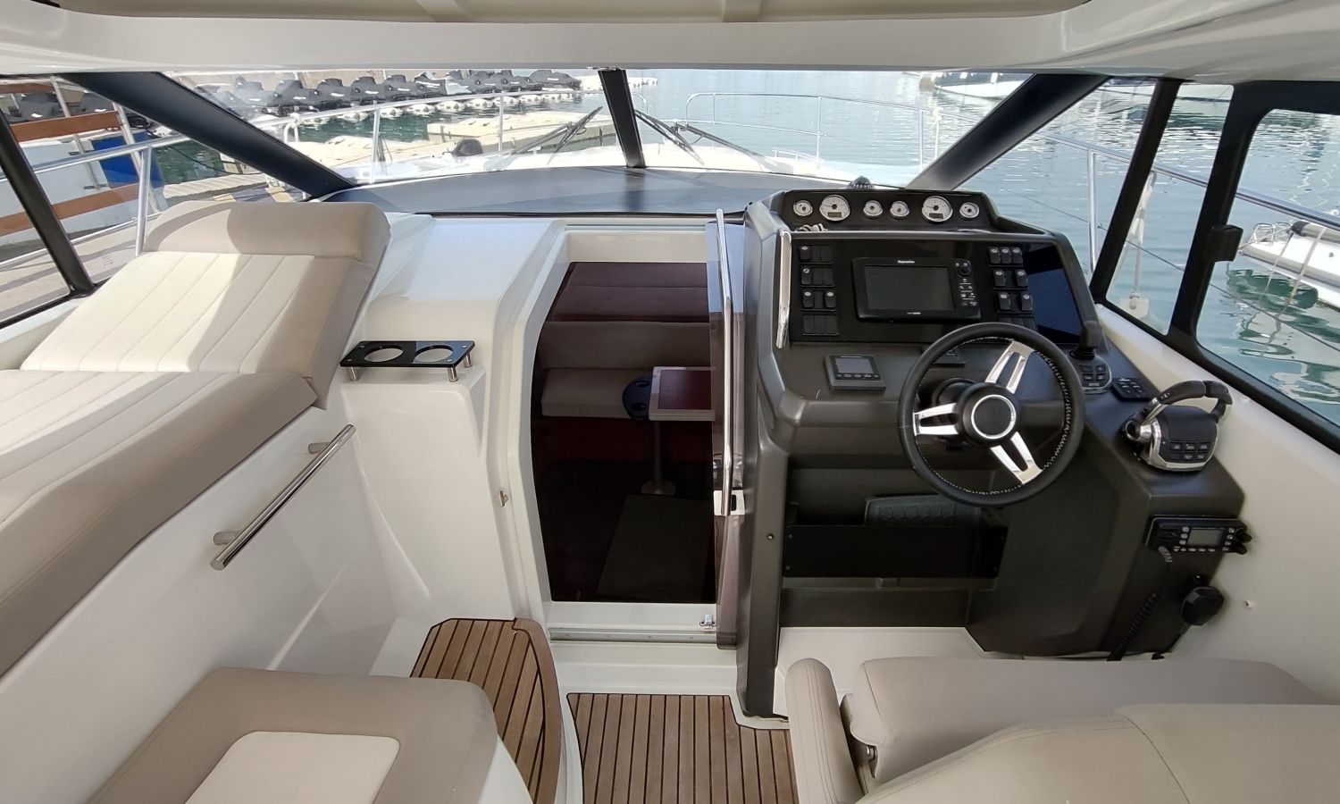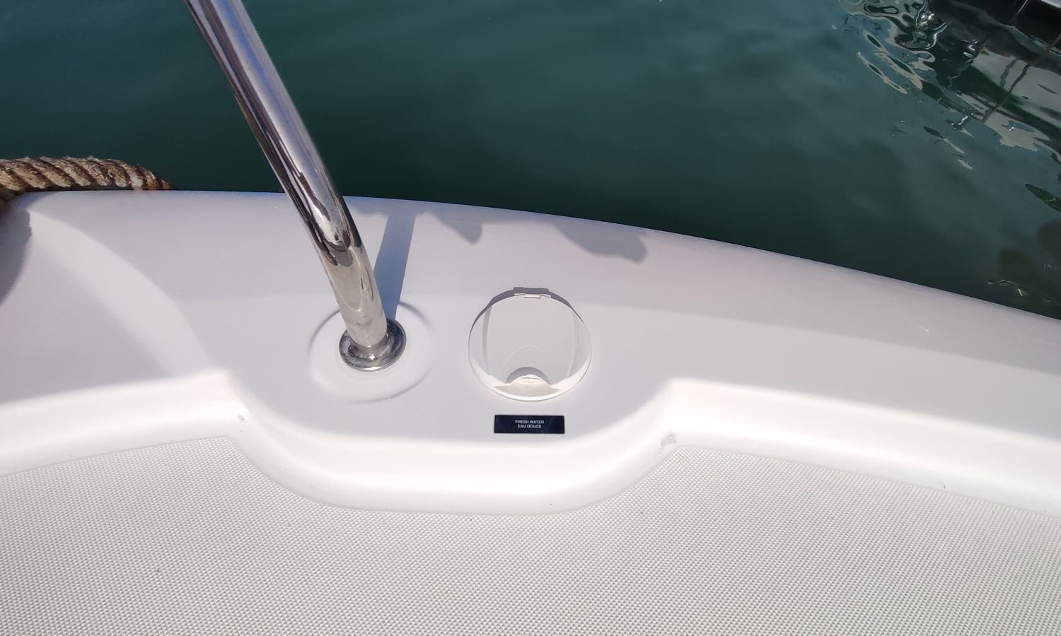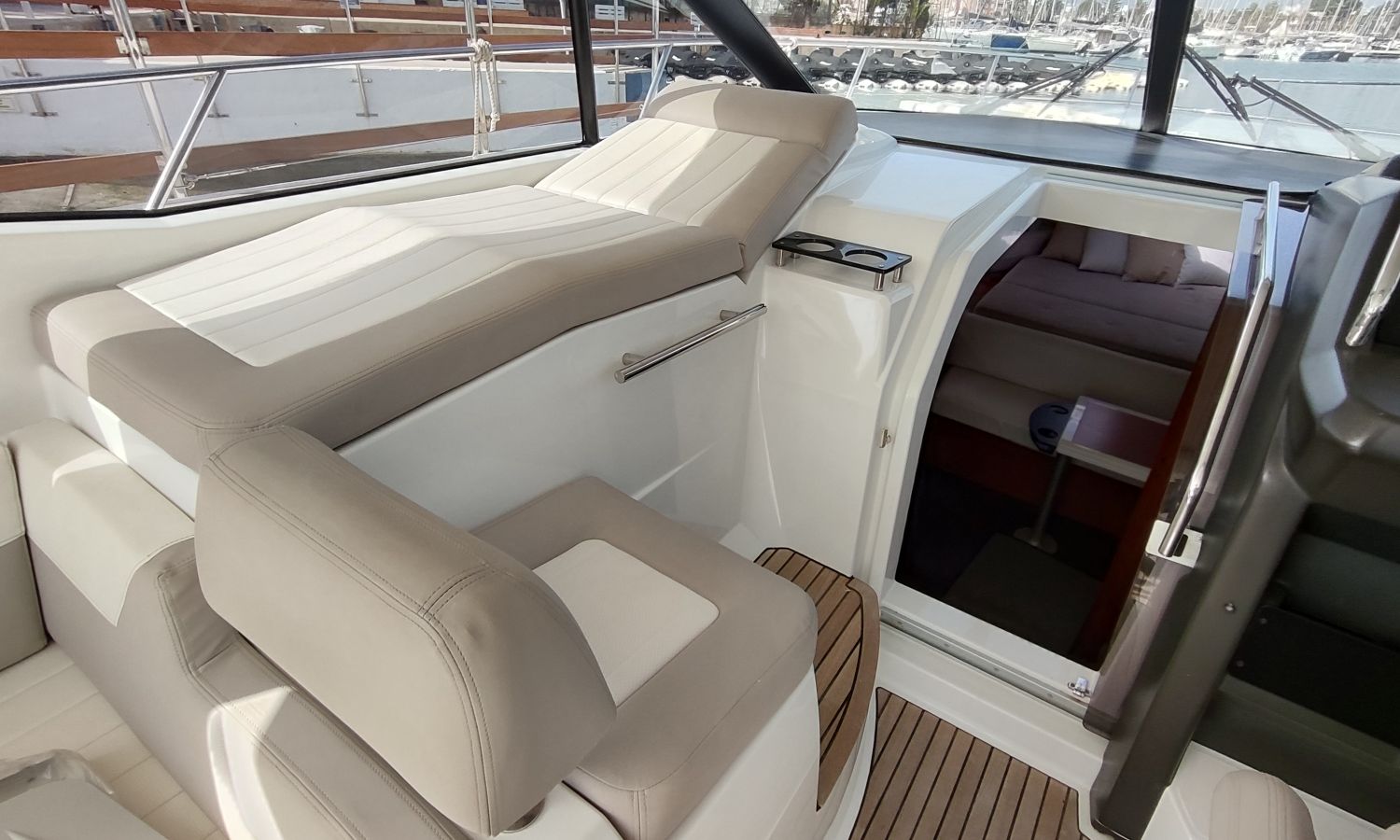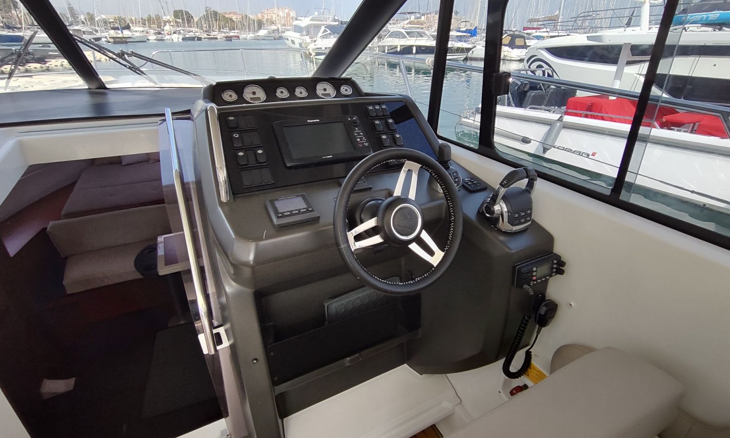 GPS Plotter, Piloto automático, VHF con DSC, colchonetas solárium de proa reclinables, ducha en popa y en proa, molinete eléctrico de ancla, WC eléctrico con deposito de aguas negras, toldo parasol en popa, capota camper cierre trasero, toma de agua a muelle, suplemento para cama doble cabina trasera, pack confort, toldo fondeo bañera, teca en plataforma de baño, mesa de bañera en teca, cojines bañera premium con baño de sol, flaps eléctricos, suelo de bañera en teca, decoración casco, TV con DVD, sistema audio fúsionDescripción embarcación