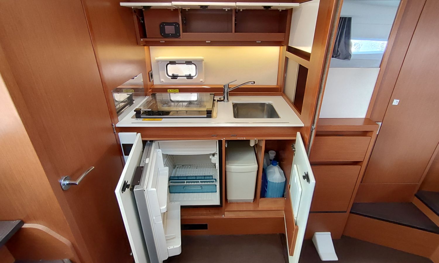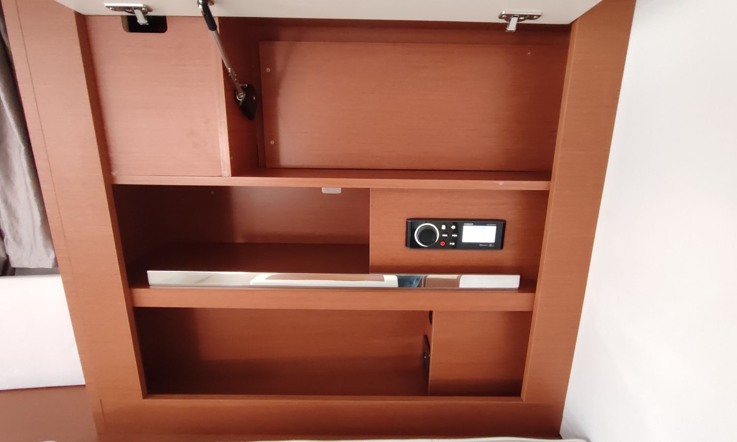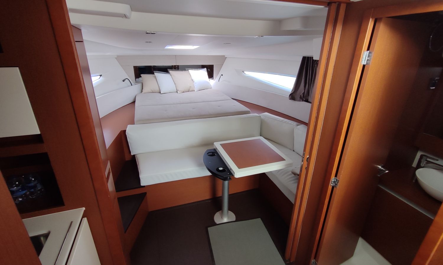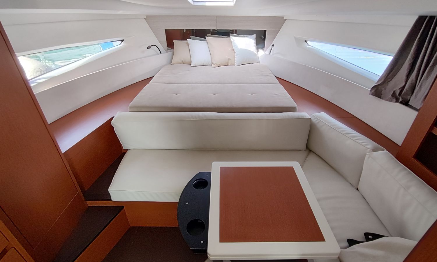 GPS Plotter, Piloto automático, VHF con DSC, colchonetas solárium de proa reclinables, ducha en popa y en proa, molinete eléctrico de ancla, WC eléctrico con deposito de aguas negras, toldo parasol en popa, capota camper cierre trasero, toma de agua a muelle, suplemento para cama doble cabina trasera, pack confort, toldo fondeo bañera, teca en plataforma de baño, mesa de bañera en teca, cojines bañera premium con baño de sol, flaps eléctricos, suelo de bañera en teca, decoración casco, TV con DVD, sistema audio fúsionDescripción embarcación