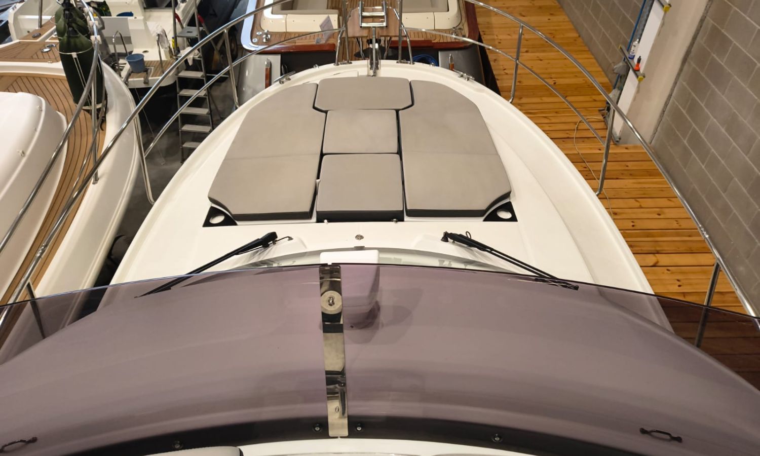 Seakeeper 2 - Nivel de equipamiento Premiere - Pack audio Fusión - Toldo para baño de sol en bañera - Bimini en el Flyng Bridge - Pack electrónico Garmin – Radio VHF - Radar – Piloto automático - Pack Confort versión Fly - Kit de amarre - Kit de fondeo - Proyector de cubierta - Propulsor de proa con doble control (Fly y Timonera) - Escalera de proa con plataforma de madera - Mesa en el Fly + cojín para Chaise Lounge - Baño de sol en Fly - Baño de sol en proa con respaldos ajustables - Flaps eléctricos - Mesas en bañera - Colchón para 3 cabina - Complemento cama doble en el salón - Armario de estiba alto en la cocina - Armario de estiba alto en el salón - Armarios de estiba alto en la cabina de proa - Plataformas y bañera en Teca - Cubierta de proa en teca - Pintura Antifoulig.Descripción embarcación
