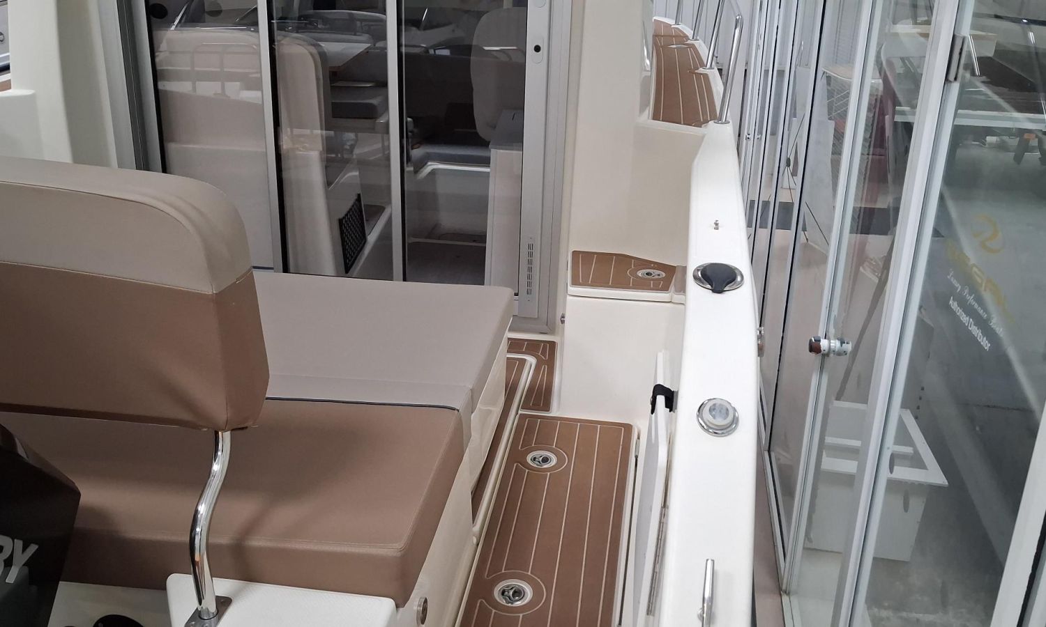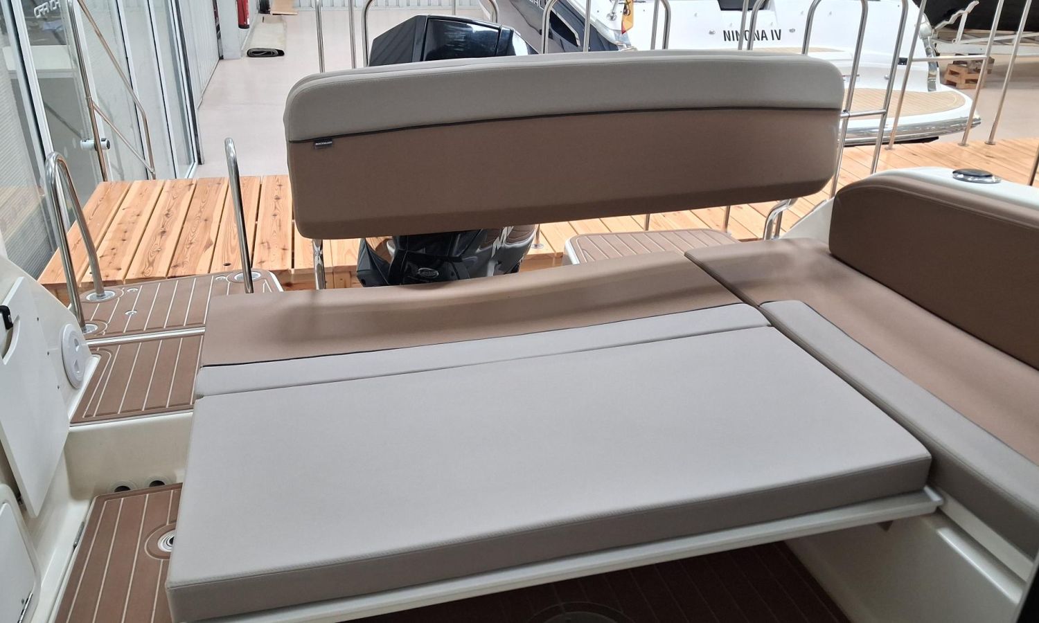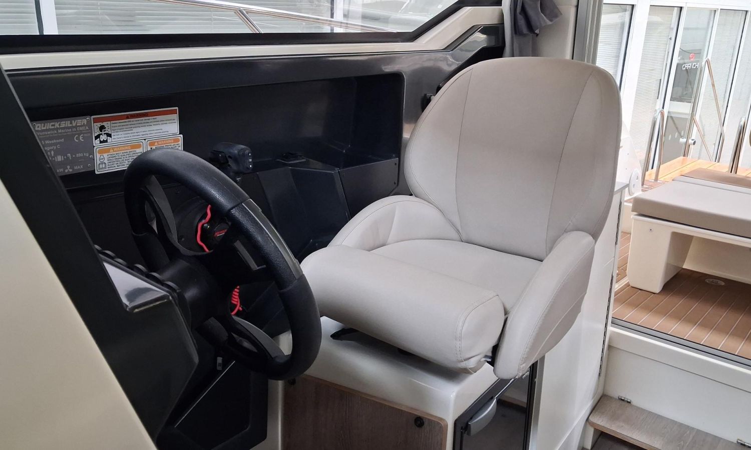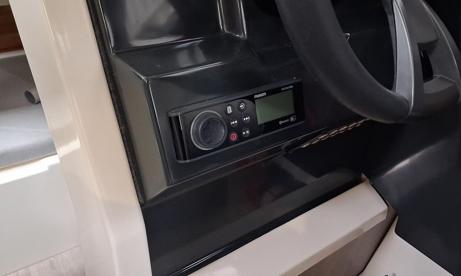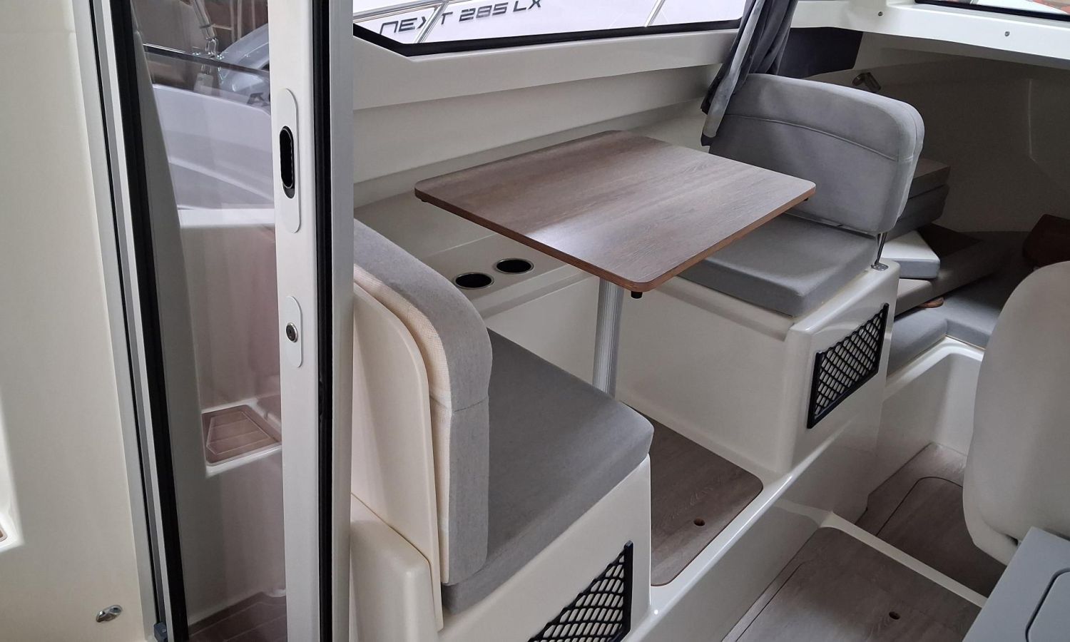 Toldo parasol de popa - Colchonetas para solárium de proa - Molinete eléctrico con ancla y cadena - GPS - Equipo de música Fusion - WC eléctrico con depósito de aguas negras - Mesa en bañera convertible en solárium - Ducha en bañera - Nevera en cabina - Mueble en cabina con fregadero - Dinette en cabina convertible en cama - Techo cabina con apertura manual - Toma de puerto - Seadeck en bañera, trancaniles y plataformas de popa - Antifouling.Descripción embarcación