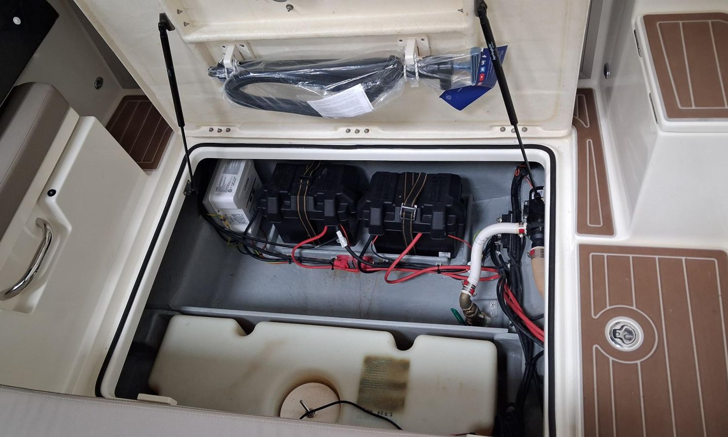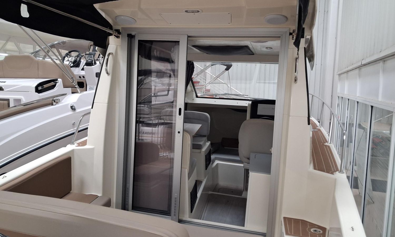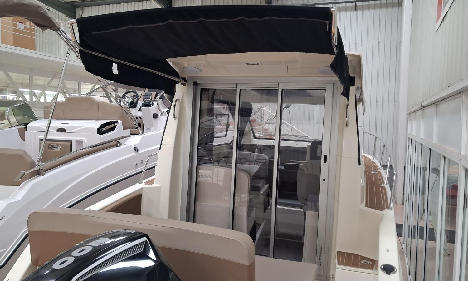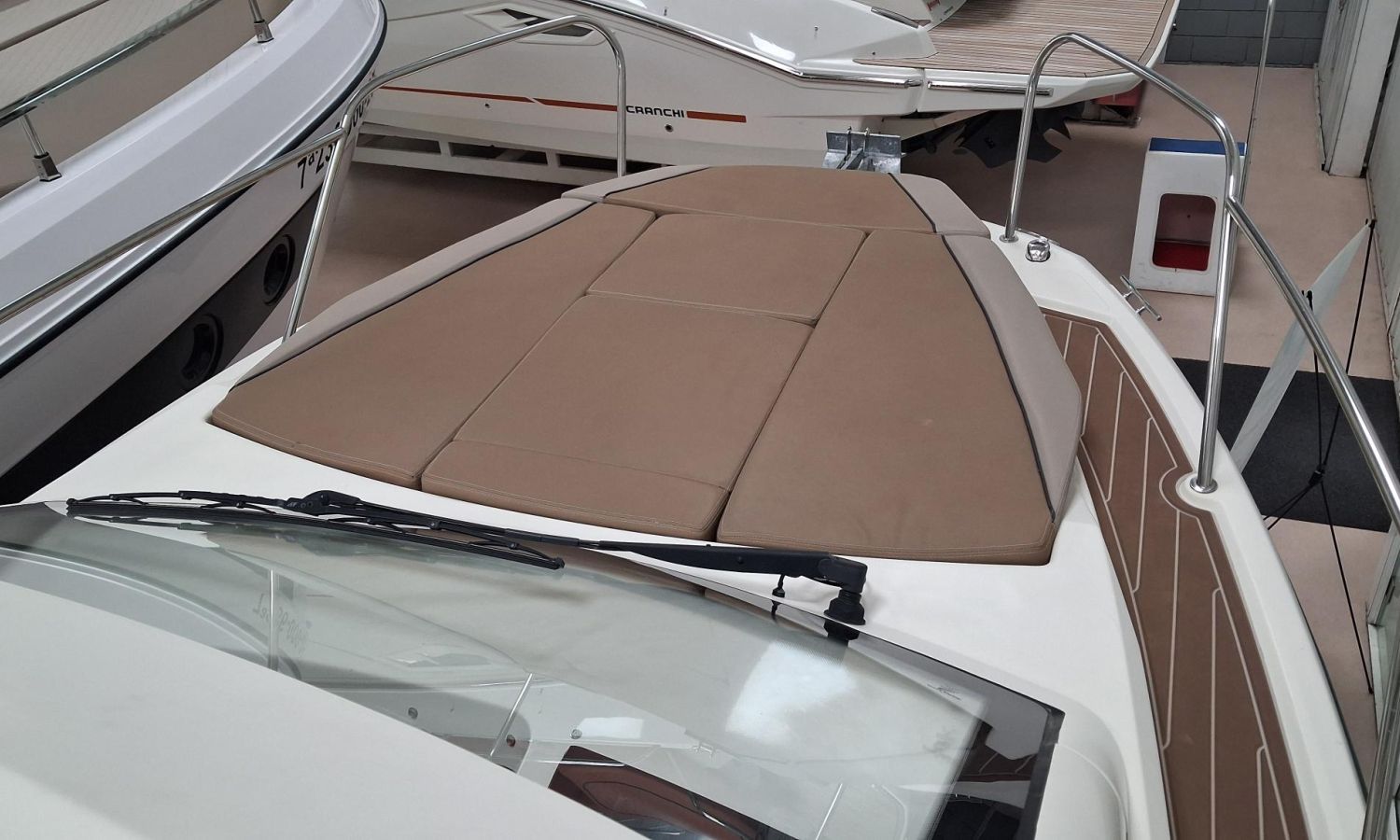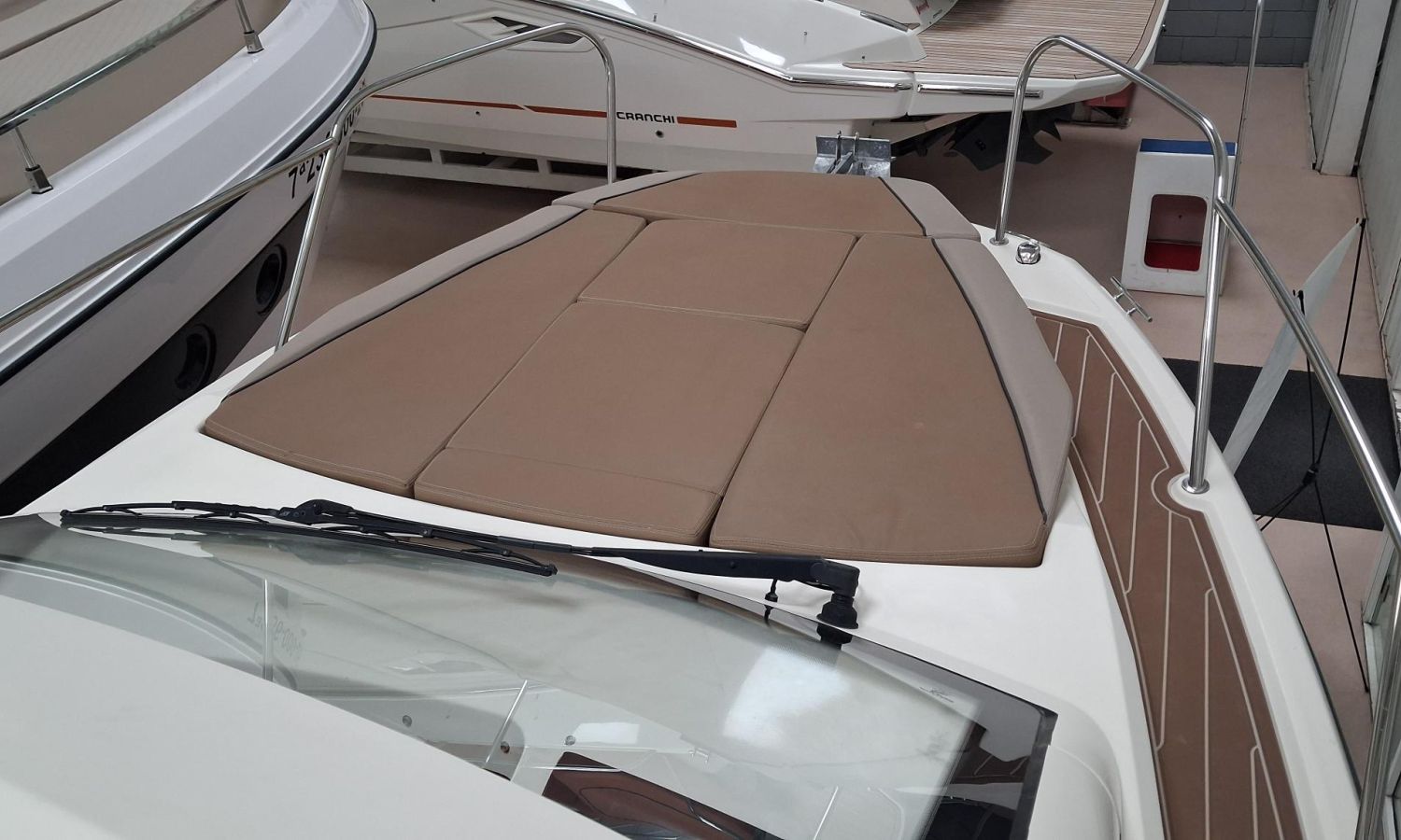 Toldo parasol de popa - Colchonetas para solárium de proa - Molinete eléctrico con ancla y cadena - GPS - Equipo de música Fusion - WC eléctrico con depósito de aguas negras - Mesa en bañera convertible en solárium - Ducha en bañera - Nevera en cabina - Mueble en cabina con fregadero - Dinette en cabina convertible en cama - Techo cabina con apertura manual - Toma de puerto - Seadeck en bañera, trancaniles y plataformas de popa - Antifouling.Descripción embarcación