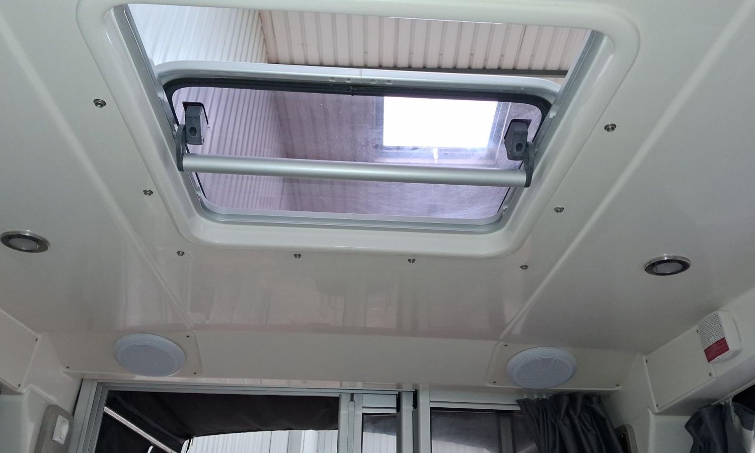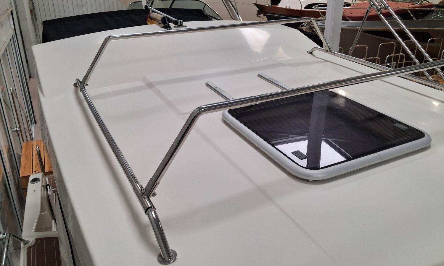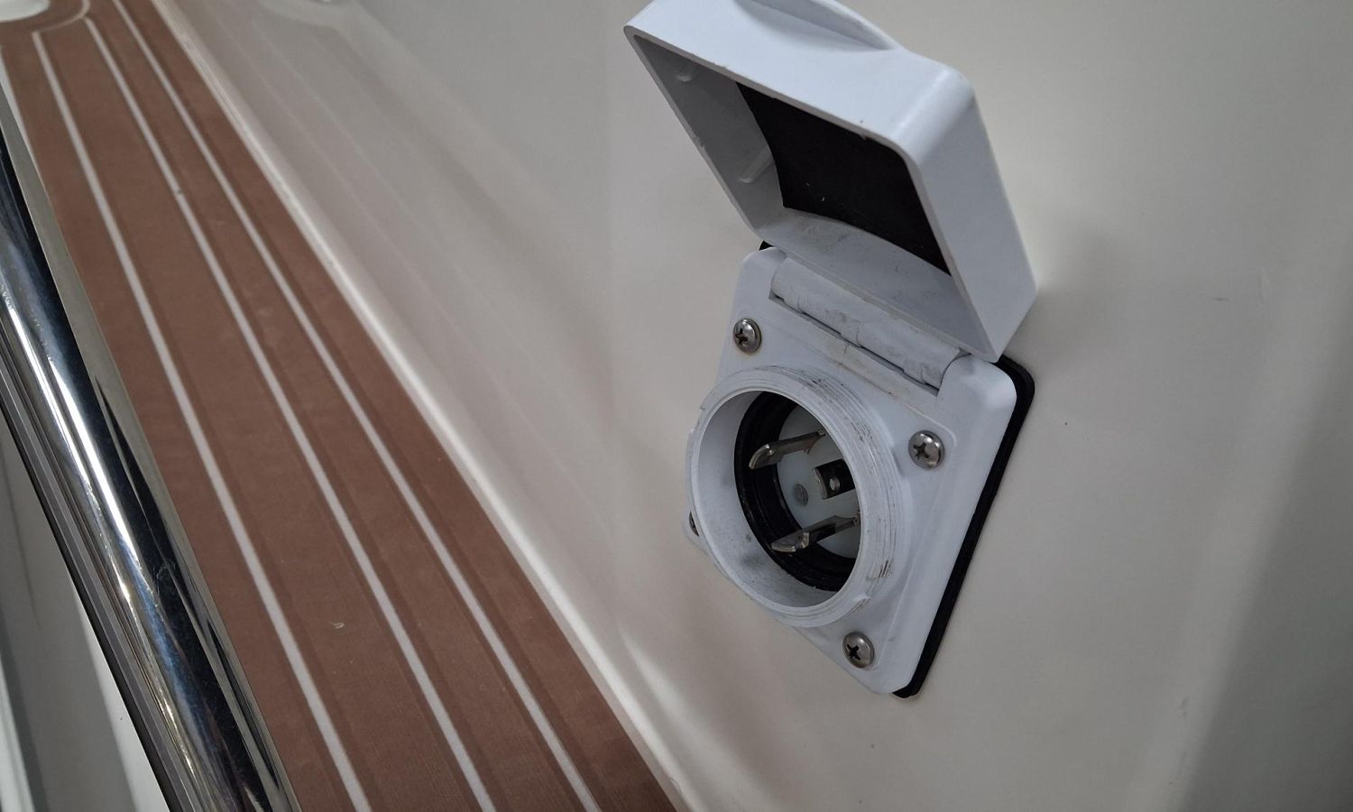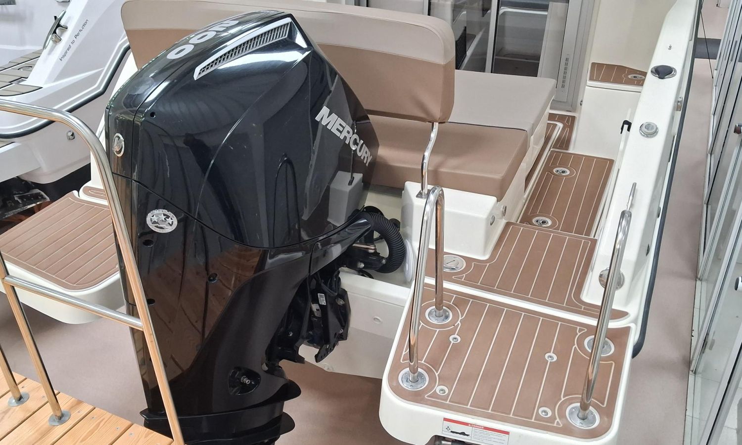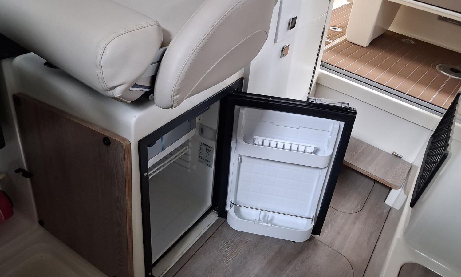 Toldo parasol de popa - Colchonetas para solárium de proa - Molinete eléctrico con ancla y cadena - GPS - Equipo de música Fusion - WC eléctrico con depósito de aguas negras - Mesa en bañera convertible en solárium - Ducha en bañera - Nevera en cabina - Mueble en cabina con fregadero - Dinette en cabina convertible en cama - Techo cabina con apertura manual - Toma de puerto - Seadeck en bañera, trancaniles y plataformas de popa - Antifouling.Descripción embarcación