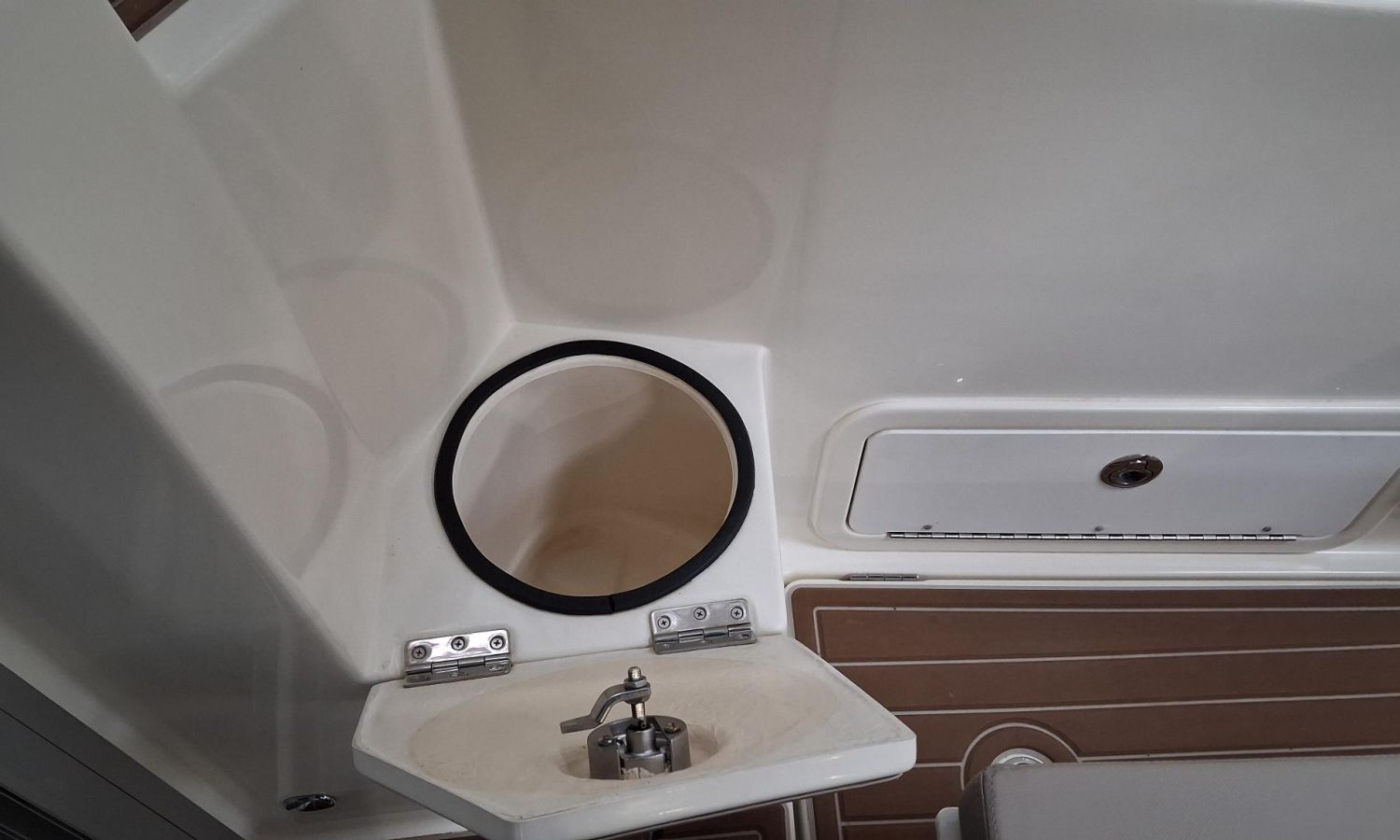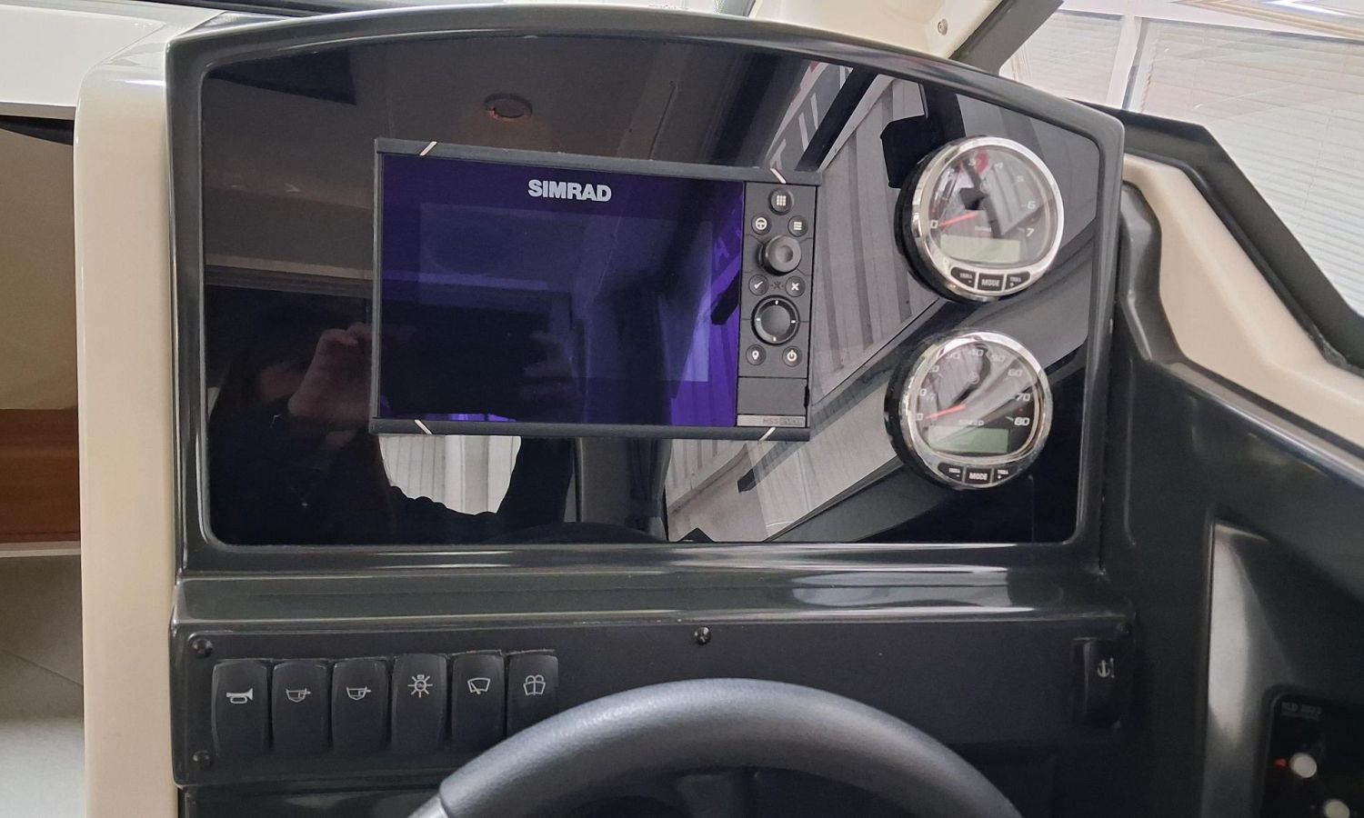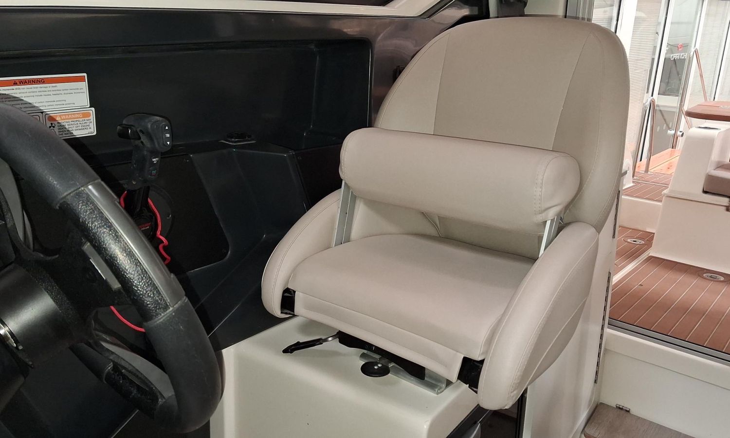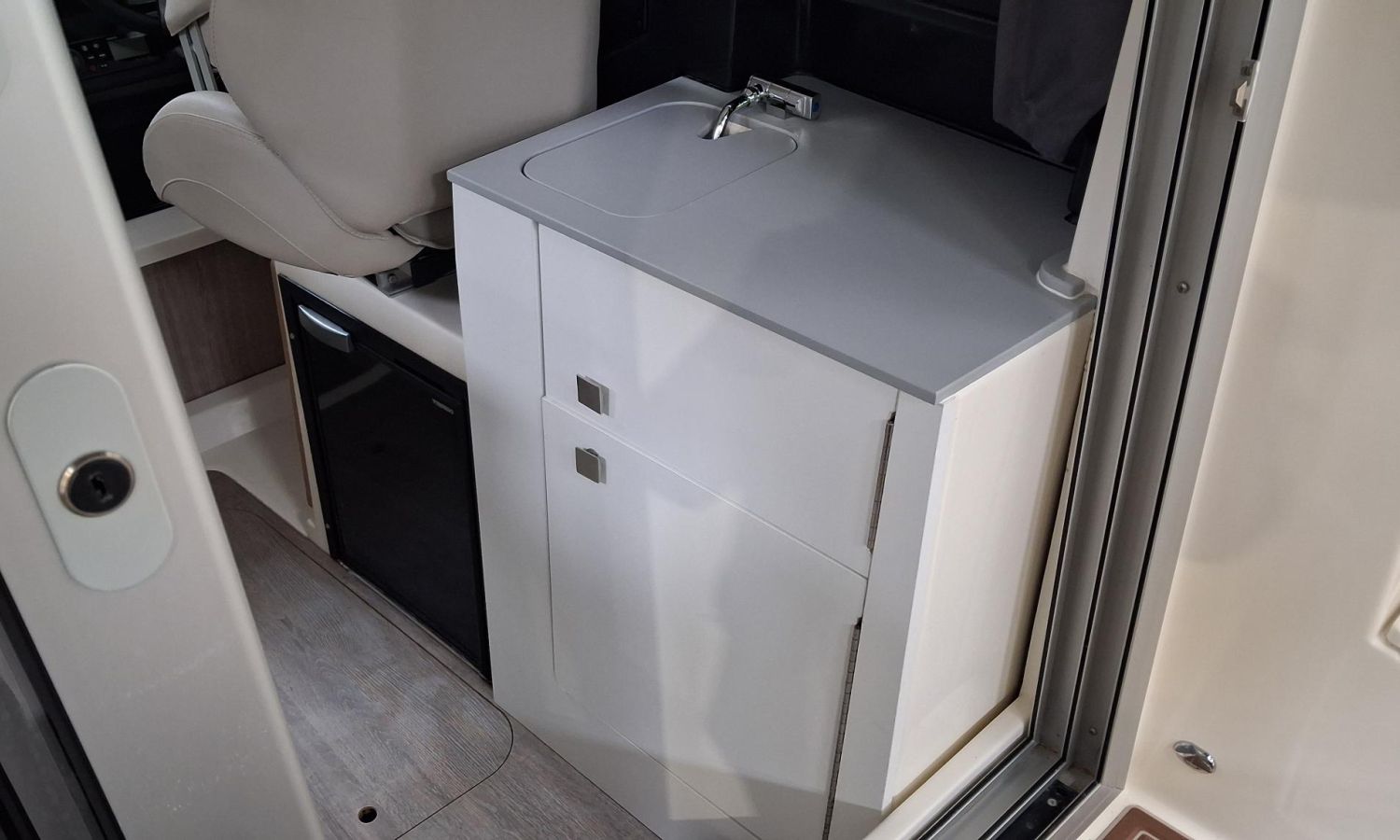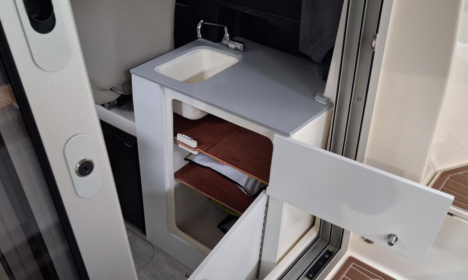 Toldo parasol de popa - Colchonetas para solárium de proa - Molinete eléctrico con ancla y cadena - GPS - Equipo de música Fusion - WC eléctrico con depósito de aguas negras - Mesa en bañera convertible en solárium - Ducha en bañera - Nevera en cabina - Mueble en cabina con fregadero - Dinette en cabina convertible en cama - Techo cabina con apertura manual - Toma de puerto - Seadeck en bañera, trancaniles y plataformas de popa - Antifouling.Descripción embarcación