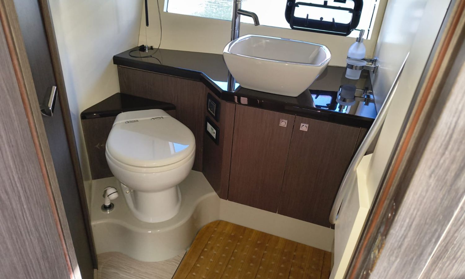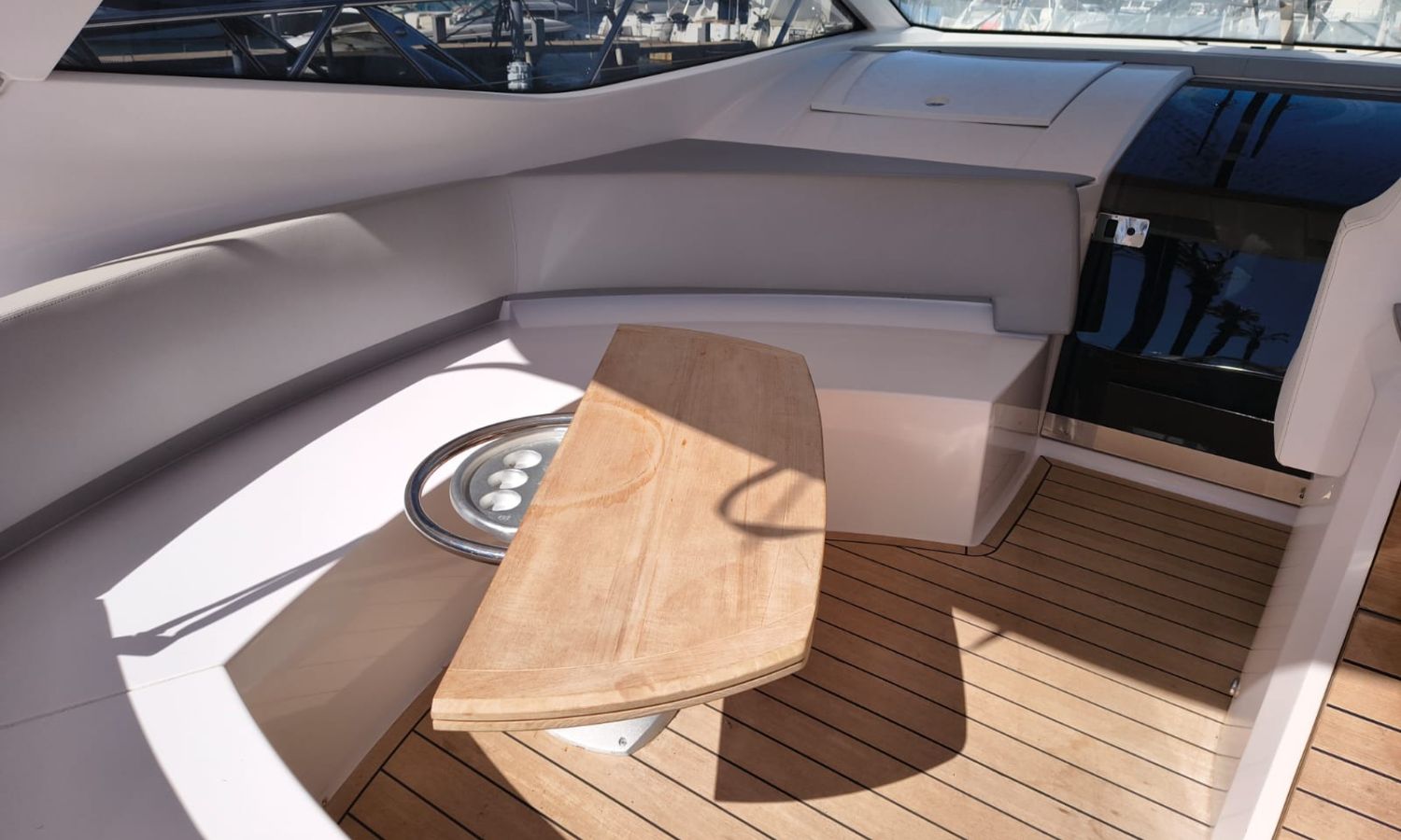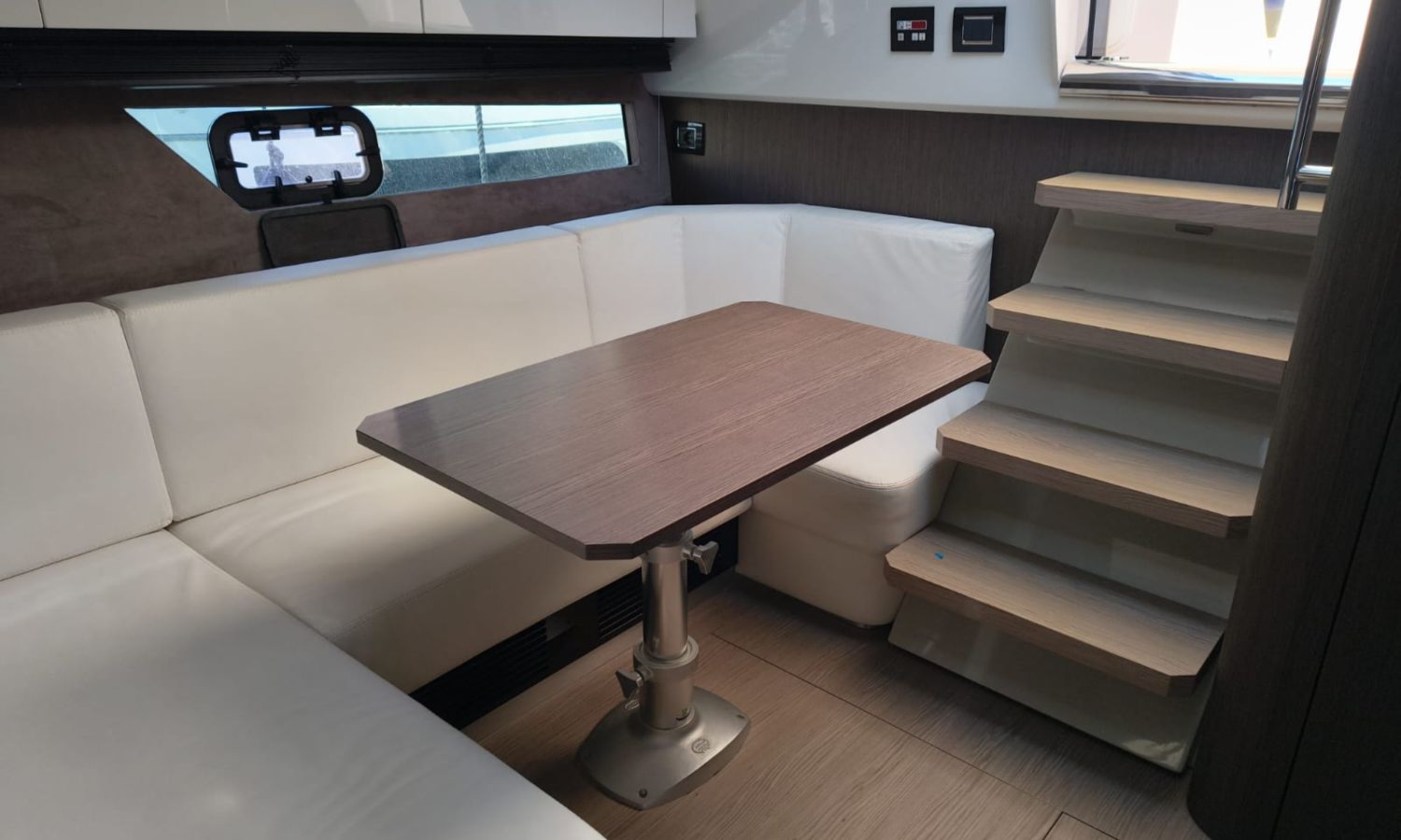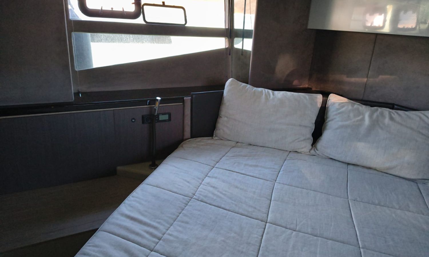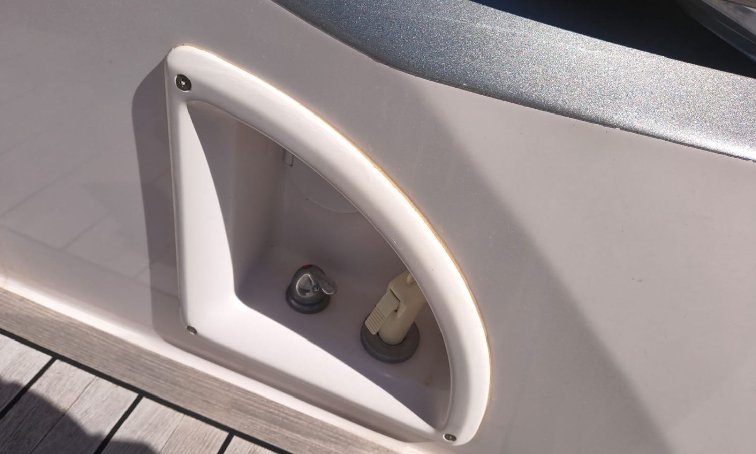 Hard Top - Toldo bimini - Hélice de proa - Flaps - Toma de puerto 220 V - Cargador de baterías - Generador - Solárium de proa - WC con depósito de aguas negras - 2 Cabinas - 2 Baños - Molinete eléctrico - Pasarela hidráulica - Mesa en la bañera - Mueble bar con fregadero - VHF - GPS/Plotter/Sonda - Piloto automático - Mandos electrónicos - Equipo de audio - Flaps - Ducha en popa - Vitro - Nevera 12 V/220 V - Microondas - Toma de agua exterior - Plataforma de baño hidráulica - JoystickDescripción embarcación