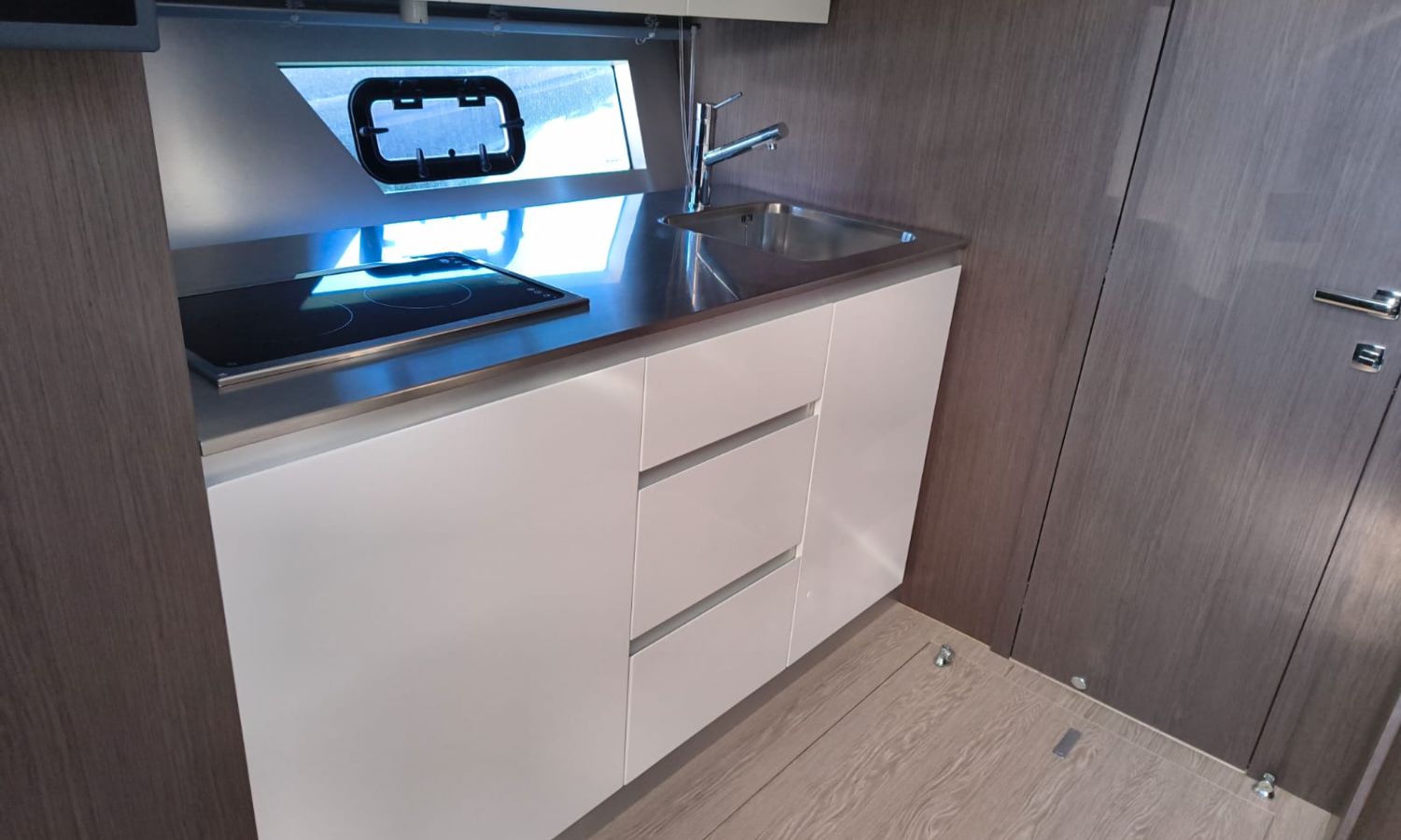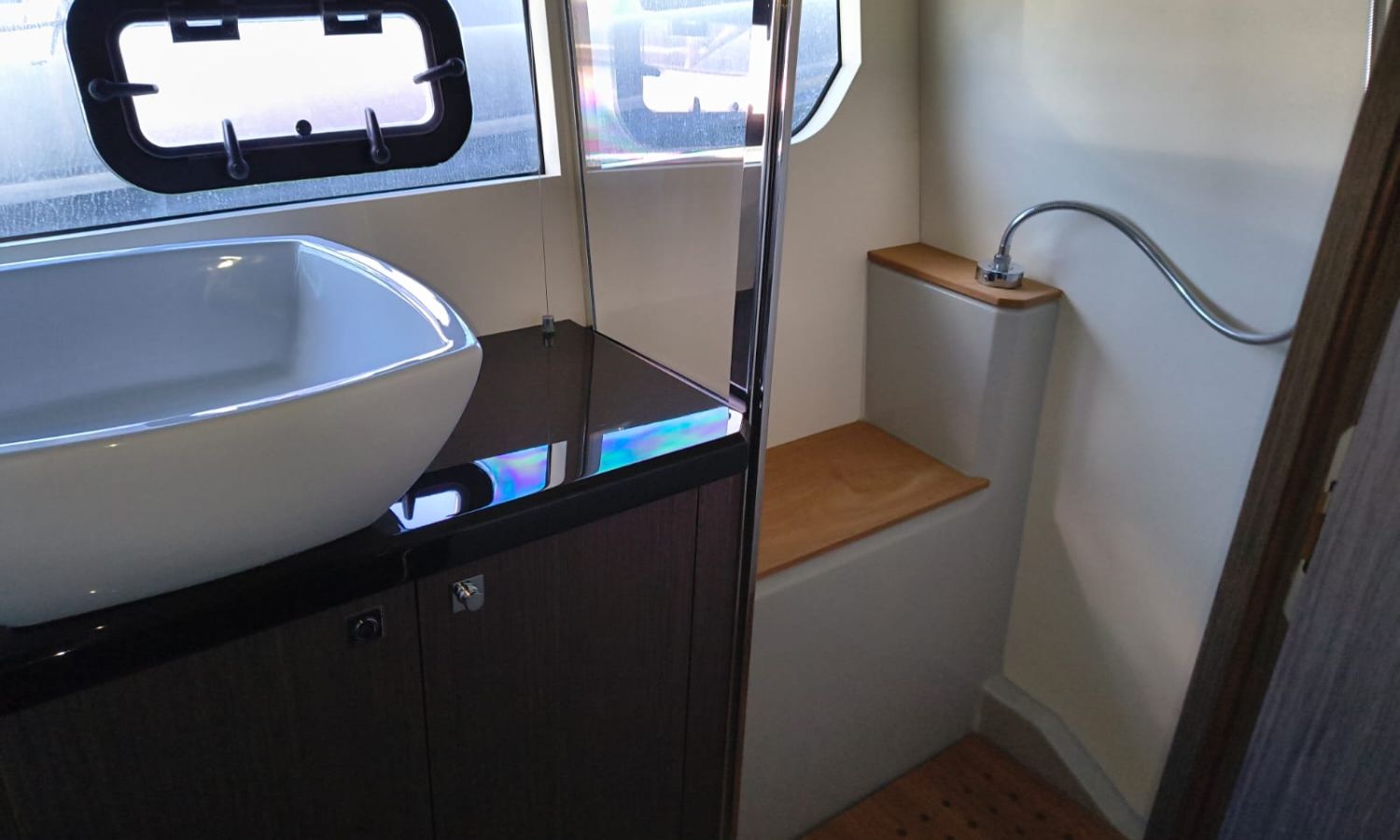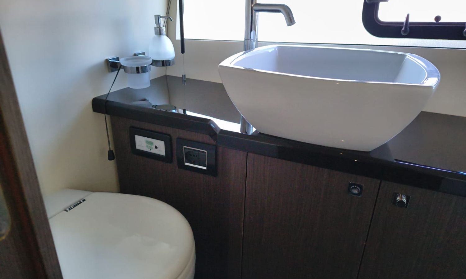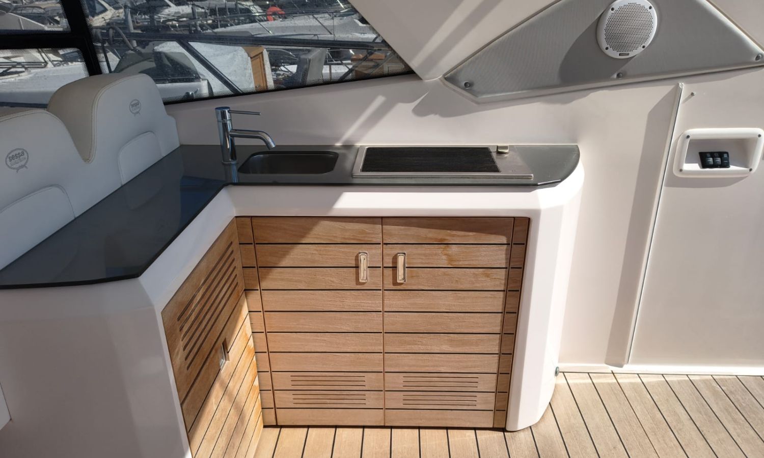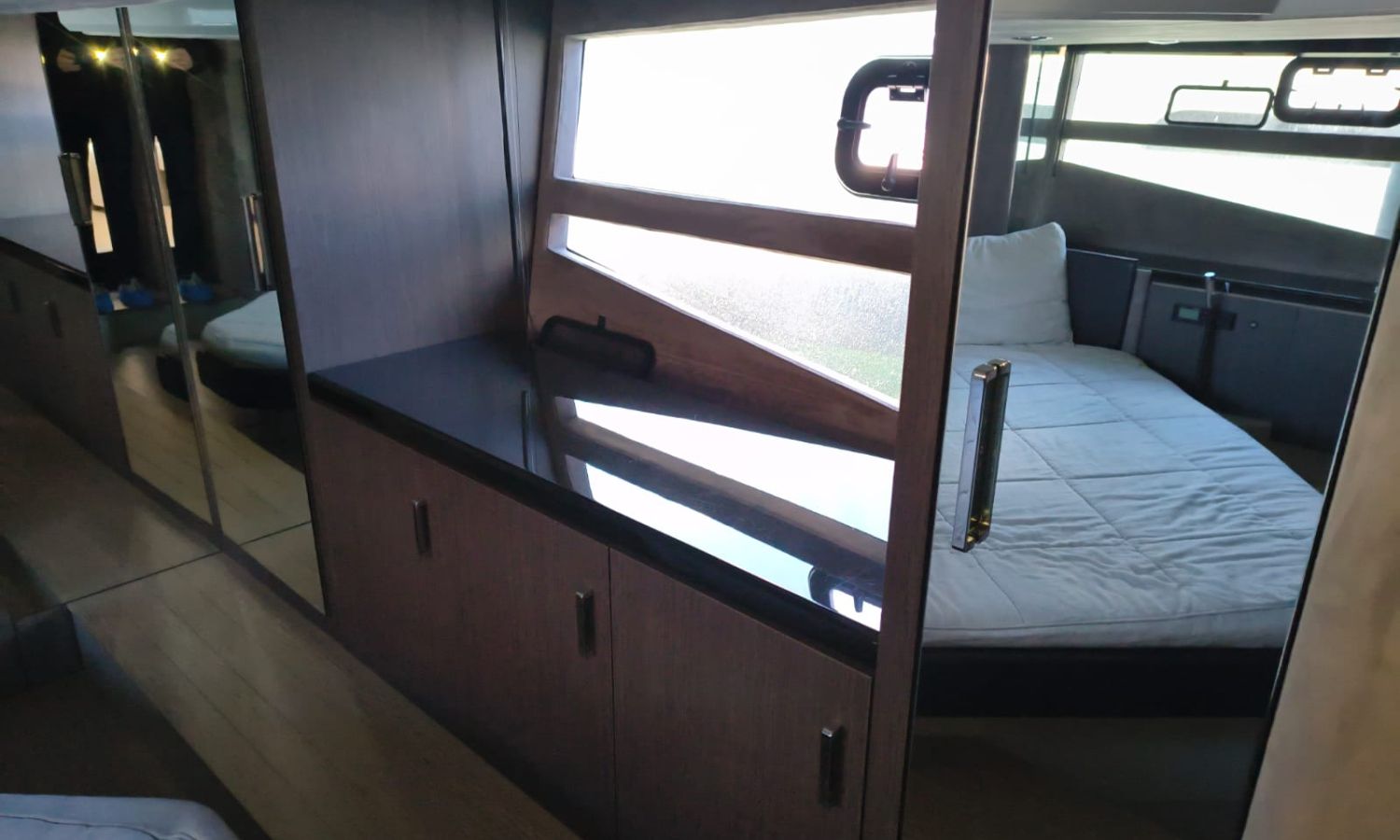 Hard Top - Toldo bimini - Hélice de proa - Flaps - Toma de puerto 220 V - Cargador de baterías - Generador - Solárium de proa - WC con depósito de aguas negras - 2 Cabinas - 2 Baños - Molinete eléctrico - Pasarela hidráulica - Mesa en la bañera - Mueble bar con fregadero - VHF - GPS/Plotter/Sonda - Piloto automático - Mandos electrónicos - Equipo de audio - Flaps - Ducha en popa - Vitro - Nevera 12 V/220 V - Microondas - Toma de agua exterior - Plataforma de baño hidráulica - JoystickDescripción embarcación