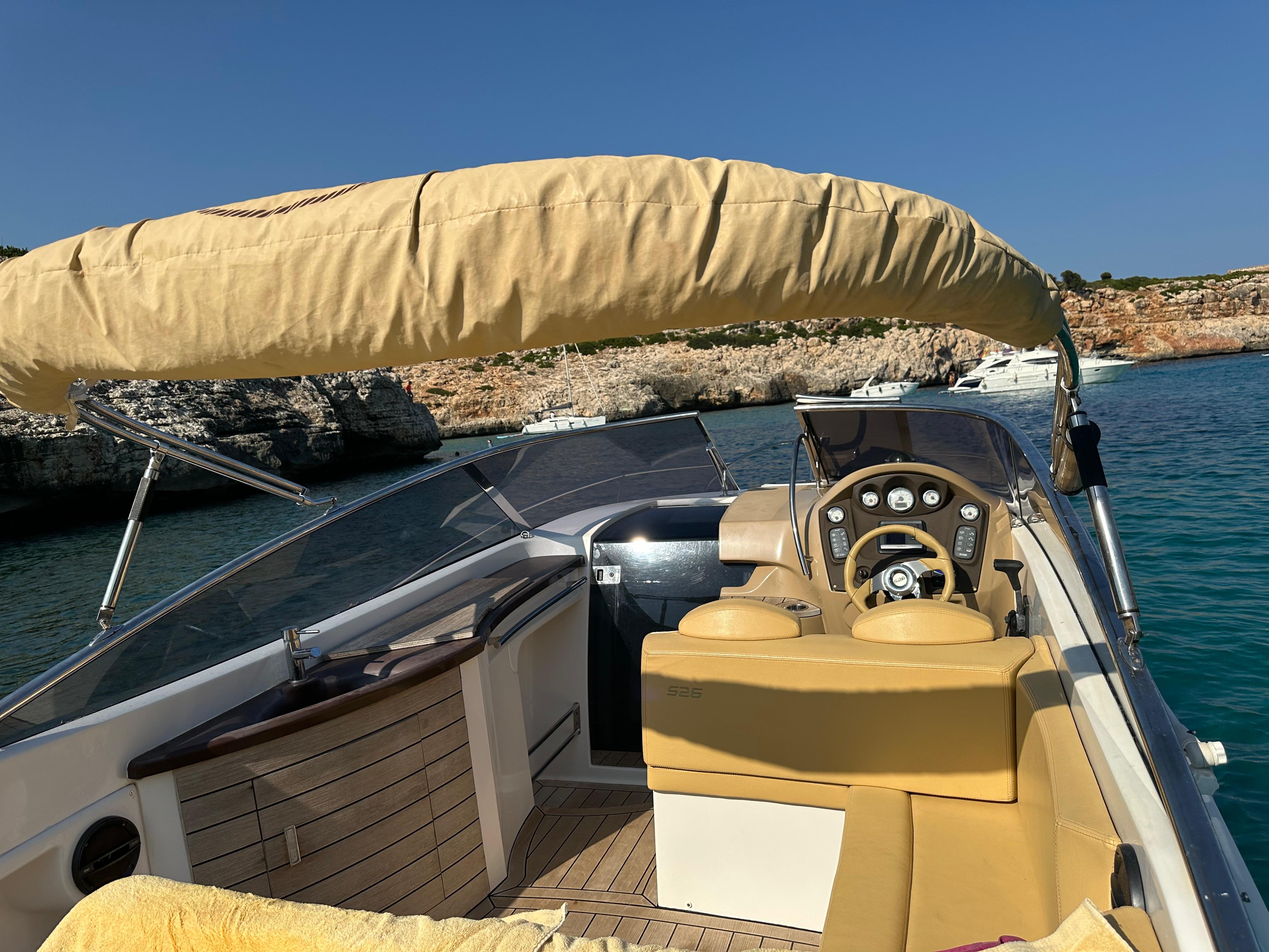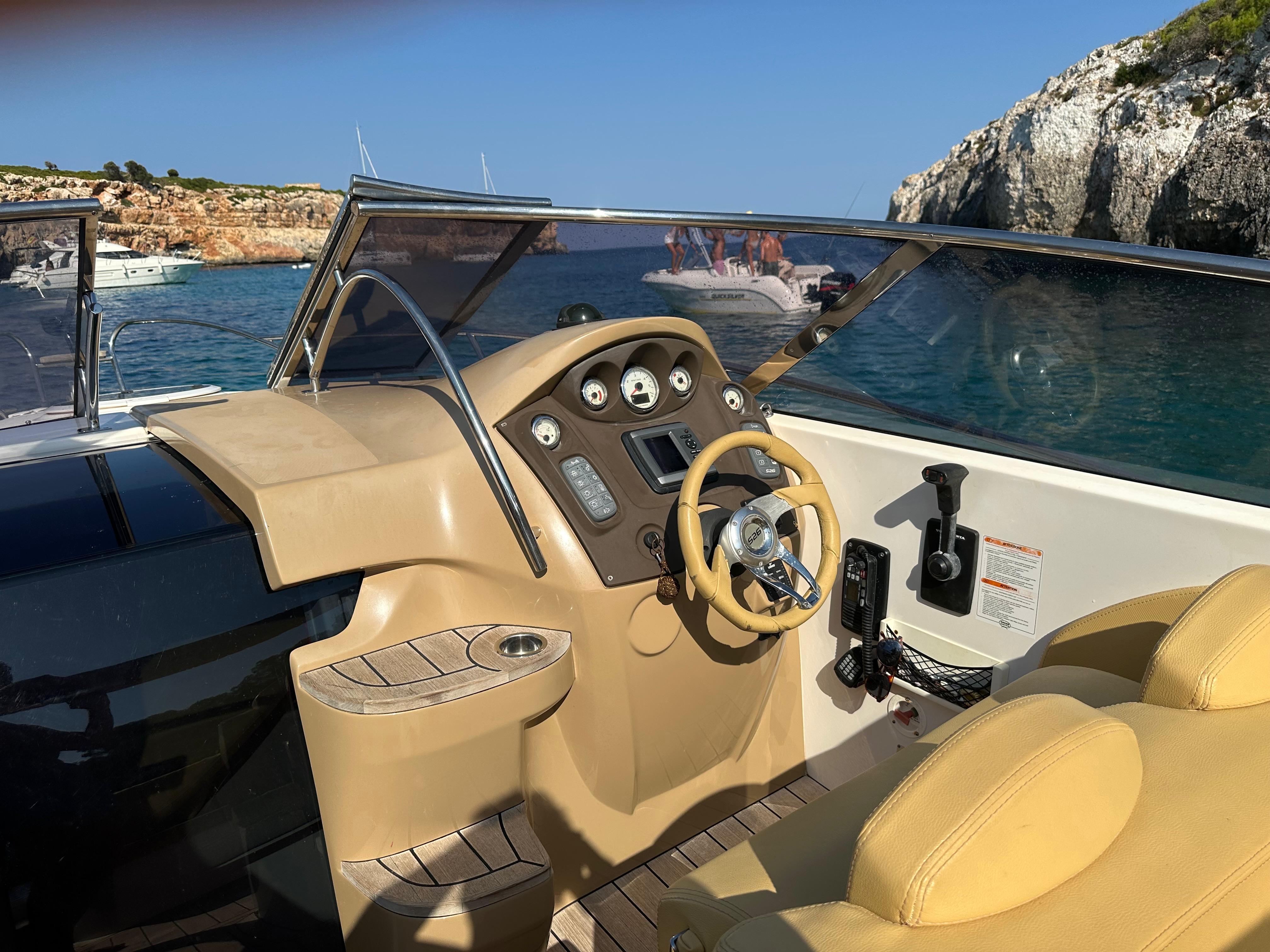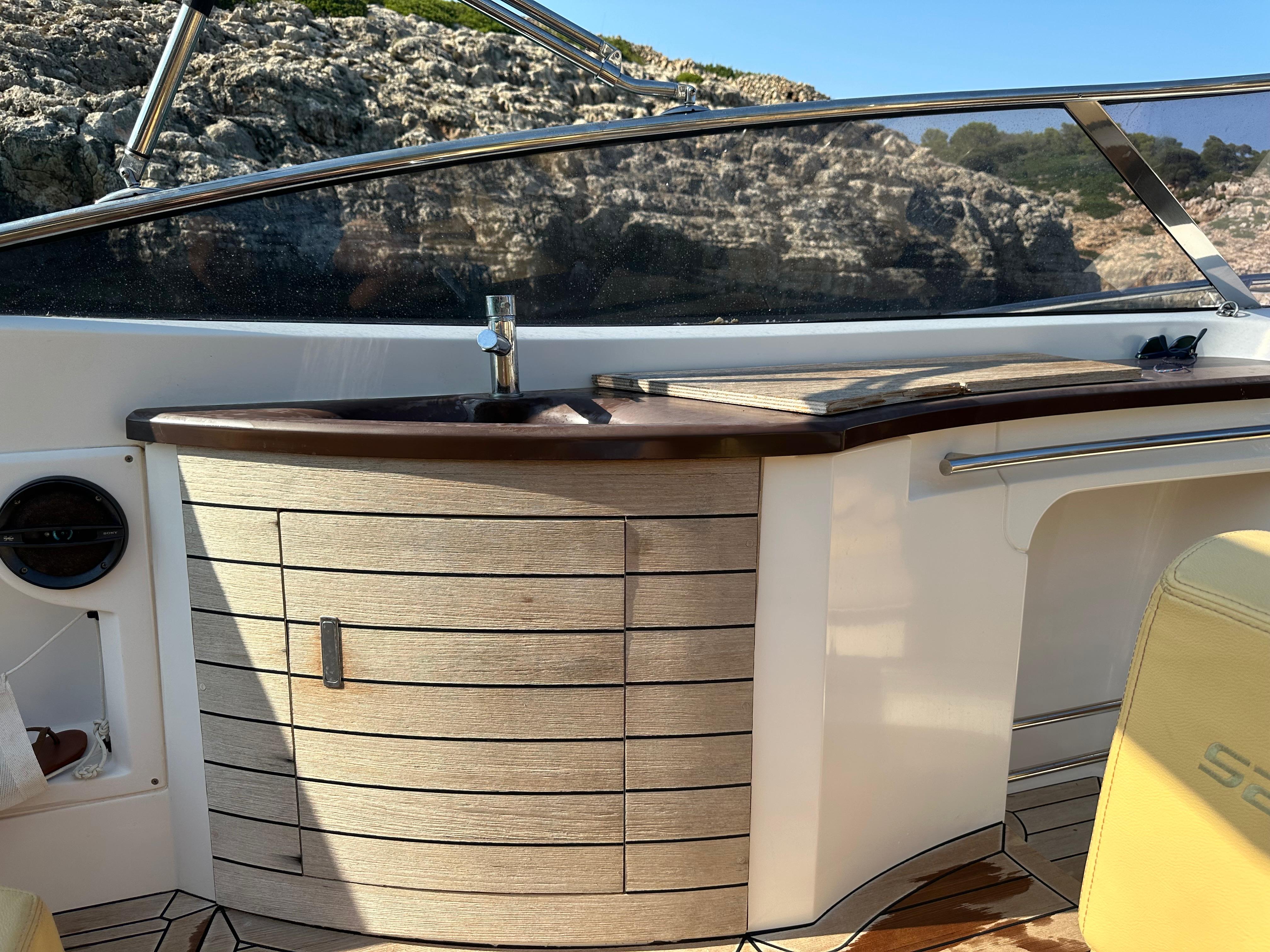 Toldo bimini - Molinete de ancla eléctrico - Ducha en popa - Solárium de popa - Wc eléctrico - Luces de navegación - Flaps - 2 baterías - fregadero - Nevera - Equipo de audio - Gps/Sonda - Vhf - Garmin - Antifouling.Descripción embarcación
