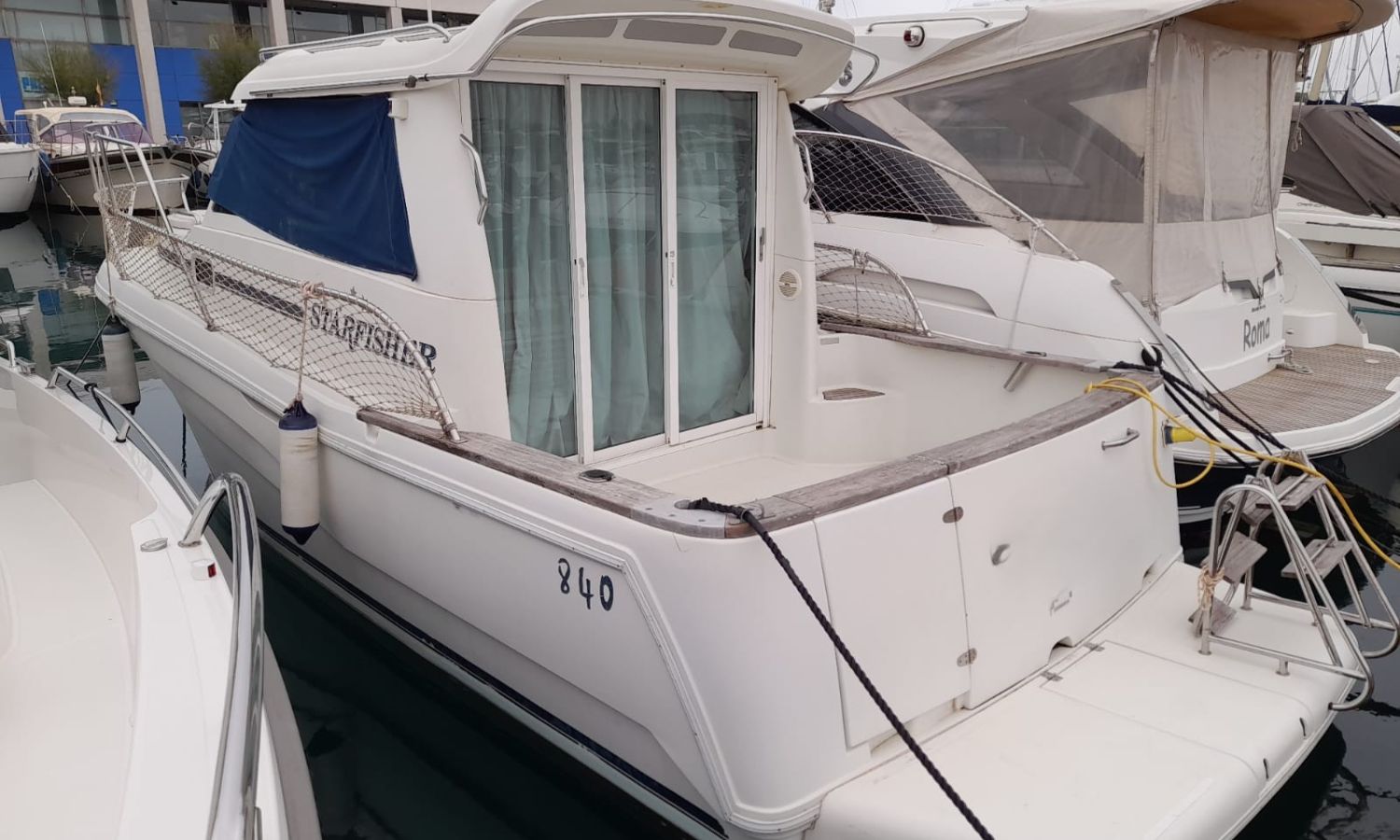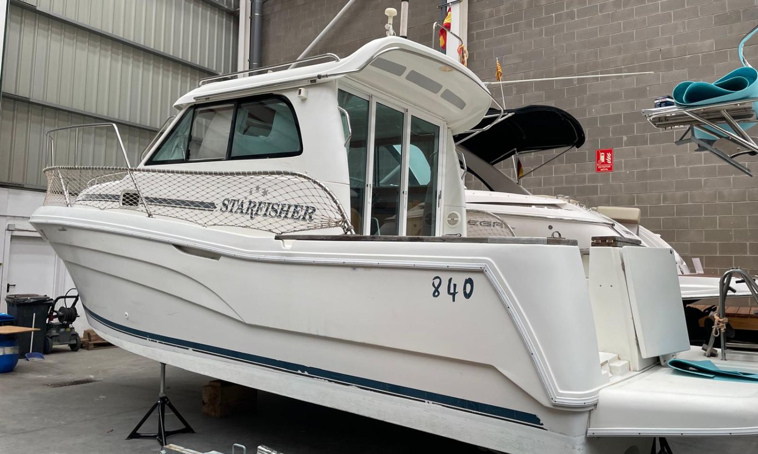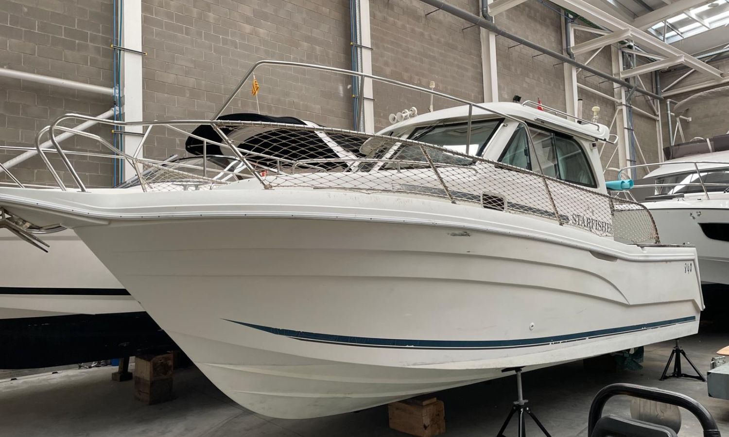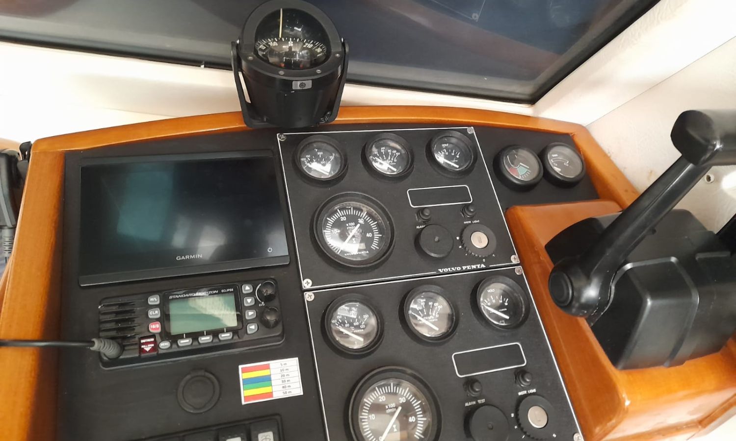 Fly - Plataforma de baño con escalera - Molinete eléctrico - Compás - Gps/Plotter/Sonda - VHF - Toma de puerto 220 V. - Cargador de baterias - Fregadero - Nevera 12V. - Wc marino con depósito de aguas negras - Antifouling.Descripción embarcación