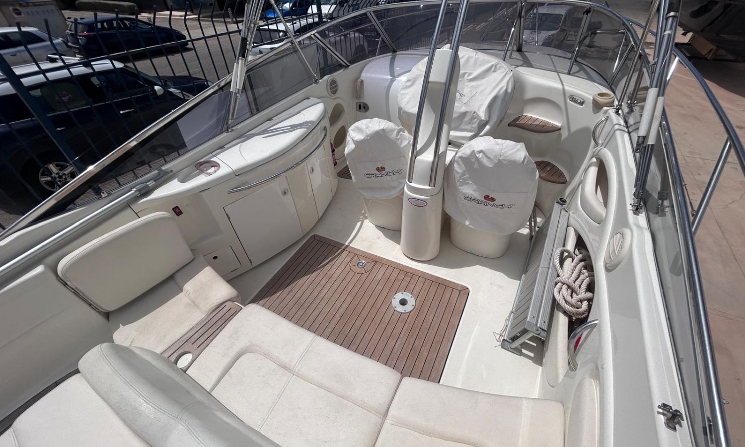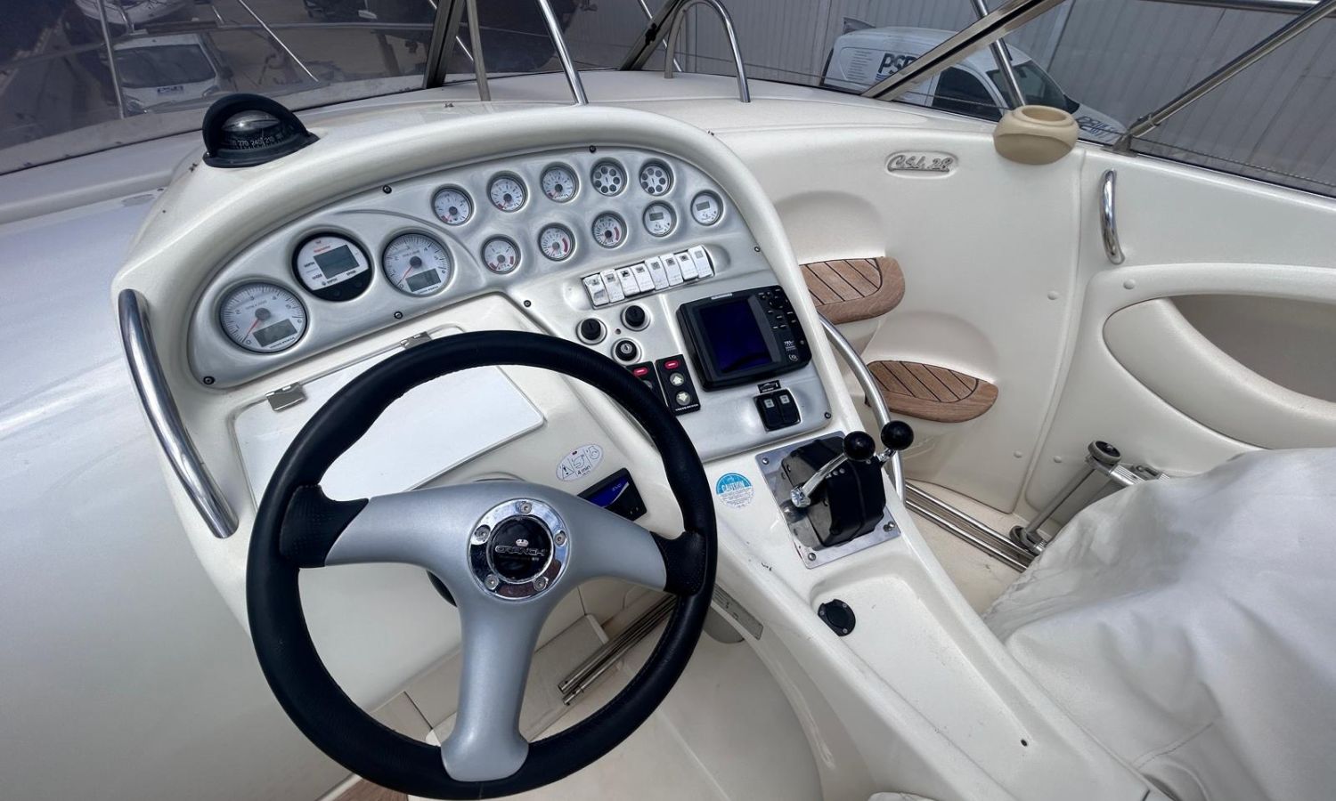 Canapé salle à manger salon - Toilettes électriques - Equipement audio - Douche a poupe - Solarium de proue - Chargeur batterie - Prise bâbord - Table de cockpit - Guideau électrique - Teck sur la plate-forme de bain - Bimini - Antifouling