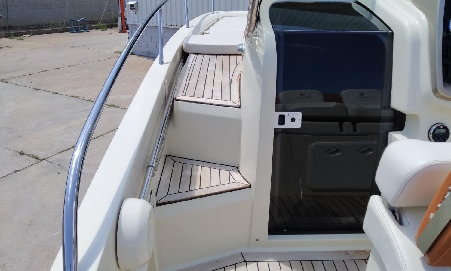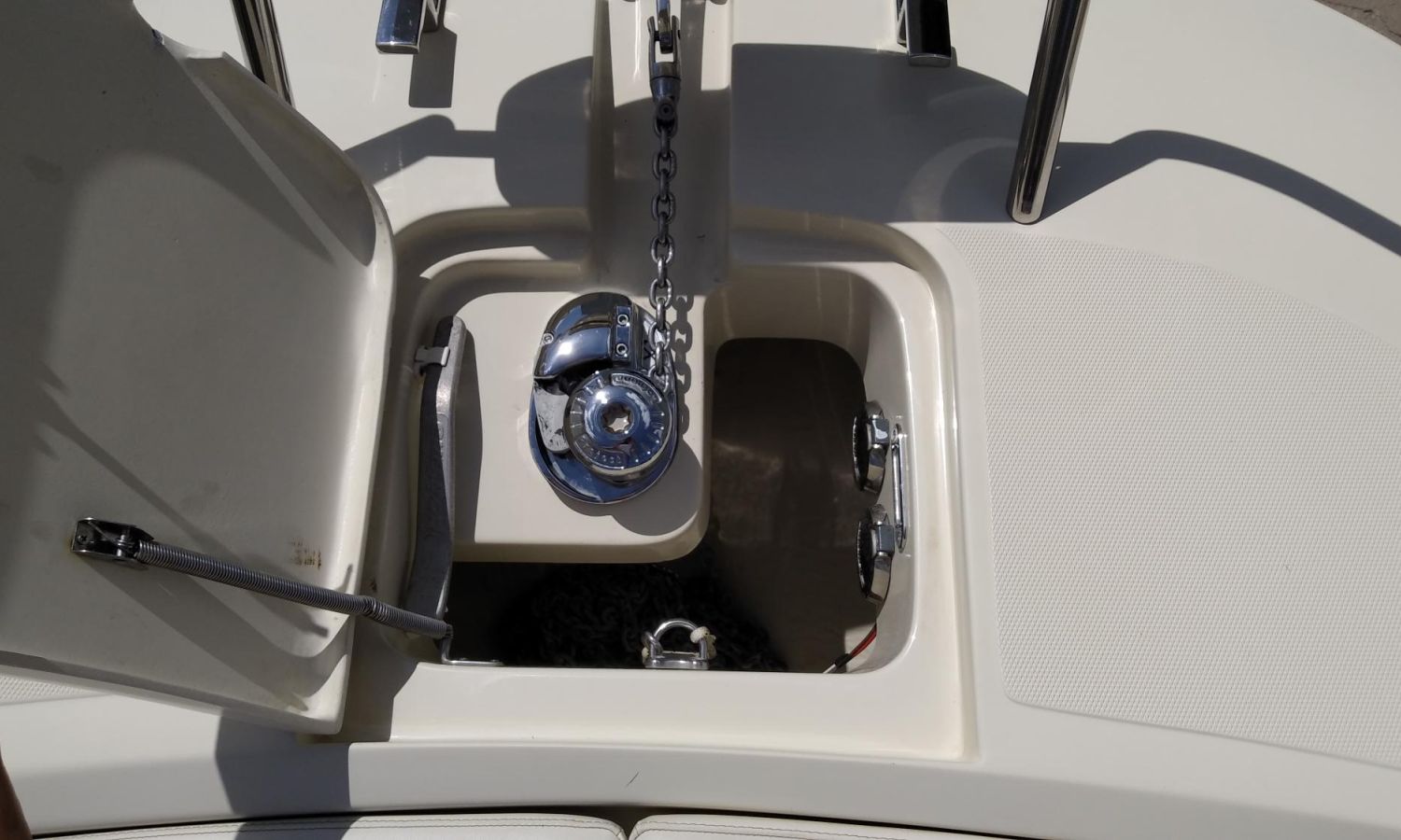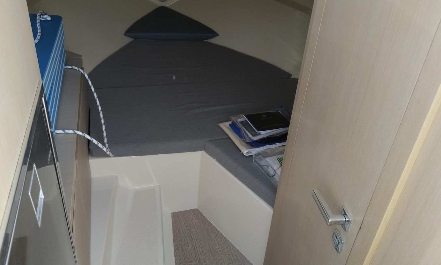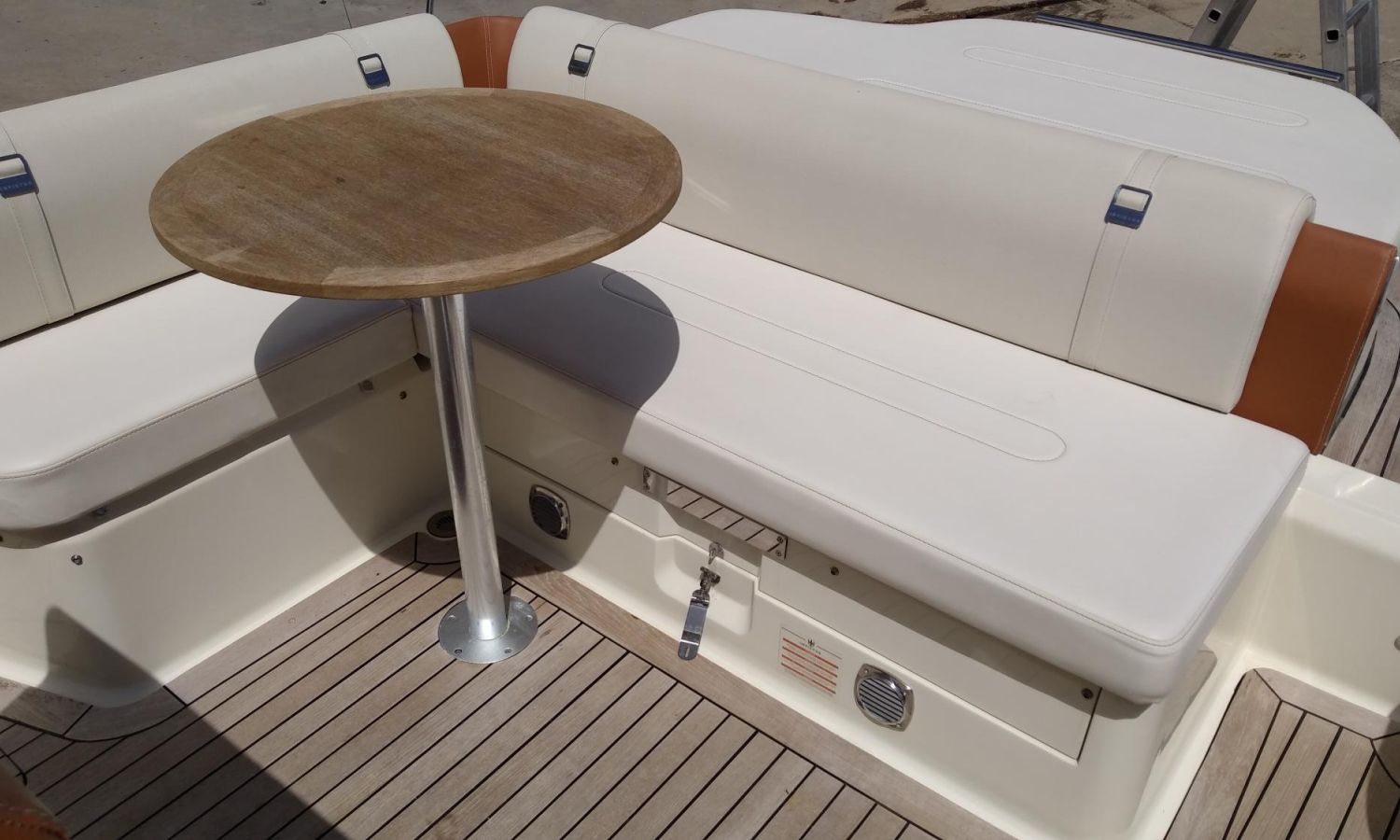 Taud soleil - Bain de soleil à poupe - Coussins bain de soleil à l'avant - Douchette à l'arrière - Table de cockpit en teck - Plateforme de bain en teck avec échelle - Cockpit en teck - Guindeau électrique avec ancre et chaîne - Propulseur d'étrave - GPS - Compas - Réfrigérateur dans la cabine - WC électrique avec évier et réservoir d'eaux sales.Description du bateau