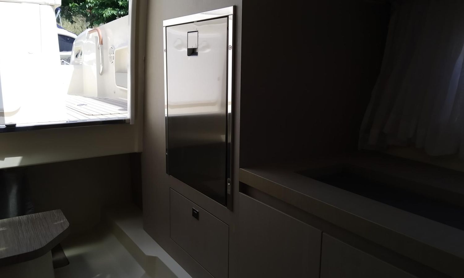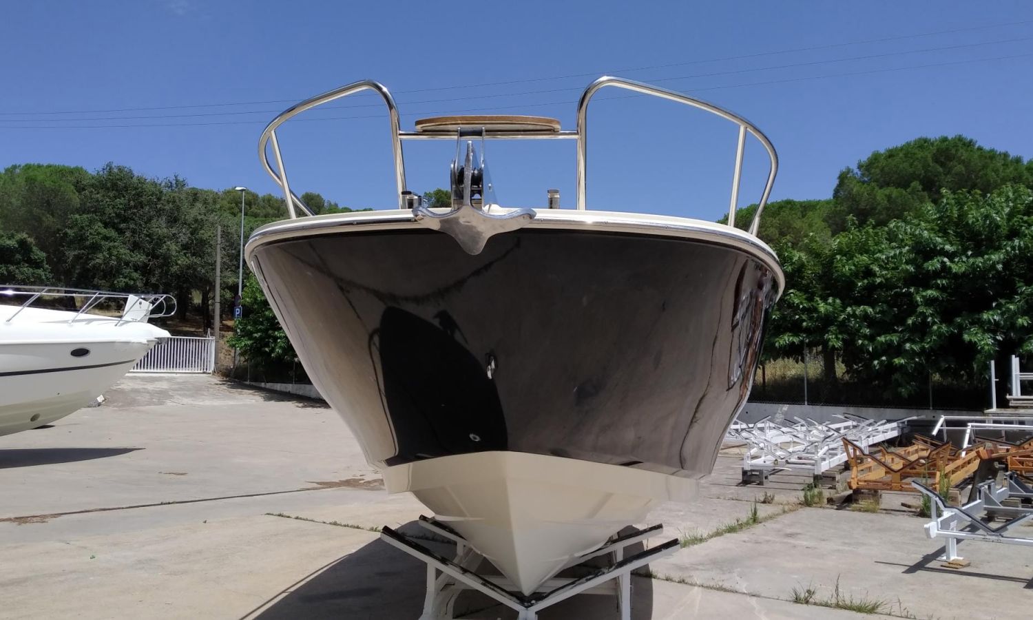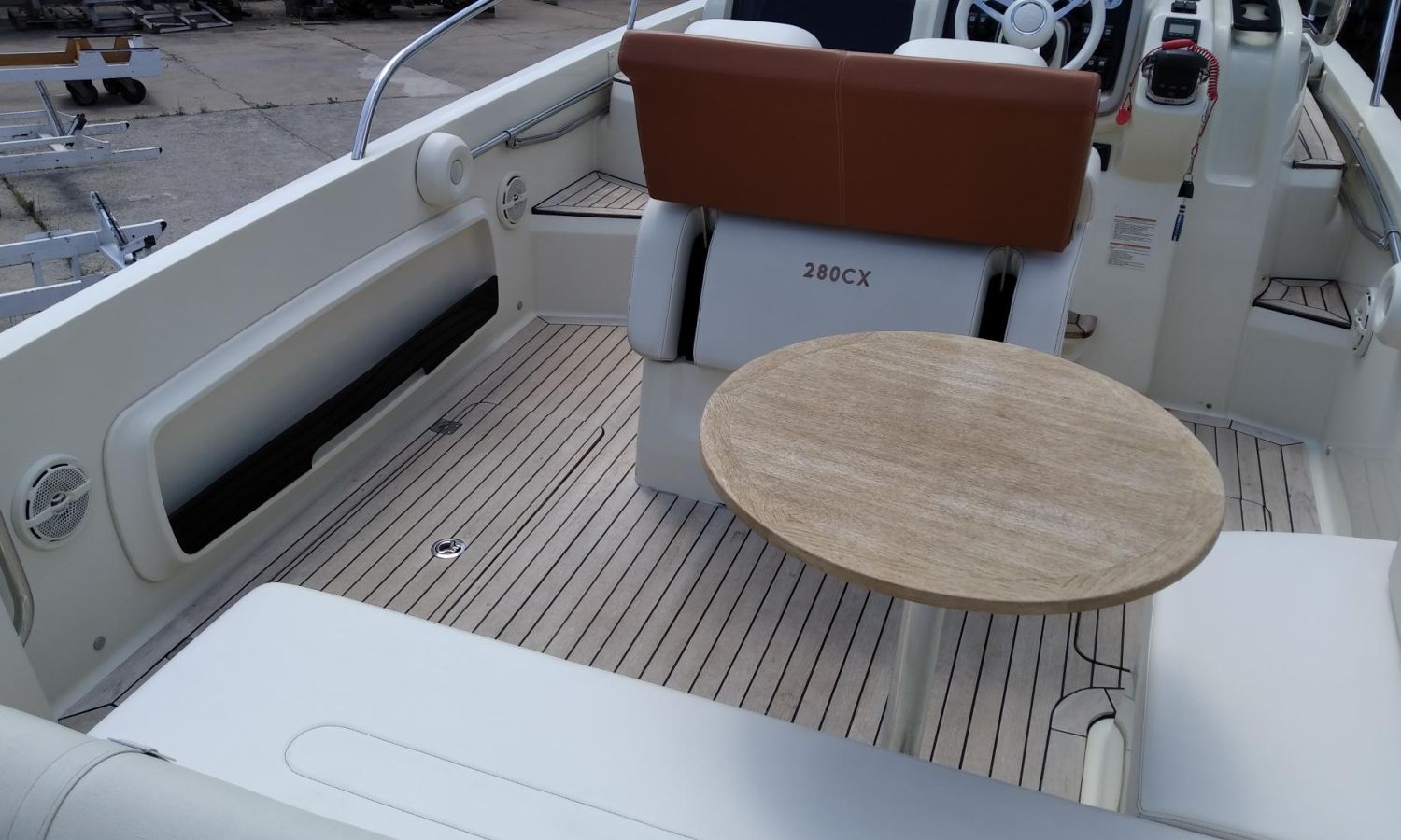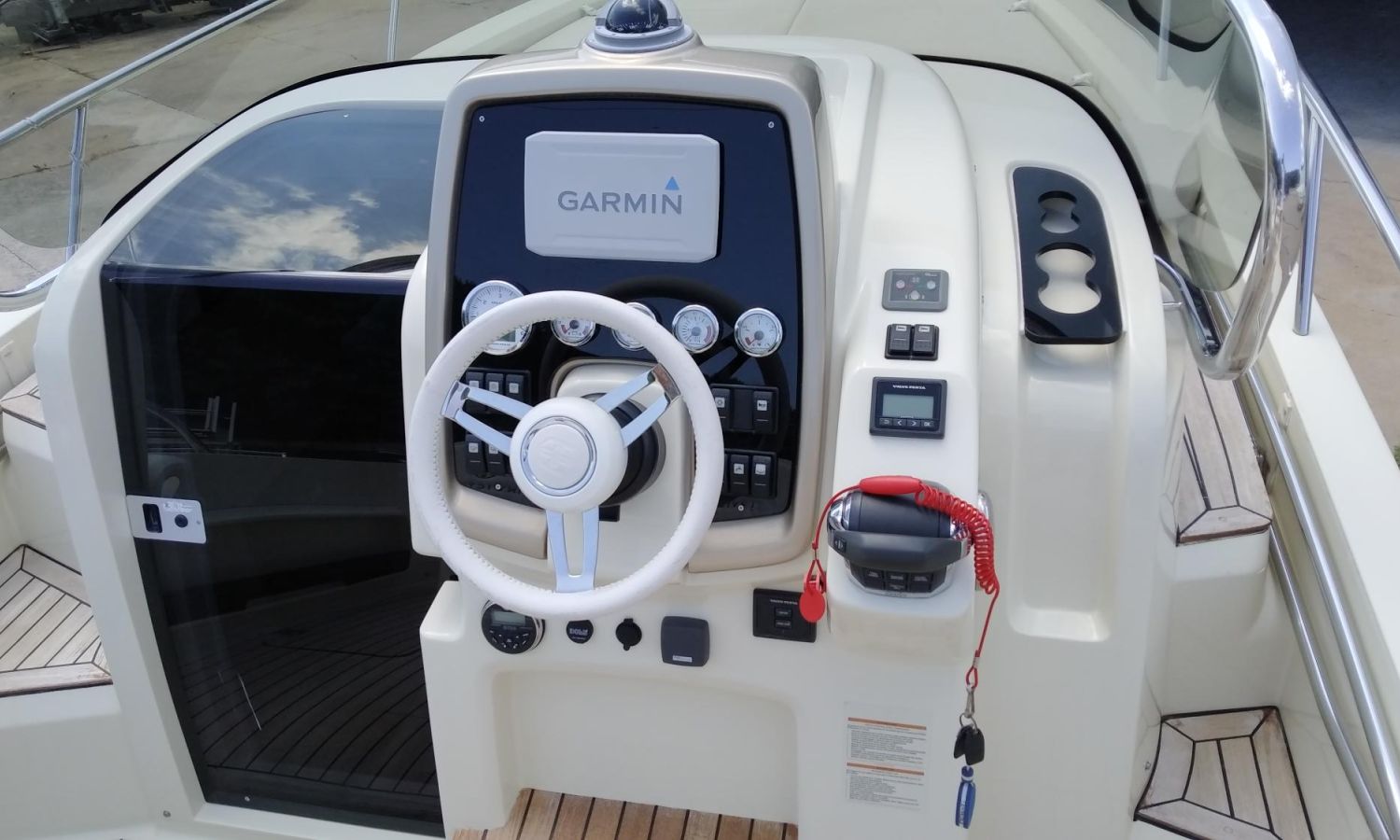 Taud soleil - Bain de soleil à poupe - Coussins bain de soleil à l'avant - Douchette à l'arrière - Table de cockpit en teck - Plateforme de bain en teck avec échelle - Cockpit en teck - Guindeau électrique avec ancre et chaîne - Propulseur d'étrave - GPS - Compas - Réfrigérateur dans la cabine - WC électrique avec évier et réservoir d'eaux sales.Description du bateau
