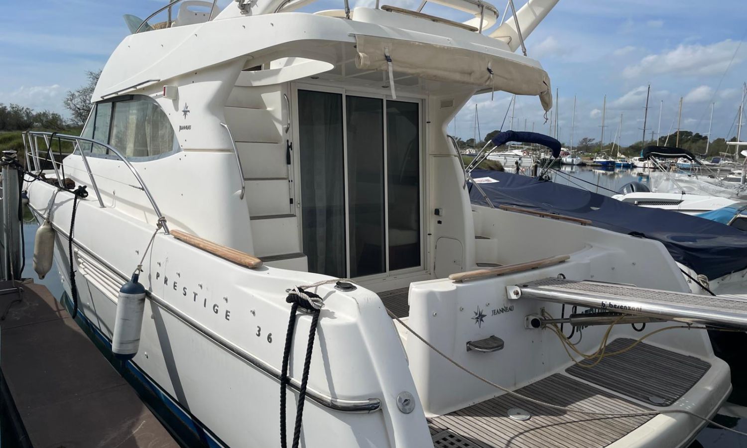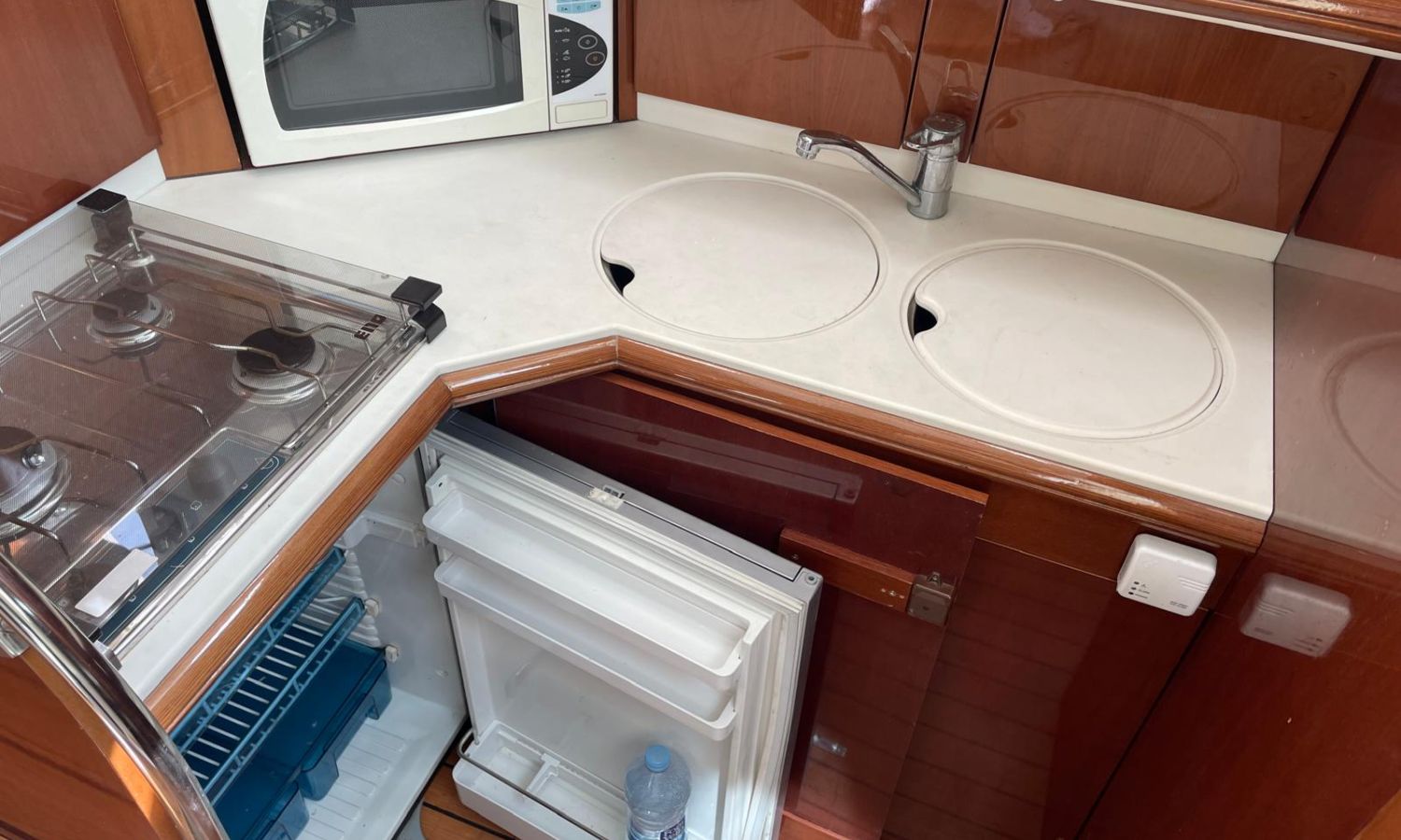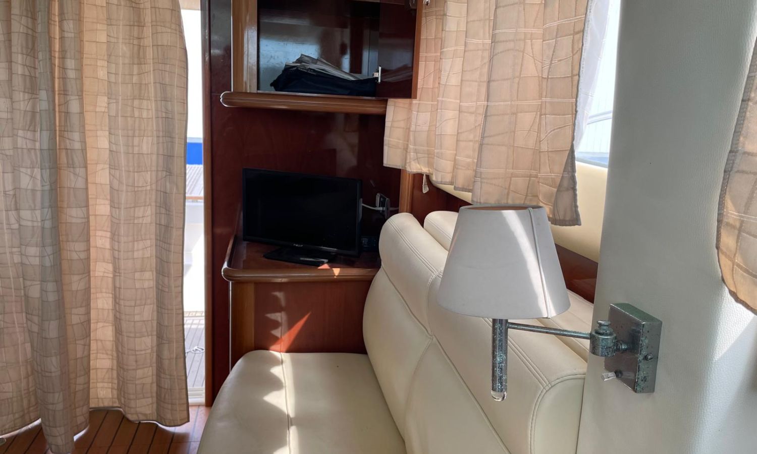 Plat-forme de bain avec échelle - Teck - Passerelle hydraulique - Douche a poupe - Prise de port - Chargeur de batterie - Couchette de bain à l'avant - VHF - Compas - Pilote automatique - Propulseur d'étrave - Réfrigerateur - Micro-ondes - TV - 2 Cabines - Toilette marine avec réservoir de rétention - Guideau électrique - Antifouling.Description du bateau