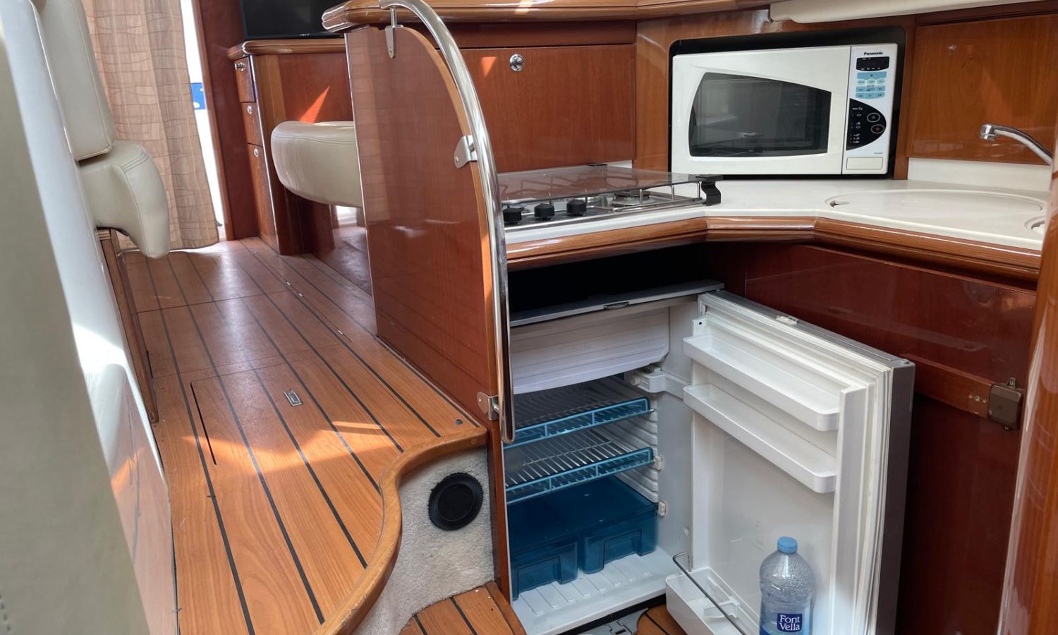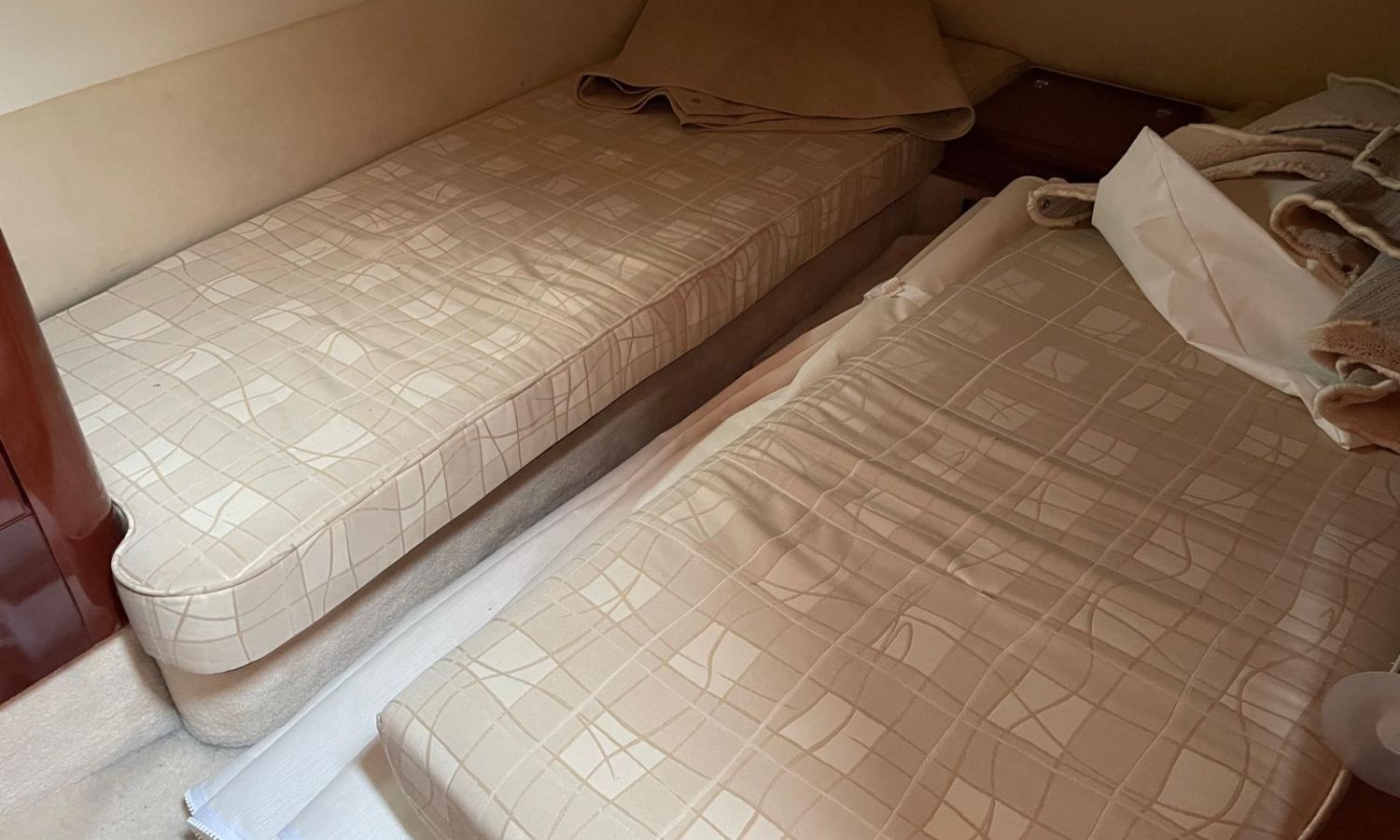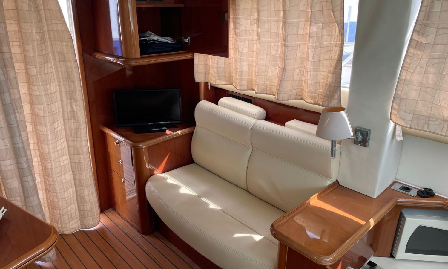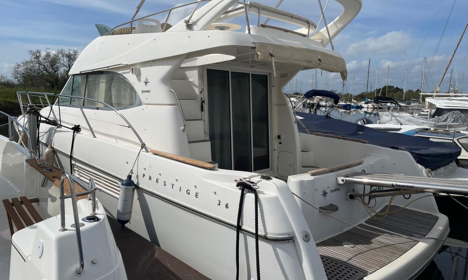 Plat-forme de bain avec échelle - Teck - Passerelle hydraulique - Douche a poupe - Prise de port - Chargeur de batterie - Couchette de bain à l'avant - VHF - Compas - Pilote automatique - Propulseur d'étrave - Réfrigerateur - Micro-ondes - TV - 2 Cabines - Toilette marine avec réservoir de rétention - Guideau électrique - Antifouling.Description du bateau